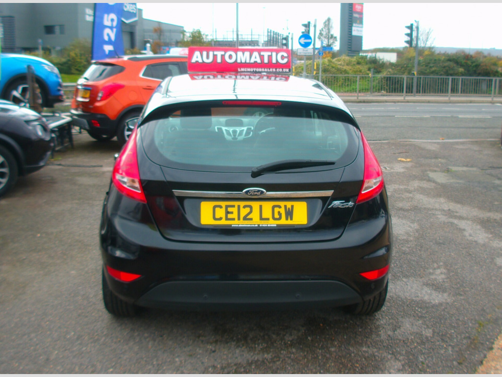 VERY LOW MILEAGE ON THIS 2012 AUTOMATIC FORD FIESTA ZETEC 1.4 5 DOOR, BLACK, 36,195 MILES, COMPREHENSIVE 12 STAMP SERVICE HISTORY, LOW 10E INSURANCE GROUP, USB, AUX, CD PLAYER, AIR CON, HEATED WINDSCREEN, REAR PARK SENSORS, E/MIRRORS, E/WINDOWS, ISOFIX, C/LOCKING, MULTI AIR BAGS, ABS, FRONT FOGS, R/W/WIPE, 15'' ALLOY WHEELS, NEW MOT UPON PURCHASE, SUSSEX, EAST SUSSEX, EASTBOURNE, BN23 6PJ, 01323 643326, r conditioning, multi-function steering wheel, parking sensors, power steering, traction control, abs, isofix child seat anchor points, multiple airbags, central locking, electric mirrors, electric windows, windscreen heating, auxiliary input socket, cd player, alloy wheels, colour coded body, front fog lights, rear wash/wipe, usb, zero admin charge