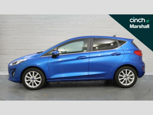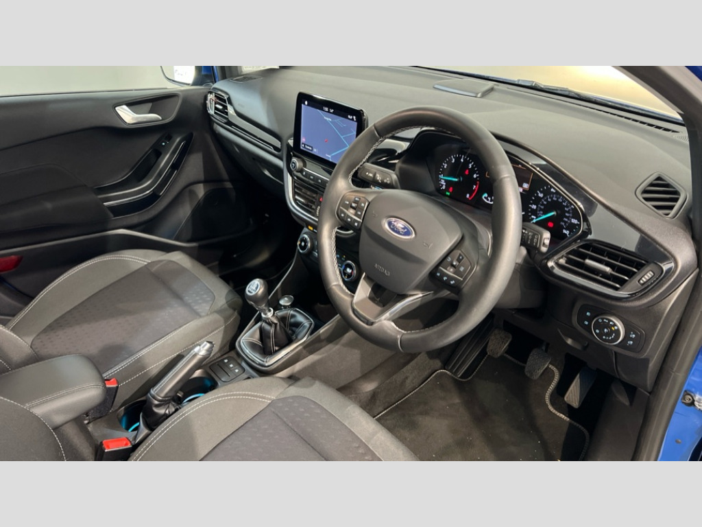 Ford Fiesta 1.0 EcoBoost 125 Titanium 5dr Bluetooth system, Electric power steering, Ford easy fuel, Trip computer, 2 USB ports, Auxiliary input socket, DAB Digital radio, Steering wheel mounted controls, Auto dimming rear view mirror, Body colour bumpers, Body colour door handles, Body colour electric adjustable heated door mirrors with integral indicators, Body colour rear spoiler, Chrome beltline trim, Chrome lower window surround, Cornering front fog lights, Electric front windows/one touch facility, LED Night signature to rear lights, LED rear lights, Power foldable door mirrors with puddle lights, Privacy glass, Quickclear heated windscreen, Rain sensing wipers and auto dimming rear view mirror, Rear privacy glass, Rear wiper, Tinted glass, Upper front grille chrome surround, 12V Accessory socket in centre console, 3 spoke leather trimmed steering wheel with audio control, 60/40 split folding rear seat, Adjustable head restraints, Ambient lighting, Boot carpet, Centre console with armrest and illuminated cupholders, Chrome inner door handles, Cloth upholstery, EATC - Electronic Auto Temperature control, Footwell illumination, Front and rear velour floor mats, Front map reading lights, Front seat and rear pockets, Height adjustable driver's seat, Illuminated glovebox, Leather gear knob, Leather trimmed handbrake handle, Load area light, Luxury woven headliner, Overhead console with sunglasses holder, Pollen filter, Rake/reach adjustable steering wheel, Rear centre head restraint, Driver assistance pack - Fiesta/Titanium/Titanium X/Active B+O/Active X/ST-Line X, NCAP Pack - Fiesta, 3 point seatbelts on all rear seats, ABS+EBA, Curtain airbags, Driver and passenger airbags, Drivers knee airbag, Electronic stability control with hill start assist, Front passenger airbag deactivation, Front side airbags, Seatbelt warning, Tyre pressure monitoring system, MyKey system, Remote central locking & engine immobiliser, Thatcham Cat.1 alarm