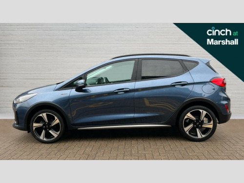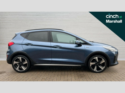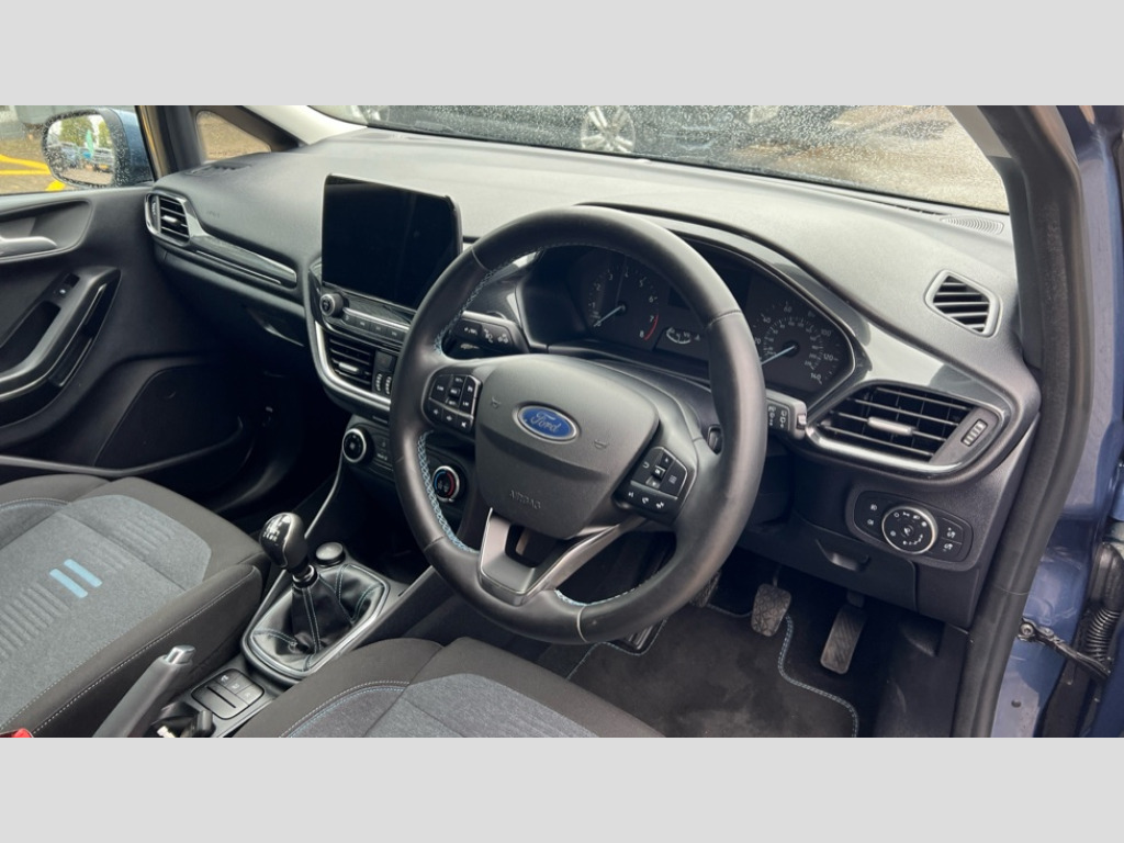 Ford Fiesta 1.0 EcoBoost 95 Active Edition 5dr Bluetooth system, Drive mode selector, Electric power steering, Ford easy fuel, Ford SYNC 3 Navigation system incl 8" touchscreen, 7 speakers, FordPass connect, Apple carplay, android auto, voice control and emergency assistance, Rear parking distance sensors, Trip computer, Rough road suspension with increased ride height adjust, 2 USB ports, Auxiliary input socket, DAB Digital radio, Steering wheel mounted controls, Active logo front door thershold plates, Body colour bumpers, Body colour door handles, Body colour rear spoiler, Chrome beltline trim, Cornering front fog lights, Electric front windows/one touch facility, Electric rear windows, Mesh design front grille with chrome surround, Power foldable door mirrors with puddle lights, Privacy glass, Quickclear heated windscreen, Rain sensing wipers and auto dimming rear view mirror, Rear wiper, Rugged body styling kit with active front wing badges, 12V Accessory socket in centre console, 3 spoke leather trimmed steering wheel with audio control, 60/40 split folding rear seat, Adjustable head restraints, Black headlining, Boot carpet, Centre console with armrest and illuminated cupholders, Chrome inner door handles, Cloth upholstery, Footwell illumination, Front floor mats, Front map reading lights, Front seat and rear pockets, Height adjustable driver's seat, Illuminated glovebox, LED ambient lighting, Load area light, Manual air conditioning, Overhead console with sunglasses holder, Pollen filter, Rake/reach adjustable steering wheel, Sensico leather steering wheel/gear knob/handbrake, NCAP Pack - Fiesta, 3 point seatbelts on all rear seats, ABS+EBA, Curtain airbags, Driver and passenger airbags, Drivers knee airbag, Electronic stability control with hill start assist, Front passenger airbag deactivation, Front side airbags, Seatbelt warning, Two tone horn, Tyre pressure monitoring system, Keyless start with 'Ford Power' starter button, MyKey system, Remote central locking & engine immobiliser, Thatcham Cat.1 alarm, 17" 5 spoke alloy wheels with rough metal machined finish