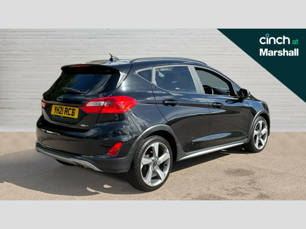 Ford Fiesta 1.0 EcoBoost Hybrid mHEV 125 Active Edition 5dr Bluetooth system, Electric power steering, Extra selectable drive modes ( Trail, Slippery), Ford easy fuel, Ford SYNC 3 Navigation system incl 8" touchscreen, 7 speakers, FordPass connect, Apple carplay, android auto, voice control and emergency assistance, Rear parking distance sensors, Selectable drive modes (Normal, Sport, Track), Trip computer, Rough road suspension with increased ride height adjust, 2 USB ports, Auxiliary input socket, DAB Digital radio, Steering wheel mounted controls, Body colour bumpers, Body colour door handles, Body colour rear spoiler, Chrome beltline trim, Cornering front fog lights, Electric front windows/one touch facility, Electric rear windows, Mesh design front grille with chrome surround, Quickclear heated windscreen, Rain sensing wipers and auto dimming rear view mirror, Rear privacy glass, Rear wiper, Rugged body styling kit with active front wing badges, 3 spoke leather trimmed steering wheel with audio control, 60/40 split folding rear seat, Adjustable head restraints, Boot carpet, Centre console with opening armrest, 2x cupholders, 12v and USB, Chrome inner door handles, Cloth upholstery, Footwell illumination, Front floor mats in velour, Front map reading lights, Front seat and rear pockets, Illuminated glovebox, Leather gaiter, Load area light, Manual 2 way passenger seat adjust, Manual 4-way driver seat adjust, Manual air conditioning, Overhead console with sunglasses holder, Pollen filter, Rake/reach adjustable steering wheel, Sensico wrapped steering wheel, NCAP Pack - Fiesta, 3 point seatbelts on all rear seats, ABS+EBA, Curtain airbags, Driver and passenger airbags, Drivers knee airbag, Electronic stability control with hill start assist, Front passenger airbag deactivation, Front side airbags, Seatbelt warning, Two tone horn, Tyre pressure monitoring system, Keyless start with 'Ford Power' starter button, MyKey system, Remote central locking & engine immobiliser, Thatcham Cat.1 alarm, 17" 5 spoke alloy wheels with rough metal machined finish