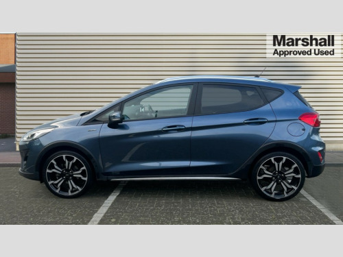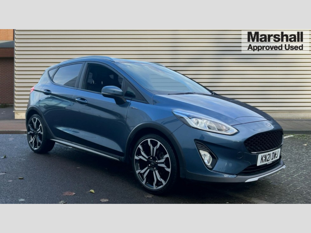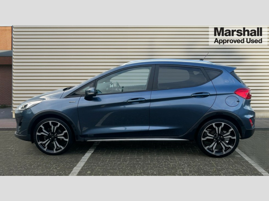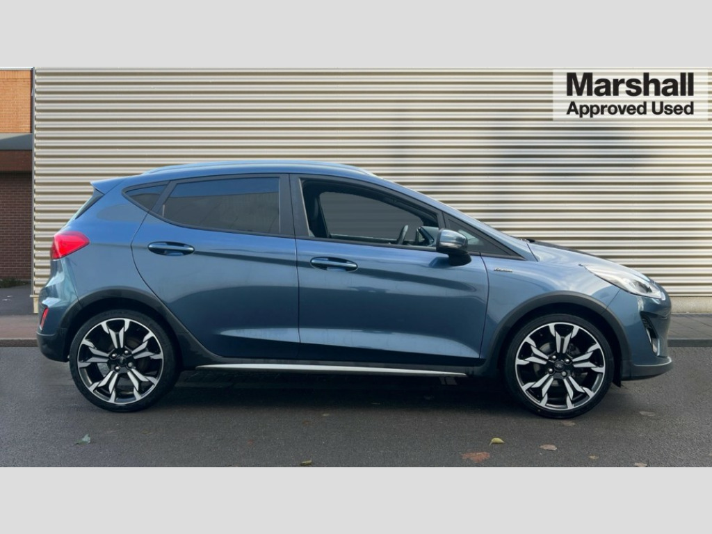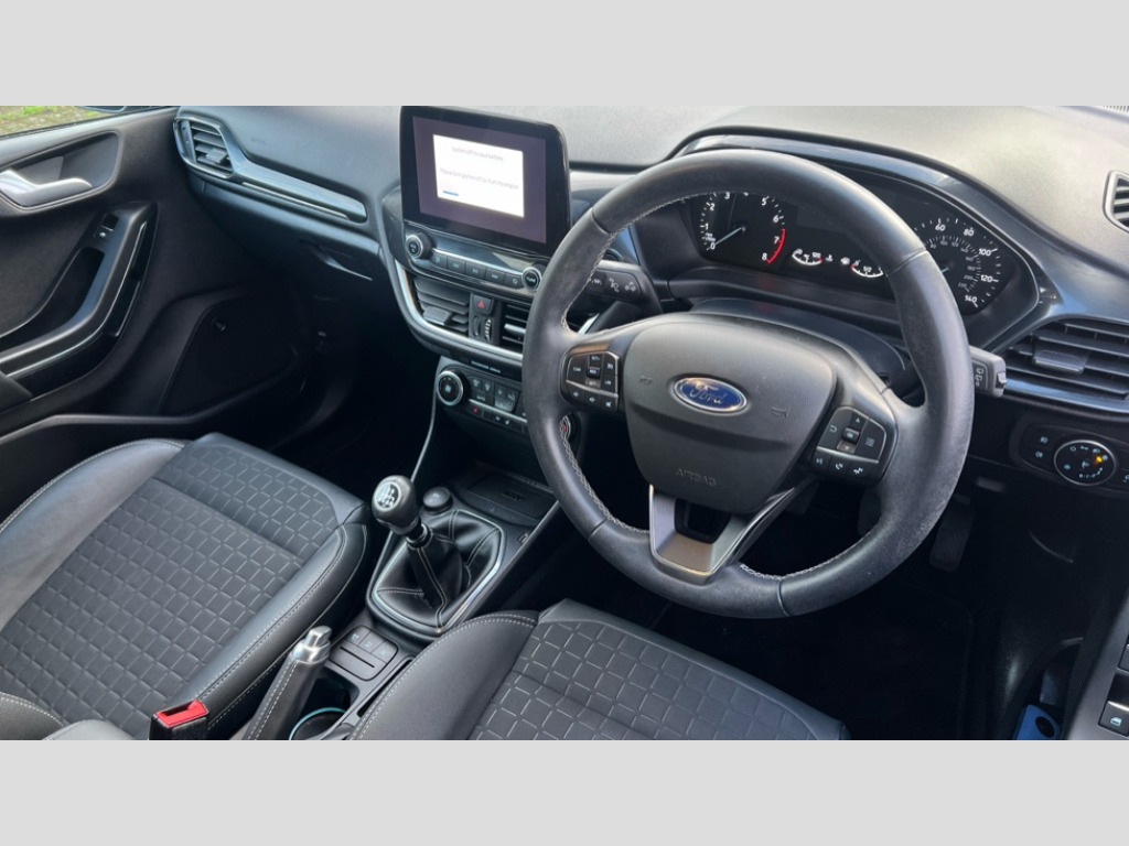 Ford Fiesta 1.0 EcoBoost Hybrid mHEV 125 Active X Edition 5dr 4.2" TFT instrument cluster screen, Bluetooth system, Drive mode selector, Electric power steering, Ford easy fuel, Rear parking distance sensors, Traffic sign recognition, Trip computer, Wireless charging, Rough road suspension with increased ride height adjust, 2 USB ports, Auxiliary input socket, B&O Premium audio system with 8" touchscreen, 10 speakers, 360 degree sound system, Ford SYNC 3 navigation system and Ford pass connect, DAB Digital radio, Steering wheel mounted controls, Auto high beam, Body colour bumpers, Body colour door handles, Body colour rear spoiler, Chrome beltline trim, Cornering front fog lights, Electric front windows/one touch facility, Electric rear windows, Mesh design front grille with chrome surround, Power foldable door mirrors with puddle lights, Privacy glass, Quickclear heated windscreen, Rain sensing wipers and auto dimming rear view mirror, Rear wiper, Rugged body styling kit with active front wing badges, 12V Accessory socket in centre console, 3 spoke leather trimmed steering wheel with audio control, 60/40 split folding rear seat, Adjustable head restraints, Black headlining, Boot carpet, Centre console with armrest and illuminated cupholders, Chrome inner door handles, Drivers and Passenger lumbar support, EATC - Electronic Auto Temperature control, Footwell illumination, Front floor mats, Front map reading lights, Front seat and rear pockets, Height adjustable driver's seat, Height adjustable passenger seat, Illuminated glovebox, LED ambient lighting, Load area light, Overhead console with sunglasses holder, Pollen filter, Rake/reach adjustable steering wheel, Sensico leather steering wheel/gear knob/handbrake, Sensico partial premium upholstery, NCAP Pack - Fiesta, 3 point seatbelts on all rear seats, ABS+EBA, Curtain airbags, Driver and passenger airbags, Drivers knee airbag, Electronic stability control with hill start assist, Front passenger airbag deactivation, Front side airbags, Seatbelt warning, Two tone horn, Tyre pressure monitoring system, Ford keyfree system with Keyless entry and keyless start, MyKey system, Remote central locking & engine immobiliser, Thatcham Cat.1 alarm, 18" 5 spoke alloy wheels with shadow black machined finish