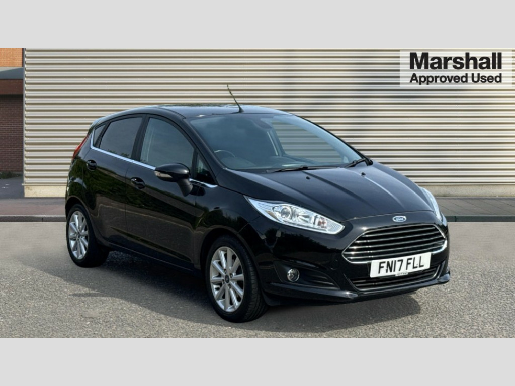Ford Fiesta 1.0 EcoBoost Titanium 5dr Cruise control, Electric power steering, Ford SYNC Bluetooth connection with voice control and USB port, SYNC Emergency Assistance, Trip computer, 8 Speakers, Auxiliary input socket, Sony DAB radio/CD player, Steering wheel mounted controls, Automatic headlights + automatic windscreen wipers + auto dimming rear view mirror, Body colour door handles, Body colour electric adjustable heated door mirrors, Body colour tailgate handle, Chrome beltline trim, Chrome surround for front fog lights, Chrome tailgate handle, Courtesy headlamp delay, Electric front windows/one touch facility, Front fog lights, LED daytime running lights, LED rear lights, Privacy glass, Quickclear heated windscreen, Rear wiper, Tinted glass, Upper front grille chrome surround, 3 spoke leather steering wheel, 60/40 split folding rear seat, Adjustable head restraints, Air conditioning + Electric Auto Temperature Control (EATC), Ambient lighting, Boot carpet, Centre console with armrest, Driver's lumbar support, Footwell illumination, Front and rear velour floor mats, Front map reading lights, Front seat and rear pockets, Illuminated cup holders, Illuminated glovebox, Leather trimmed handbrake handle, Load area light, Luxury woven headliner, Manual seat adjustment, Pollen filter, Rake/reach adjustable steering wheel, 3 point seatbelts on all rear seats, ABS+EBA, Curtain airbags, Driver and passenger airbags, Drivers knee airbag, ESP + traction control, Front passenger airbag deactivation, Front side airbags, Hill start assist, Tyre pressure monitoring system, Immobiliser, MyKey system, Perimeter alarm, Remote central locking
