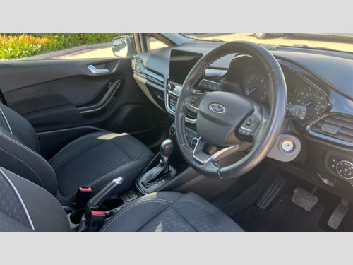 Ford Fiesta 1.0 EcoBoost Zetec 5dr Auto Bluetooth system, Electric power steering, Ford SYNC 3 nav system, apple car play and android auto with voice control, Lane keep assist, Speed limiter, SYNC Emergency Assistance, Trip computer, Auxiliary input socket, DAB with voice control, Steering wheel mounted controls, USB connection, Automatic headlights, Body colour bumpers, Body colour door handles, Body colour electric adjustable heated door mirrors, Body colour rear spoiler, Chrome beltline trim, Cornering front fog lights, Electric front windows/one touch facility, LED daytime running lights, Quickclear heated windscreen, Rear wiper, Tinted glass, Upper front grille chrome surround, 12V Accessory socket in centre console, 3 spoke leather steering wheel, 60/40 split folding rear seat, Adjustable head restraints, Boot carpet, Chrome inner door handles, Cloth upholstery, Footwell illumination, Front map reading lights, Front seat and rear pockets, Height adjustable driver's seat, Illuminated glovebox, Leather gear knob, Leather trimmed handbrake handle, Load area light, Luxury woven headliner, Manual air conditioning, Overhead console with sunglasses holder, Pollen filter, Rake/reach adjustable steering wheel, Rear centre head restraint, 3 point seatbelts on all rear seats, ABS+EBA, Curtain airbags, Driver and passenger airbags, Drivers knee airbag, ESP + traction control, Front passenger airbag deactivation, Front side airbags, Hill start assist, Seatbelt warning, Tyre pressure monitoring system, Immobiliser, MyKey system, Remote central locking, Thatcham Cat.1 alarm