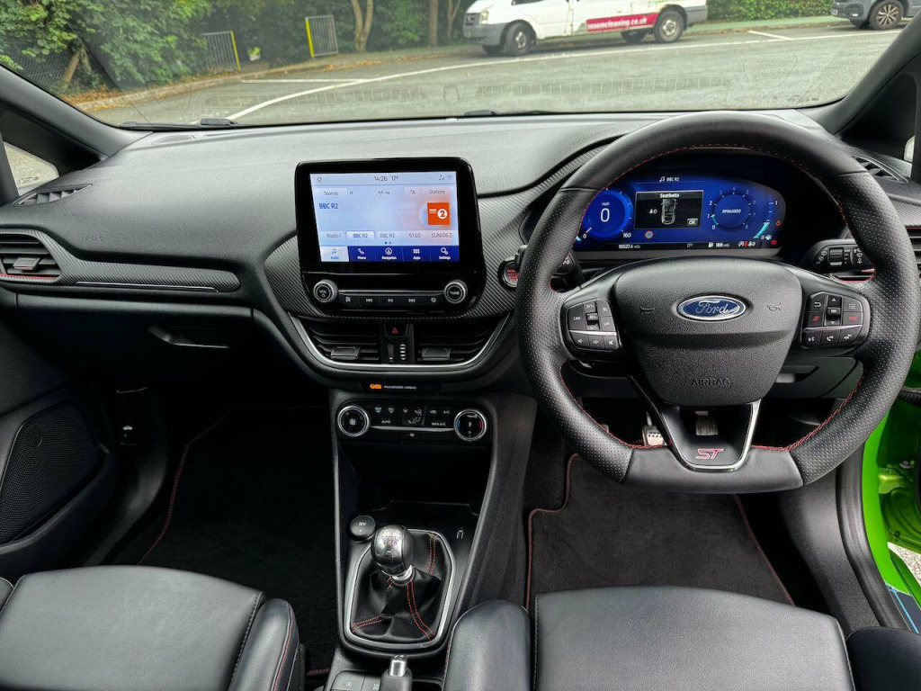 Another used vehicle from Anthony Motors. A 22-plate Ford Fiesta 1.5 EcoBoost 200ps ST-3 3dr in Mean Green with black leather/ cloth trim. It has 16,523 miles on the clock and is priced at £17,495.Specification includes:•	18in Alloy Wheels - 5-Spoke with Magnetite Finish•	Electronic Automatic Temperature Control - EATC•	Automatic Rain Sensing Wipers and Auto-Dimming Rear View Mirror•	Centre Console - Premium with Openable Stowage Area with USB Connectivity - 2 Cupholders and 12v Power Point•	Cruise Control includes Speed Limiter and Intelligent Speed Assistance•	Door Mirrors - Heated - Electric - Integrated Side Indicators - Body Coloured•	Electrically-Operated Front Windows with One Touch Drivers•	Enhanced Electronic Stability Control - ESC with Traction Control - Emergency Brake Assist - EBA - Hill Start Assist - HSA and Trailer Sway Control•	Ford Easy-Fuel Capless Refuelling System•	Ford Key Free System - Keyless Entry with Keyless Start•	Ford Performance Sports Seats•	Front Fog Lamps with Cornering Lights•	Full Digital 12.3in Instrument Cluster•	Headlights - Automatic•	IPS - Intelligent Protection System•	Lane-Keeping Aid with Lane-Keeping Assist•	Matrix LED Headlights with Signature LED Daytime Running Lights and Integrated Sequential Indicator•	Parking Distance Sensors - Rear•	Quickclear Heated Windscreen•	Rear Privacy Glass•	Rear View Camera•	Red Brake Calipers•	Remote Central-Double Locking•	ST 3-Spoke Leather-trimmed Steering Wheel with Metal Grey Stitching•	SYNC 3 with Navigation•	Seats - ISOFIX Mounting Provision for Child Seats•	Selectable Drive Modes•	Sports Pedals•	Thatcham Category Alarm with Power Door Deadlocks•	Traffic Sign Recognition, Auto High Beam and Driver Alert•	Tyre Repair KitPlease contact our sales team on 01970 624444 for further details and to arrange a viewing or test drive of this vehicle.