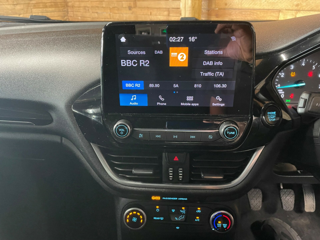 Introducing the 2023 Ford Fiesta Titanium Turbo MHE. With only 17000 miles on the clock, this petrol-powered fiesta offers both performance and efficiency. With its top-of-the-line features including Apple/Android car play, this car is sure to meet the needs of any driver. Whether you're a solo driver or traveling with friends and family, the Fiesta has the space and comfort you need. All of our vehicles go through a detailed mechanical and safety inspection and are fully serviced with a 12 month MOT with no advisories prior to collection, dy colour bumpers, rear privacy glass, cruise control includes speed limiter and intelligent speed assistance, parking distance sensors - rear, auto dimming rear view mirror, rear seat - 60-40 split back and cushion, sports seats, ford sync2.5 without navigation or embedded voice control and embedded modem, led headlights with daytime running lights and integrated fog lights, rear lights - non-led - splite