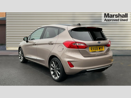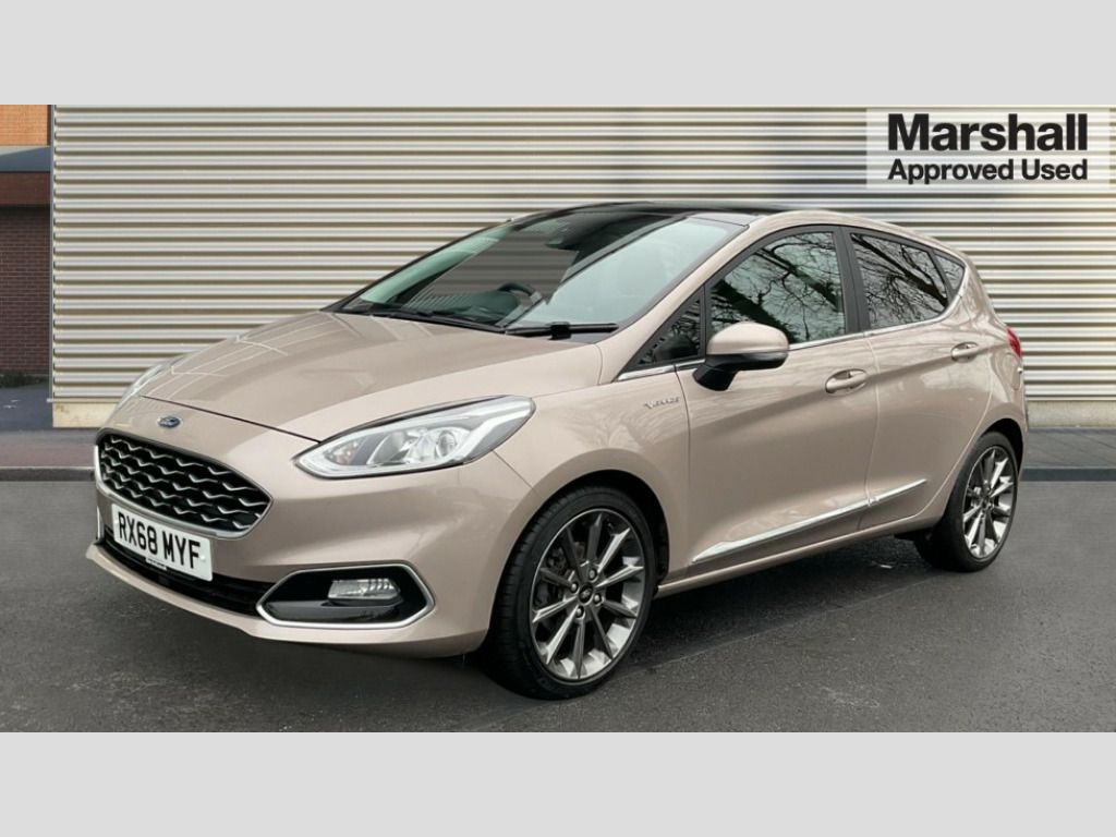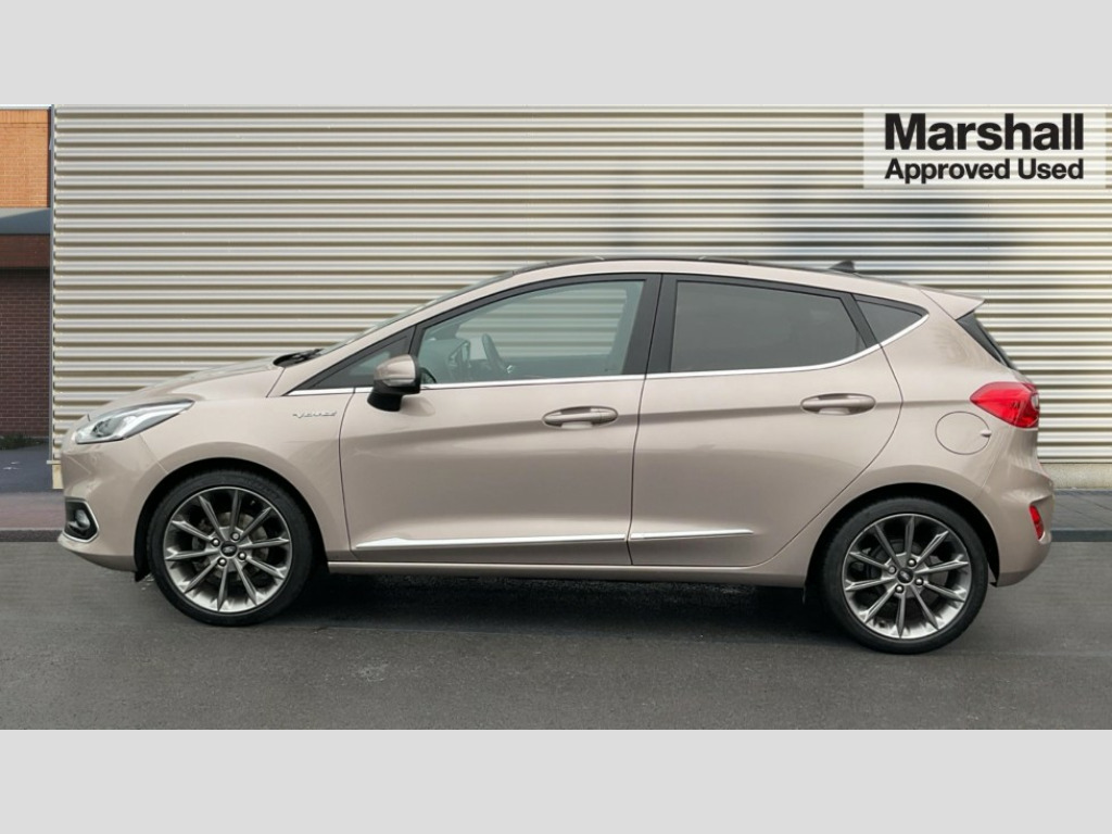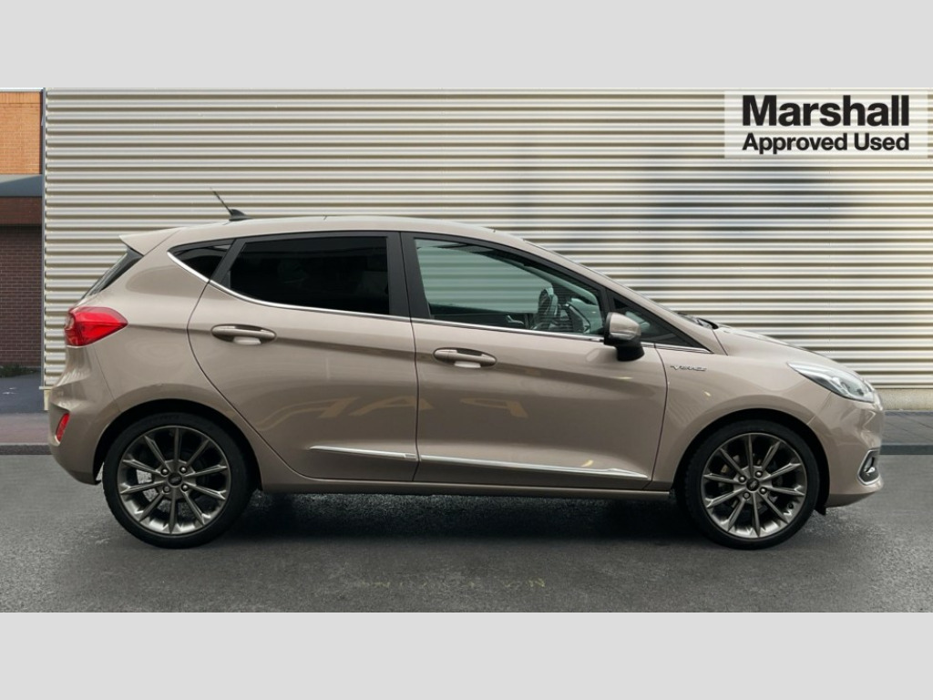 Ford Fiesta Vignale 1.0 EcoBoost 5dr Auto 8" touch screen, Bluetooth system, Electric power steering, Ford easy fuel, Trip computer, 2 USB ports, Auxiliary input socket, B&O Premium audio system with 360 degree sound system, Ford SYNC 3 Navigation system and Ford Pass connect, DAB Digital radio, Steering wheel mounted controls, Auto dimming rear view mirror, Automatic headlights, Body colour bumpers, Body colour door handles, Body colour electric adjustable heated door mirrors with integral indicators, Body colour rear spoiler, Chrome beltline trim, Chrome door handles, Chrome lower window surround, Cornering front fog lights, Electric front windows/one touch facility, Electric rear windows, LED Night signature to rear lights, LED rear lights, Openable panorama roof, Power foldable door mirrors with puddle lights, Quickclear heated windscreen, Rain sensing wipers and auto dimming rear view mirror, Rear privacy glass, Rear wiper, Tinted glass, Unique Vignale front grille & bodystyling, Vignale front door threshold plates, Vignale rear & wing badges, 12V Accessory socket in centre console, 3 spoke leather trimmed steering wheel with audio control, 60/40 split folding rear seat, Adjustable head restraints, Ambient lighting, Boot carpet, Centre console with armrest and illuminated cupholders, Chrome inner door handles, Driver/passenger seat height adj/lumbar support, Footwell illumination, Front map reading lights, Front seat and rear pockets, Front/rear floor mats, Heated front seats, Heated steering wheel, Illuminated glovebox, Leather gear knob, Leather trimmed handbrake handle, Leather upholstery, Load area light, Luxury woven headliner, Overhead console with sunglasses holder, Pollen filter, Rake/reach adjustable steering wheel, Rear centre head restraint, NCAP Pack - Fiesta, Rear view camera pack - Fiesta, 3 point seatbelts on all rear seats, ABS+EBA, Curtain airbags, Driver and passenger airbags, Drivers knee airbag, Electronic stability control with hill start assist, Front passenger airbag deactivation, Front side airbags, Seatbelt warning, Tyre pressure monitoring system, Ford keyfree system with Keyless entry and keyless start with two remote keys, MyKey system, Remote central locking & engine immobiliser, Thatcham Cat.1 alarm, Tyre repair kit