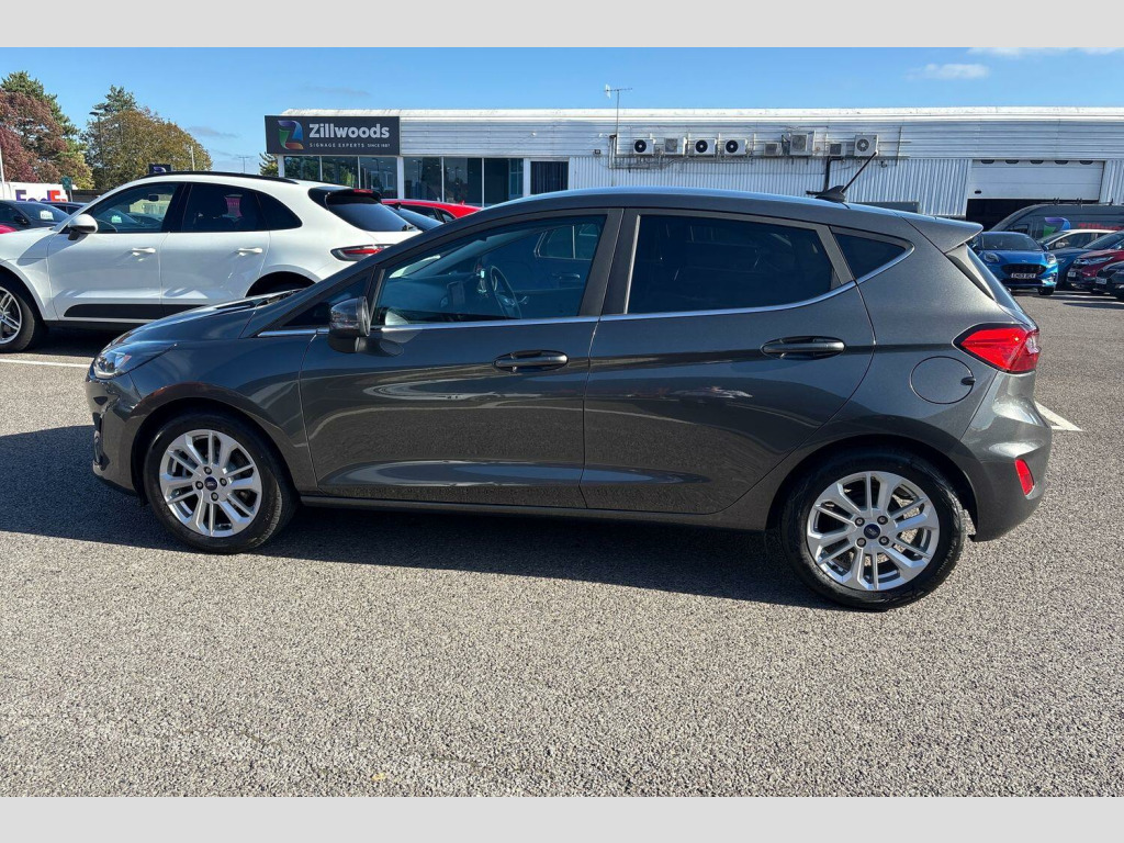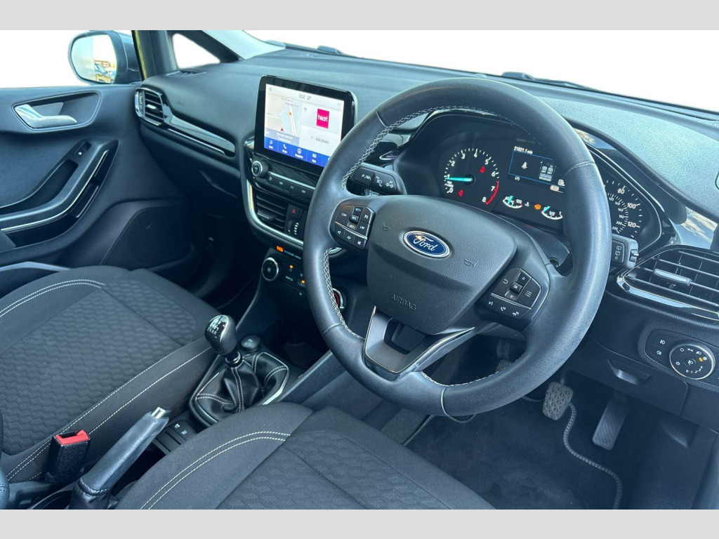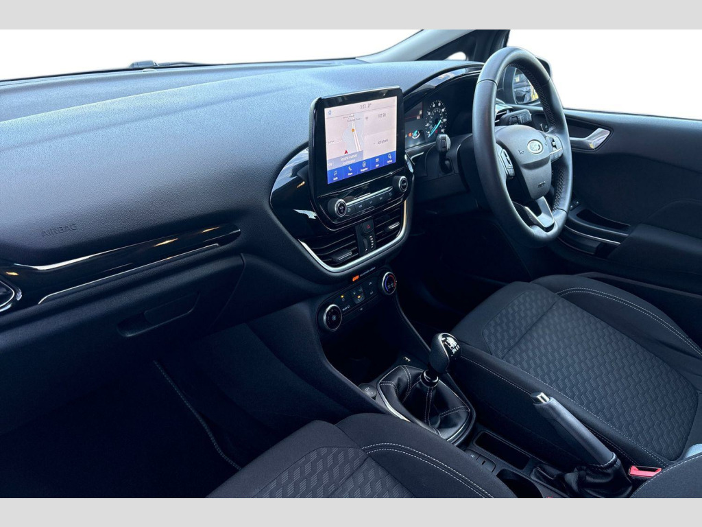 The exterior of this Titanium trim Fiesta is enhanced with LED headlights featuring daytime running lights and integrated fog lights, alongside automatic headlights that adjust to conditions. Parking is made easier with rear parking distance sensors. This Fiesta accelerates from 0-62mph in 10.8 seconds, a performance that demonstrates its capability. These features collectively highlight how this particular Ford Fiesta offers a well equipped and convenient package, setting it apart for discerning drivers. 16in Alloy Wheels - Titanium Design, Cloth - Black with Metal Grey Stitching, 15in Structured Steel Wheels - 10-Spoke with Black-Silver Cover, 4.2in TFT Ice Blue Illumination Analogue Cluster with Trip Computer, Air Conditioning - Manual, Airbags - Driver and Front Passenger, Airbags - Front Side Impact, Airbags - Side Curtain, Anti-Lock Braking System - ABS with Electronic Brake Force Distribution - EBD, Automatic Rain Sensing Wipers and Auto-Dimming Rear View Mirror, Body Colour Bumpers, Cargo Area Cover, Centre Console - Premium with Openable Stowage Area with USB Connectivity - 2 Cupholders and 12v Power Point, Chrome Belt Line Finisher, Courtesy Light - Front LED with Map-reading Light, Cruise Control includes Speed Limiter and Intelligent Speed Assistance, Door Handles - Body Colour, Door Lever - Chrome Finish, Door Mirrors - Heated - Electric - Integrated Side Indicators - Body Coloured, EPAS - Electric Power Assisted Steering, Electric Windows - Rear, Electrically-Operated Front Windows with One Touch Drivers, Emergency Brake Warning - Automatic Hazard Warning Lights, Enhanced Electronic Stability Control - ESC with Traction Control - Emergency Brake Assist - EBA - Hill Start Assist - HSA and Trailer Sway Control, Floor Mats - Front, Ford Easy-Fuel Capless Refuelling System, Front Fog Lamps with Cornering Lights, Front Seat - Driver 4-Way Manual Adjust, Headlights - Automatic, High Gloss Chrome Grille Surround with Satin Grille Insert, IPS - Intelligent Protection System, Interior Ambient LED Lighting, Keyless Start, LED Headlights with Daytime Running Lights and Integrated Fog Lights, Lane-Keeping Aid with Lane-Keeping Assist, Locking Wheel Nuts, MyKey, Overhead Console - Sunglasses Holder, Parking Distance Sensors - Rear, Quickclear Heated Windscreen, Rear Fog Lamps, Rear Privacy Glass, Rear Seat - 60-40 Split Back and Cushion, Rear Spoiler - Body Colour with Centre High Mounted Stop Light, Remote Central-Double Locking, SYNC 3 with Navigation, Seats - Front Passenger 2-Way Adjustment, Seats - ISOFIX Mounting Provision for Child Seats, Selectable Drive Modes, Sensico Steering Wheel, Standard Suspension, Steering Column - Rake and Reach Adjustment, Tailgate Wash-Wipe, Thatcham Category Alarm with Power Door Deadlocks, Traffic Sign Recognition, Auto High Beam and Driver Alert, Trip Computer, Tyre Pressure Monitoring System - TPMS, Tyre Repair Kit, SYNC 3 with Navigation
