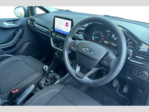 This 2022 Ford Fiesta T Titanium is a superb example, having had only one owner since new. This Euro 6 compliant 1.0L petrol model offers a smooth driving experience and comes with a 3 month warranty for your peace of mind. Its MOT is valid until September 2026, ensuring its roadworthiness for years to come. Inside, you'll find manual air conditioning for comfort, and the SYNC 3 system with navigation, which seamlessly integrates with Android Auto and Apple CarPlay, keeping you connected and informed on every journey.