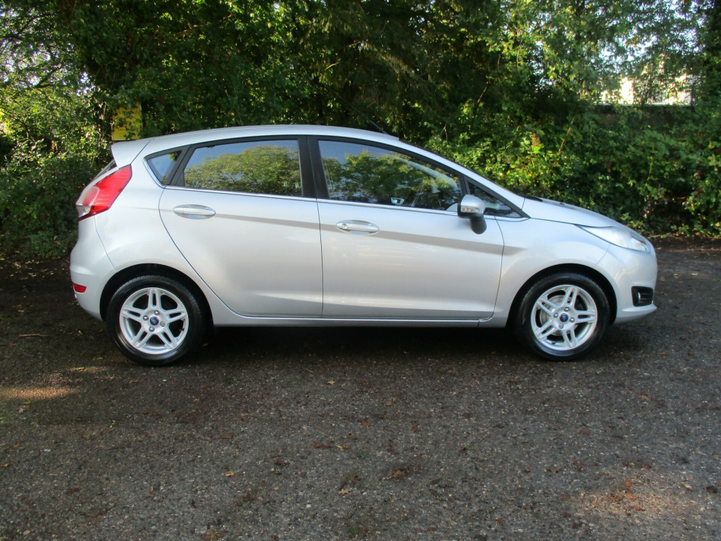 2013 Ford Fiesta 1.25 Zetec 5 Door Hatchback with 83,000 Miles and One Former Keeper from New. This popular Small Hatchback comes with a Full Service History which was mainly carried out by a Ford Main Dealer, 2 Remote Keys, Full Ford Book Pack and an M.O.T until May 2026. Just had New Front Brake Pads and Discs Fitted by our Own Workshops. The Zetec model has 15''Alloy Wheels, Reversing Sensors, Electric/Power Fold Door Mirrors with Integrated Indicators, Heated Front Windscreen, Air Conditioning, Electrically Operated Front Windows, ISOFIX Rear Child Seat Attachments, Drivers Seat Height Adjustment, Front Fog Lights with Chrome Surrounds, Power Assisted Steering, Front/Rear Adjustable Head Restraints, Anti Lock Braking System, USB & AUX Port, Adjustable Steering Column and In Car Entertainment System. Finished in Ford Moondust Silver Metallic with a Grey Cloth Interior, this Fiesta is in Absolutely Outstanding Condition throughout. Choice of 7 Fiestas in Stock. For many more vehicles please visit our website www.miautos.co.uk or please call us on 02380 292929. Part Exchange and Finance Arranged.