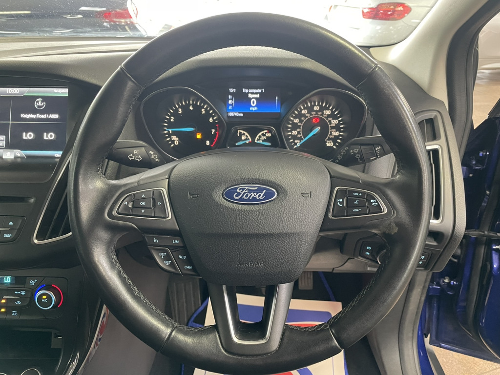 FORD FOCUS TITANIUM TOP SPECIFICATION!! This is a lovely Ford Focus for everyone with a 1.0 eco boost engine and cheap insurance and only £20 tax a year you can't go wrong! With part service history and only 3 owners from new and just 88740 miles from new and a 6 speed manual gear box with Bluetooth connectivity and climate control it's a nice place to be and for a reasonable price! Especially considering all including you get 12 Months MOT a service to requirements carried out by ourselves a trusted family run business and 3 Months RAC warranty and 12months RAC breakdown cover for no extra cost! For anymore questions please call us on 01422240240, AUTO TRADER 16'' Alloys