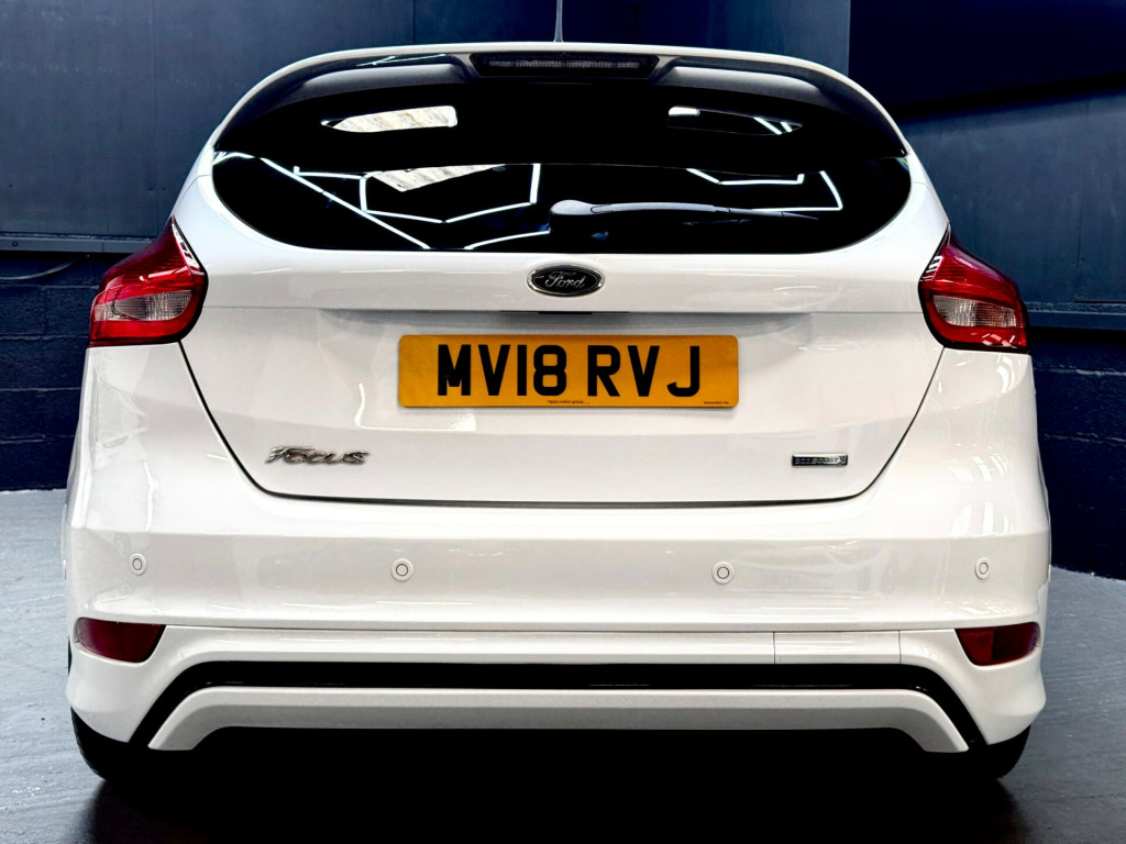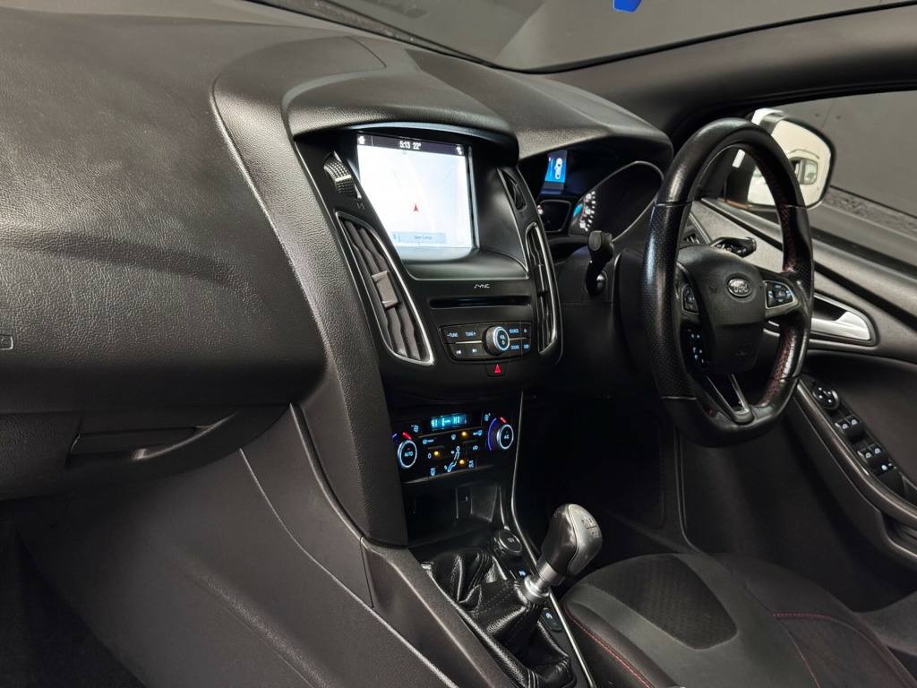 This 2018 Ford Focus 1.0 EcoBoost 140 ST-Line X 5dr is a sleek hatchback with 67000 miles on the clock, powered by petrol and boasting an MOT expiry date of 24/04/2026. With 5 doors and capable of seating 5 people, it is ULEZ compliant and has had 3 previous registered keepers. It comes with desirable features such as cruise control + speed limiter, digital clock, easy fuel capless refuelling system, eco mode, and electric boot release, making it a practical and stylish choice for anyone in the market for a reliable and efficient car. uise control + speed limiter, digital clock, easy fuel capless refuelling system, eco mode, electric boot release, pas, sync 3 nav system with dab radio/cd, 8'' colour touch screen, bluetooth, emergency assistance, advanced voice control and 6 speakers, tft cluster screen, trip computer, sports suspension, aux input, steering column with mounted audio controls, usb connection, 'quickclear' heated windscreen/heated washer jets, auto dimming rear view mirror, automatic headlights, automatic rain sensing wipers, black honeycomb front grille, body colour bumpers, body colour door handles, body colour door mirrors, body colour rear spoiler, body colour side skirt, body styling kit, chrome finish on upper door line, electric adjustable heated door mirrors, electric front and rear windows + one touch + global open/closing, front fog lights, front variable intermittent wipers with electric wash, heated rear window, led daytime running lights, rear led lights, rear privacy glass, tailgate wash/wipe, 3 spoke leather multifunction sports steering wheel with red stitching, 60/40 split back and cushion rear seats with 2 height adjustable headrests, black headlining, centre console with sliding front armrest, cloth upholstery, driver, driver, dual electronic automatic temperature control air conditioning - cfc-free, floor mats with red stitching, height adjustable front headrests, isofix child seat preparation, reach + rake adjustable steering column, red stitching on handbrake lever, sport leather gear knob, sports pedals, sports style front seats, stainless steel scuff plates, abs+electronic brake force distribution, driver airbag, esp with traction control + emergency brake assist, front inertia reel height adjustable seatbelts with pre-tensioners, front passenger airbag, front side airbags, hill start assist, red brake calipers, side curtain airbags, three rear inertia reel lap/diagonal seatbelts, torque vectoring brake, tyre pressure monitoring system, immobiliser-passive anti-theft system (pats), keyless start, mykey system, remote central double locking, thatcham cat.1 alarm, contrast stitching - red, 18'' 5 spoke rock metallic alloy wheels, mini steel spare wheel, 18'' Alloys