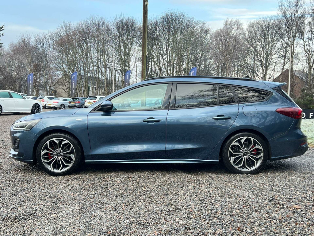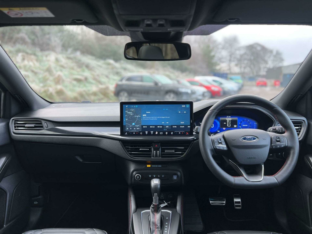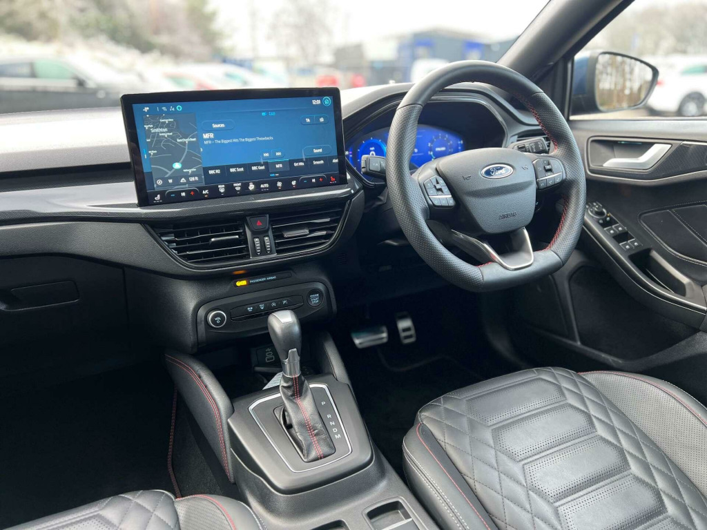 Introducing the Ford Focus 1.0 Focus ST-Line X MHEV Auto 5dr – a stunning blend of style, performance, and cutting-edge technology. With just 15,000 miles on the clock and having been cherished by only two previous owners, this exceptional vehicle is ready to offer you an unparalleled driving experience.Dressed in a striking Chrome Blue finish, the Ford Focus is sure to turn heads wherever you go. Its sleek design is complemented by a host of premium extras that elevate your driving experience to new heights.Safety and convenience are at the forefront with the Blind Spot Information System and Driver Assistance Pack, ensuring peace of mind on every journey. The Dynamic Matrix LED Headlights with Glare Free Lighting provide superior visibility, making night-time driving a breeze.Step inside to discover the luxurious Full Sensico interior in Ebony with Red Stitching, offering both comfort and style. The panoramic roof, which is openable, floods the cabin with natural light, creating an airy and inviting atmosphere.The Hands-Free Tailgate adds a touch of convenience, allowing you to access the boot with ease, even when your hands are full. The Head-Up Display keeps essential information in your line of sight, so you can keep your eyes on the road.Parking is made effortless with the Parking Pack, ensuring you can manoeuvre into tight spots with confidence.The Ford Focus is more than just a car; it's a statement of sophistication and innovation. Don't miss the opportunity to own this remarkable vehicle. Visit us today and experience the Ford Focus for yourself – where every drive is a journey to remember.. 18in Alloy Wheels - 5x3 Spoke - High Gloss Pearl Grey - Machined Finish, ABS - Anti-lock Braking System, Acoustic Laminated Windscreen, Airbags - Driver and Front Passenger, Airbags - Front Side Impact, Airbags - Front and Rear Side Curtain, Automatic Dimming Rear View Mirror, Centre Console - Premium with Sliding Armrest - Cupholder with Sliding Cover, Child Proof Rear Door Locks, Courtesy Light - Ambient LED Courtesy Lighting, Cruise Control with Adjustable Speed Limiter, DEATC - Dual-Zone Electronic Automatic Temperature Control, Door Mirrors - Electrically-Operated - Heated - Power-Foldable - Puddle Lights - Side Indicators, EBA - Emergency Brake Assist, ESC - Electronic Stability Control, Easy Stow Tonneau Cover, Electric Parking Brake, Ford Easy Fuel System, Ford Key Free System - Keyless Entry with Keyless Start, Ford SYNC4 Navigation with 13.2in Touchscreen, Front Passenger Airbag Deactivation Switch, Front Seat - Passenger 2-Way Manual Adjustment, Front Seatback Map Pockets - Driver and Passenger, Front Seats - Sports Style V-shape with High Bolster, Front and Rear Floor Mats with Double Stitching, Front and Rear Seatbelt Minder, Full Digital 12.3in Instrument Cluster, Full Fixed LED Headlight with LED Daytime Running Lights, Gearshift Knob - ST - Aluminium, Headlights - Automatic On-Off, Hill Start Assist, Intelligent Speed Assistance, LED Front Fog Lights with Cornering Function, Lane-Keeping Aid with Lane-Keeping Assist, Large Rear Spoiler - Body Colour with Centre High Mounted Stop Light, Load Floor Carpet, Load Through Ski Hatch, Loadspace Tie-Down Loops, Locking Wheel Nuts, Luggage Compartment Power Point, MyKey, Overhead Console - Medium Length with Front and Rear LED Courtesy Lights, Parking Sensor - Front and Rear, Polished Twin Tailpipe, Power 4-Way Driver Seat Adjust, Power Steering, Pre-Collision Assist with Autonomous Emergency Braking and Pedestrian-Cyclist Detection, Quickclear Heated Windscreen, Rain Sensitive Windshield Wipers, Rear Centre Armrest with Cupholders, Rear Fog Lamps, Rear Lights - LED, Rear Privacy Glass, Rear Seat - 60-40 Split Folding Seats, Red Brake Calipers, Remote Central-Double Locking, Roof Rails - Black-finish, ST-Line Badge, ST-Line Scuff Plates, Seats - ISOFIX Mounting Provision for Child Seats, Selectable Drive Mode, Spare Wheel - Mini Steel, Sports Tuned Suspension, Steering Wheel - 3-Spoke Sensico Trimmed with Integrated Audio Controls, Tailgate Wash-Wipe, Thatcham Category Alarm with Power Door Deadlocks, Traction Control - TC, Trailer Sway Control, Trip Computer, Tyre Pressure Monitoring System, Unique ST-Line Front and Rear Bumpers - with Satin Aluminium Bumper Extension Applique, Unique ST-Line Grille and Full Bodystyling Kit - Large Body Coloured Rear Spoiler, Windows - Electrically Operated Front and Rear with One Touch Opening and Closing, Winter Pack, Wireless Charging, Blind Spot Information System, Chrome Blue, Driver Assistance Pack, Dynamic Matrix LED Headlights including Glare Free Lighting, Full Sensico - Ebony with Red Stitching, Hands-Free Tailgate, Head-Up Display, Panoramic Roof - Openable, Parking Pack.