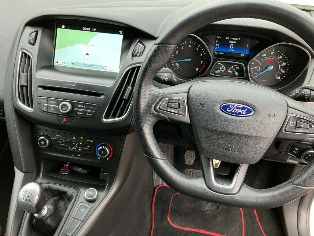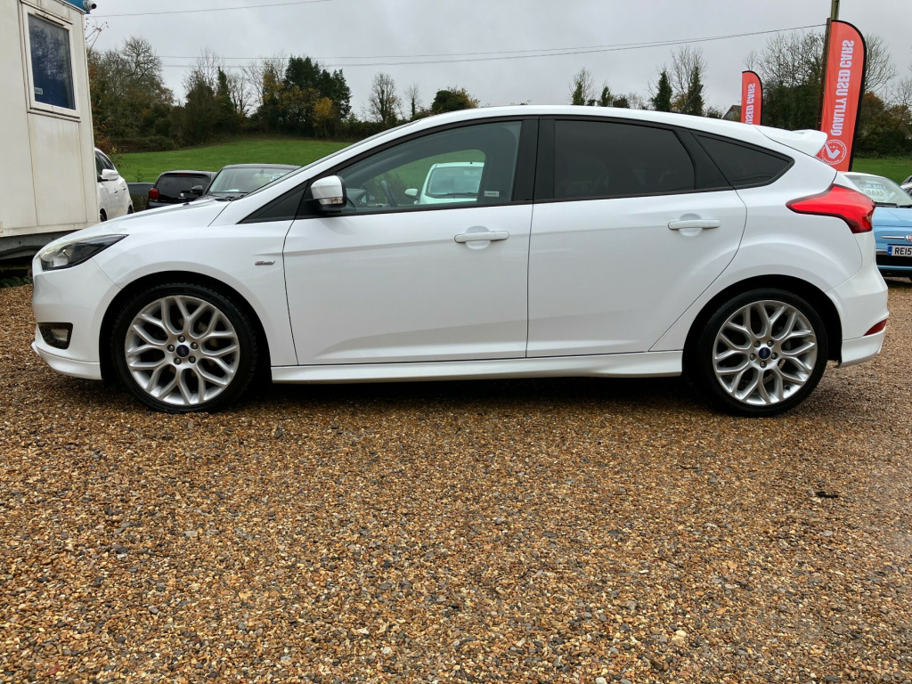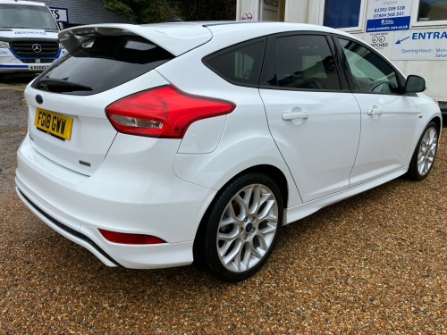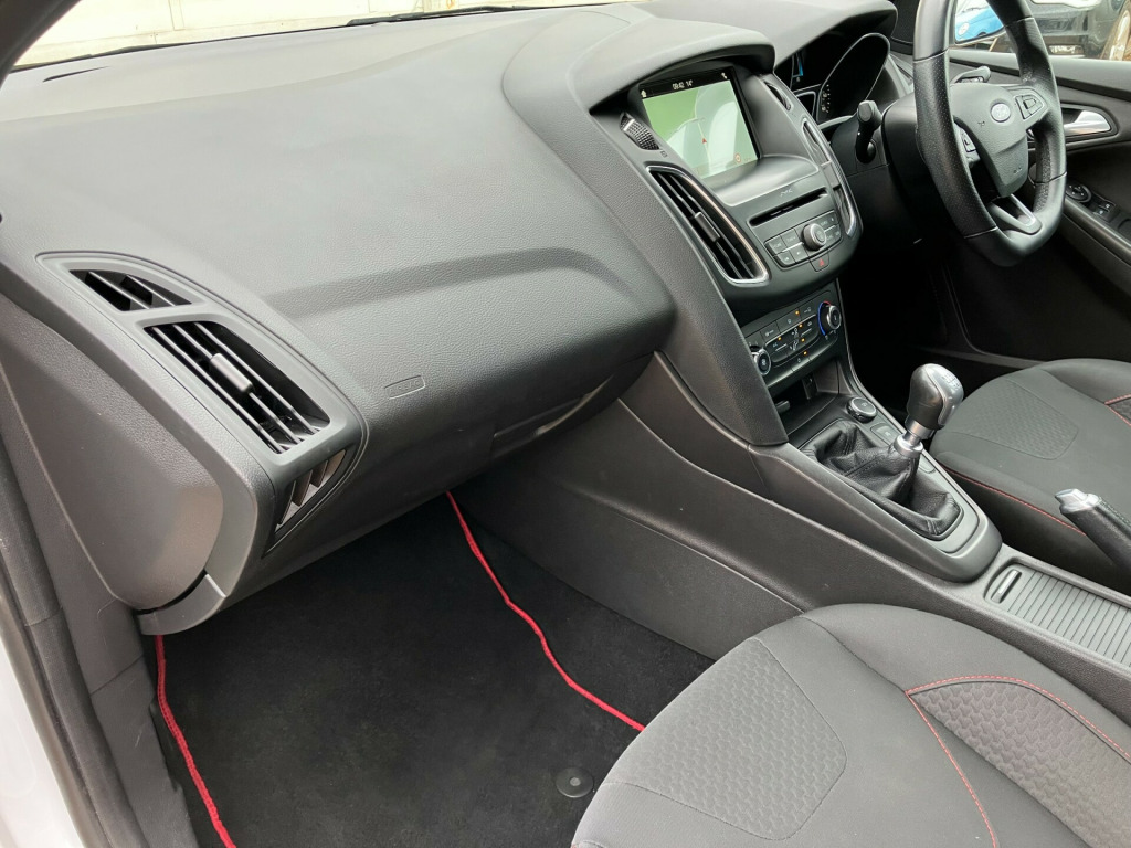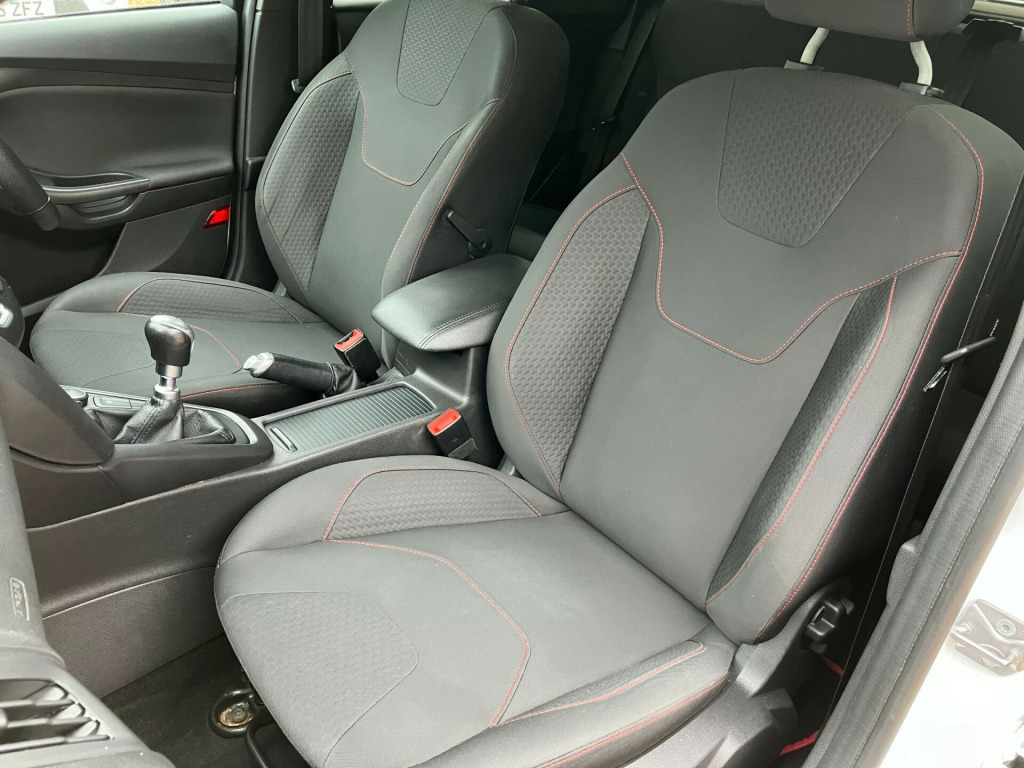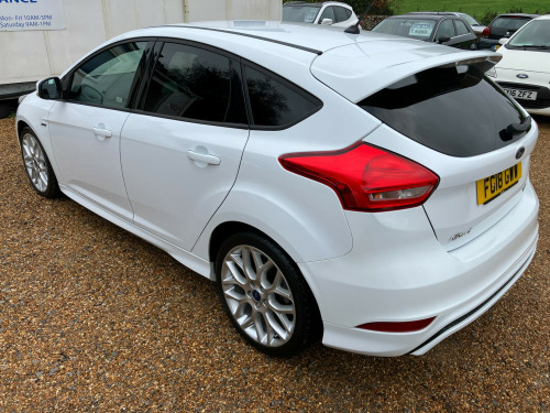 2018 '18' Ford Focus 1.0 ST - Line 140Finance available, please contact us for details.INTERIOR: Grey cloth interior. Electric windows. Electric mirrors. Remote central locking. Power steering. Multiple air bags. Factory radio / cd player, with steering wheel controls. Touch screen. Sat Nav. Telephone prep. Heated front screen.EXTERIOR: White paintwork, colour coded bumpers and mirrors. Factory ST - Line body kit. 18'' Ford alloy wheels. Some minor marks, consistent with age / mileage etc.MECHANICALS: 998cc petrol engine. 6 speed manual gearbox. All running gear good, and the car drives well. Recently had clutch kit and full cambelt kit and major service etc at 52k.PAPERWORK: HPI clear. Full logbook. Current MOT expires November 3rd 2026, no advisories. All owners manuals in Ford wallet. Invoice for fresh clutch kit and major service including wet belt and water pump etc at 52k.OVERALL: Nice, sensible little car, that is cheap to run and maintain. Looks amazing. Good condition throughout. Drives very well. Nice spec. Recent clutch kit and major service and cambelt etc. Long MOT., in alloy wheels - rock metallic finish, black exterior trim detailing including upper door line and headlamp surround, body colour large rear spoiler and side skirts, body coloured front styling kit with centre aero foil, door mirrors - heated - electric - integrated side indicators - body coloured, locking wheel nuts, quickclear heated front windscreen with heated washer jets, rear bumper with integral body coloured diffuser and honeycomb mesh in high-gloss black, st line stainless steel scuff plates, spare wheel - mini steel, upper and lower grille - high gloss black honeycomb design, windows - electrically operated front with one touch lowering on drivers side, wipers - standard with 6 speed interval settings, air conditioning - manual, centre console - premium with sliding armrest - covered stowage bins, courtesy light - front and rear passengers - overhead halogen and load compartment, drivers seat lumbar adjust, ford power starter button, front floor mats, front seat - drivers manual height and fore-aft adjustment, front seat - passenger manual fore-aft adjustment, front seats - sports style, gearshift knob - leather, headliner - black woven, keyless start, leather-trimmed handbrake, mykey, sports style pedals - gear knob and steering wheel, steering column - rake and reach adjustment, steering wheel - 3-spoke flat bottom - leather trimmed, airbags - driver and front passenger, airbags - front side impact, airbags - front and rear side curtain, alarm - thatcham category 1 with volume sensing and perimeter, anti-lock braking system - abs with electronic brake force distribution - ebd, electronic stability programme - esp - with traction control and emergency brake assist - eba, emergency brake warning - automatic hazard warning lights, ford easy-fuel capless refuelling system, hill start assist, ips - intelligent protection system, remote central-double locking, seats - isofix mounting provision for child seats, tvc - torque vectoring control, colour tft instrument cluster display, ford sync3 dab navigation system, sync3 with 8in touchscreen dab audio system, epas - electric power assisted steering, ford eco mode - driver information system, front suspension - independent with macpherson struts and anti-roll bar, rear suspension - independent control blade multi-link system and anti-roll bar, suspension - sports, trip computer, tyre pressure monitoring system, front fog lights, halogen headlights with black surround, headlights - courtesy delay, led daytime running lights, rear lights - led