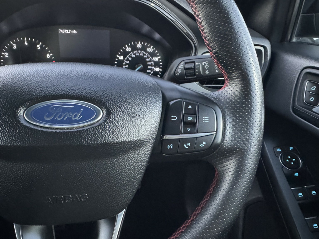 *1.0 T ECOBOOST ST LINE*ONLY 72K*17 INCH METALLIC ALLOY WHEELS*ST LINE FRONT & REAR BUMPERS*ST LINE SIDE SKIRTS*FLAT BOTTOMED LEATHER STEERING WHEEL WITH RED STITCHING*REAR PRIVACY GLASS*SAT NAV*FORD SYNC WITH 8 INCH TOUCHSCREEN**DAB RADIO*BLUETOOTH*AIR CON*CRUISE CONTROL & SPEED LIMITER*HILL START ASSIST*PRE COLLISION ASSIST*SPEED SIGN RECOGNITION*LANE KEEPING SYSTEM*QUICKCLEAR HEATED WINDSCREEN*ELECTRIC HANDBRAKE*, , THIS CAR COMES WITH A NEW MOT AT THE POINT OF PURCHASE AND THE ADDED BENEFIT OF OUR OWN THREE MONTH FULLY INCLUSIVE NO QUIBBLE WARRANTY WITH THE OPTION TO PURCHASE AN EXTENDED WARRANTY. , We are a locally owned SMALL FAMILY BUSINESS with more than twenty years experience in the motor trade, each of our cars are handpicked by the owner to assure quality and value for money. Please read our FIVE STAR RATED REVIEWS on Google and Facebook. Our aim is to make your buying experience as hassle free as possible, with no commission based sales staff, we are here to help you. For a finance quote on this car go to our website, click on this car, scroll down and you will see example monthly costs, you can then apply direct online by clicking the Apply Now button to get a bespoke personal quote.