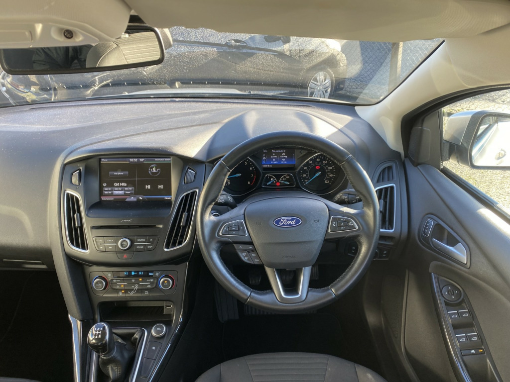 Ford Focus 1.0 Titanium 5 Door hatchback in Moondust Silver, Ford dealer plus 1 owner Only 56678 miles with a full service history and has just been serviced with a new MoT, Specification includes Digital air conditioning Alloy wheels Rear parking sensors Ford Sync 2 with a colour touch screen Bluetooth phone connection and phone streaming DAB CD Radio with auxiliary and usb ports Cruise control Trip computer Electric front and rear windows Remote central locking with 2 keys and a long list of driver assistance and safety features, A very well looked after car inside and out, £5495