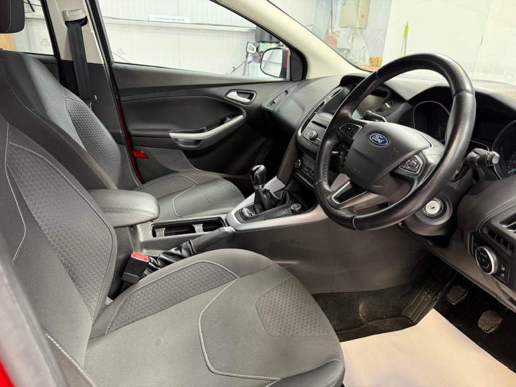 Red Gloss Paint with Black Cloth Interior, 16in Alloy Wheels, Rear Radar Type Parking Sensors, Front Electric Windows, Rear Privacy Glass, Front & Rear Fog Lights, Electrically Heated Windscreen, Heated Rear Screen with Intermittent Wiper, Electrically Adjustable Door Mirrors, Air Conditioning, Multifunction Touchscreen Display with Satellite Navigation, Audio System with FM & DAB Radio, CD Player, USB Input, Multifunction Steering Wheel with Tilt & Telescopic Adjustment, Cruise Control, Speed Limiter, Centre Armrest with Storage Below, Front Cupholders, ISOFIX Preparation. This FORD FOCUS 1.0 EcoBoost Zetec Edition 5dr is a tidy and well presented example. Experience dynamic driving with this 2017 Ford Focus 1.0 EcoBoost Zetec Edition, featuring a spirited 1.0L turbo engine delivering 125 hp and impressive fuel efficiency of up to 47 mpg. Loaded with modern tech like SYNC 3 touchscreen navigation, rear parking sensors, and stylish 16 inch alloy wheels, this sleek 5-door hatchback offers a perfect blend of performance, comfort, and practicality. This Ford Focus comes with a full service history, was last serviced in May 2025 and has an MOT until May 2026. Viewing and test drive is recommended. The Team at Graham Mitchell Automotive are delighted to offer this vehicle to the market with a 3 Month Nationwide Warranty, with options to extend from 12 Months to 3 Years, along with 12 Months Free AA Breakdown Cover. Please note, we operate on a viewing by appointment only basis, as not every vehicle is kept immediately on site. Every vehicle that is offered for sale has a prior multipoint inspection before coming into stock, along with a full HPI Check. Our stock never stays available for long, so secure this vehicle today with a deposit. We accept payment by bank transfer and debit & credit card. To view our entire range of available stock, visit our Website. We are very proud to be a consistent 5* trusted dealer, with our reviews available on Google. We are also proud to be an AA Accredited and Trading Standards approved Dealer. At Graham Mitchell Automotive, we strive for first class customer service and aim to present the best quality stock. Purchase today with peace of mind.