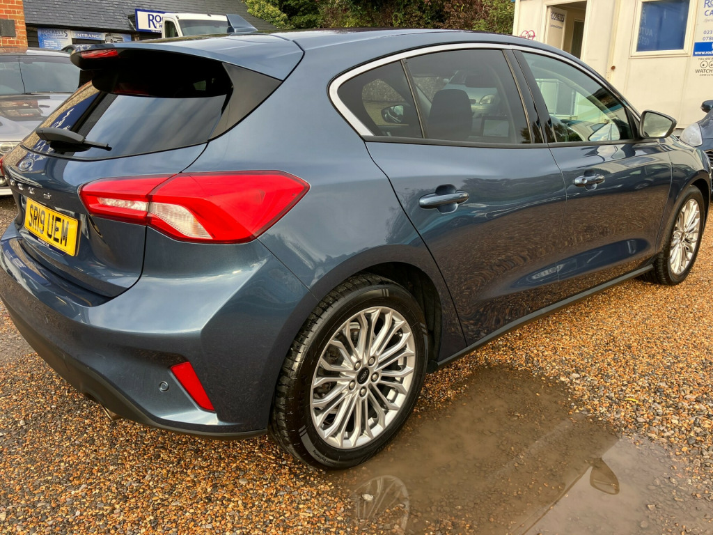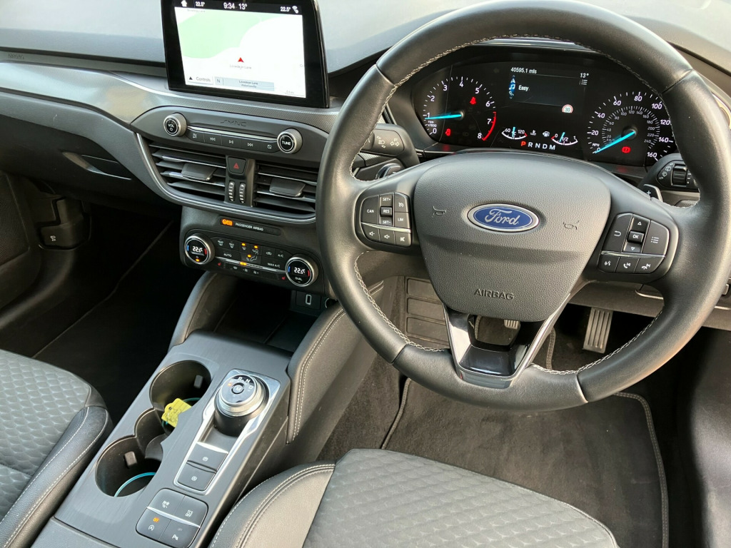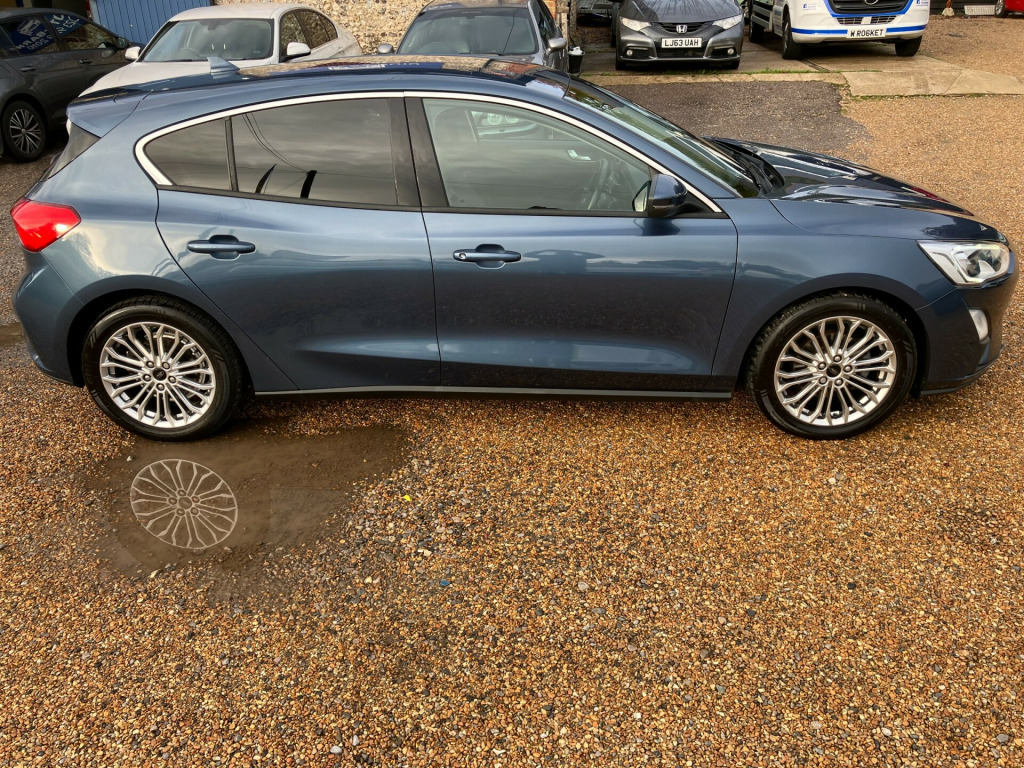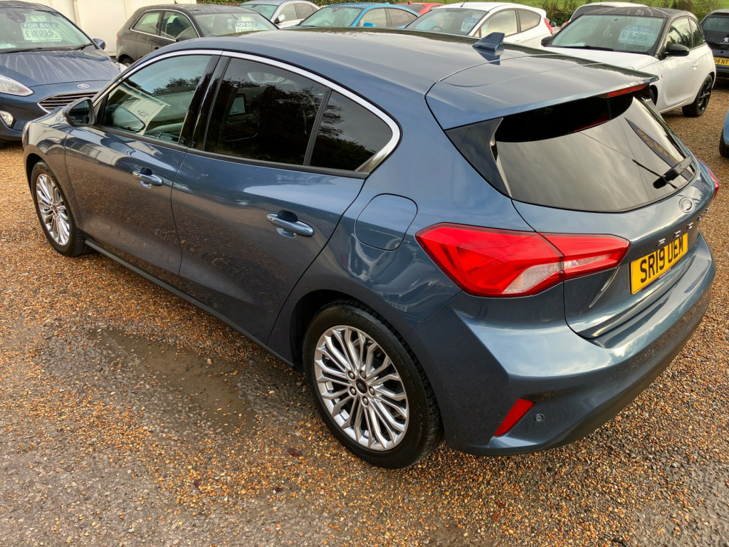 2019 '19' Ford Focus 1.0 Titanium-X AUTOMATICFinance available, please call for details.INTERIOR: Grey 1/2 leather interior, heated front seats, electric drivers seat. Electric windows. Electric mirrors. Remote central locking. Power steering. Multiple air bags. Factory radio / cd player / USB etc. Cruise control. Auto lights. Sat nav. Front and rear park assist. Heated front screen.EXTERIOR: Blue paintwork, colour coded bumpers and mirrors. 17'' Ford alloy wheels. Some minor marks, consistent with age etc.MECHANICALS: 998cc petrol engine. Automatic gearbox. All running gear good, and the car drives superb. Recent full engine service at 40k.PAPERWORK: HPI clear. Full logbook. Current MOT expires May 27th 2026. Invoice for the fresh engine service.OVERALL: Small automatic car. Clean car throughout. Drives great. Very high spec. Fresh engine service. Long MOT., in alloy wheels - 10x2 spoke - luster nickel, acoustic laminated windscreen, bright finish on upper door line, door handles - body colour, door mirrors - electrically-operated - heated - power-foldable - body colour housings - side indicators - puddle lights, fog light bezel - bright, ford easy fuel system, front bumper - body colour upper - self colour lower, front lower grille - self colour, front upper grille - chrome - horizontal bars, headlight bezel - aluminium, locking wheel nuts, quickclear heated windscreen, rear bumper - body colour 2-piece design, rear privacy glass, rear spoiler - body colour with centre high mounted stop light, scuff plates - front - aluminium finish with ford logo, side skirts - self colour, spare wheel - mini steel, windows - electrically operated front and rear with one touch opening and closing, abs - anti-lock braking system, active city stop, airbags - driver and front passenger, airbags - front side impact, airbags - front and rear side curtain, alarm - thatcham category 1 with volume sensing and perimeter, child proof rear door locks, esc - electronic stability control, electric parking brake, ford key free system - keyless entry with keyless start, front passenger airbag deactivation switch, front and rear seatbelt minder, hill start assist, lane keeping aid with lane departure warning, post collision braking, remote central locking and engine immobiliser, seats - isofix mounting provision for child seats, tailgate wash-wipe, traction control - tc, trailer sway control, automatic dimming rear view mirror, centre console - premium with short sliding armrest - open cup holder - 12v front and rear power points, courtesy light - ambient led courtesy lighting, deatc - dual-zone electronic automatic temperature control, front passenger seat - rotary recliner, front seat - drivers electrically-operated lumbar support adjustment, front seat - drivers power height - fore-aft - power recliner and lumbar seat support, front seat - passenger manual height - lumbar and fore-aft adjustment, front seat - passengers manual lumbar support adjustment, front seatback map pockets - driver and passenger, front seats - driver and passenger heated seats, front seats - sports style v-shape with high bolster, gearshift knob - e-shifter rotary bezel, load compartment area cover, load floor carpet, mykey, paddle shift, rain sensitive windshield wipers, rear centre armrest with cupholders, rear centre headrest, rear fog lamps, rear seat - 60-40 split folding seats, rear seat fixed cushion, soft console knee pads, steering column - rake and reach adjustment, steering wheel - 3-spoke - leather trimmed, unique door and instrument panel inserts, cruise control with speed limiter, parking sensor - front and rear, power steering, pre-collision assist with pedestrian detection, selectable drive mode, trip computer, tyre pressure monitoring system, ford sync3 dab navigation system, fordpass connect, front fog lights with cornering function, halogen reflector headlights, headlights - automatic on-off, headlights - follow me home, led daytime running lights, rear lights - led