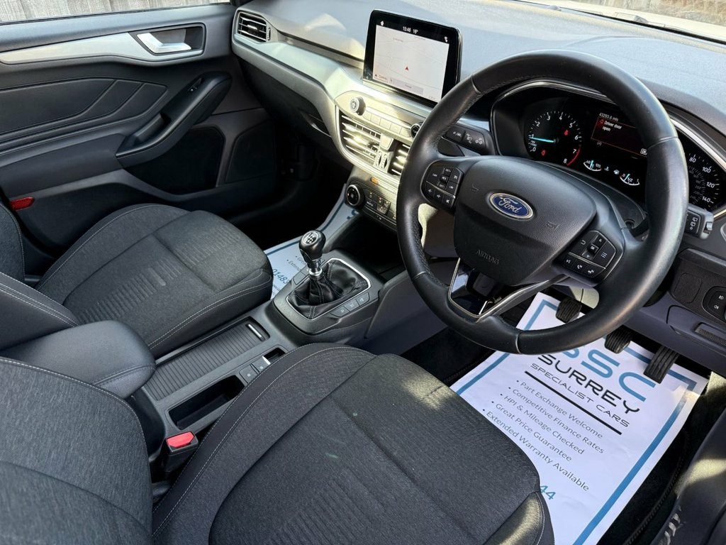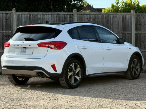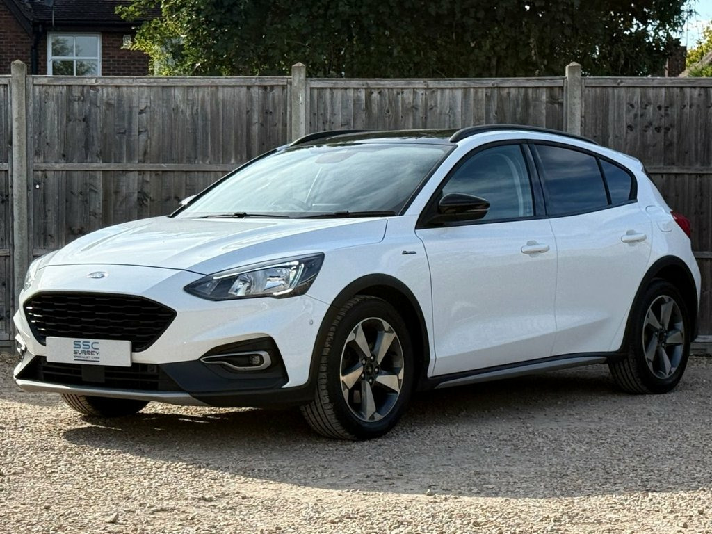 Surrey Specialist Cars are proud to present our lovely Ford Focus Active. This amazing car comes with Service History, finished in stunning metallic white with grey contrast interior. The car has a Long MOT until May 2026 so it is ready to go. The 1L Petrol engine offers superb economy at over 63 MPG on combined cycle. Features Include Multifunction Steering Wheel, Trip Computer, Satellite Navigation, Parking Camera, Stereo/Phone Control, Touch Screen, FM/DAB Radio, CD Player, Bluetooth Audio, AUX Input, USB Input, Air Conditioning, Start/Stop System, 12V Charging Socket, 6 Speed Manual Gearbox, Fog Lights, Electric Windows, 17 Inch Alloy Wheels and two Remote Control Keys to name a few. 17in Alloy Wheels - 5-Spoke - Foundry Bl, ABS - Anti-lock Braking System, Acoustic Laminated Windscreen, Active Badge, Active Front and Rear Bumper with Unique, Airbags - Driver and Front Passenger, Airbags - Front Side Impact, Airbags - Front and Rear Side Curtain, Alarm - Thatcham Category 1 with Volume , Black Finish on Upper Door Line, Black Painted Roof and Mirror Caps, Centre Console - Premium with Sliding Ar, Child Proof Rear Door Locks, Cruise Control with Speed Limiter, Door Handles - Body Colour, Door Mirrors - Heated - Electric - Integ, ESC - Electronic Stability Control, Electric Parking Brake, Emergency Assistance, Floor Mats - Front Velour, Fog Light Bezel - Unique Active - Car