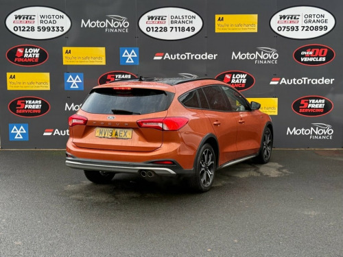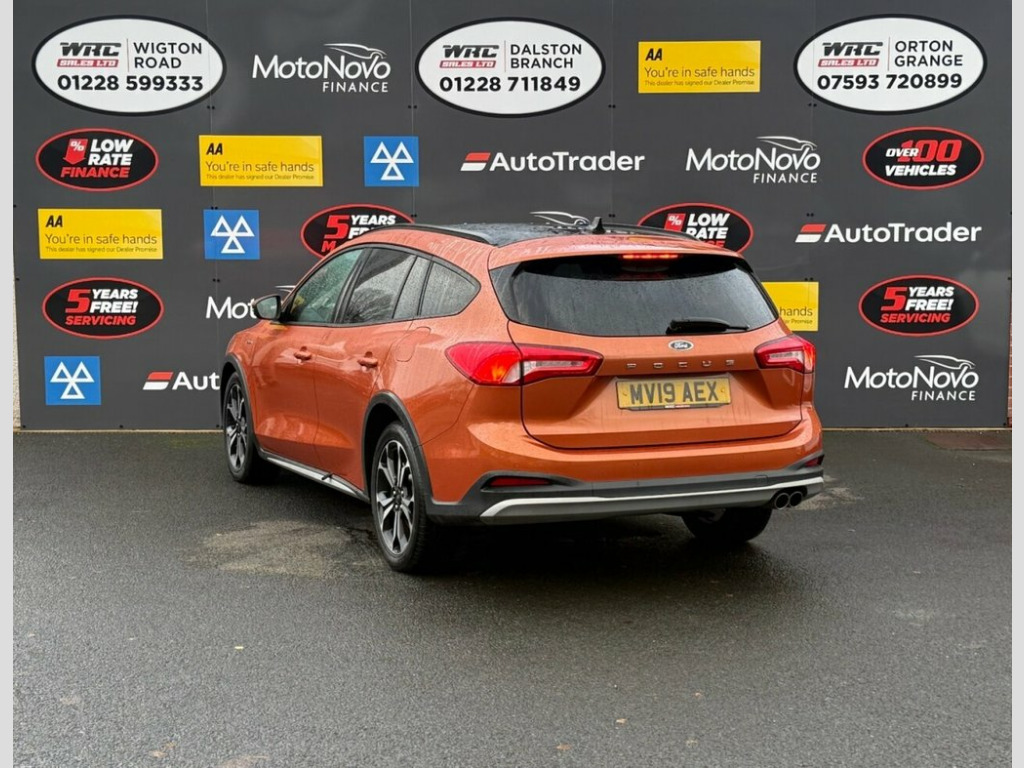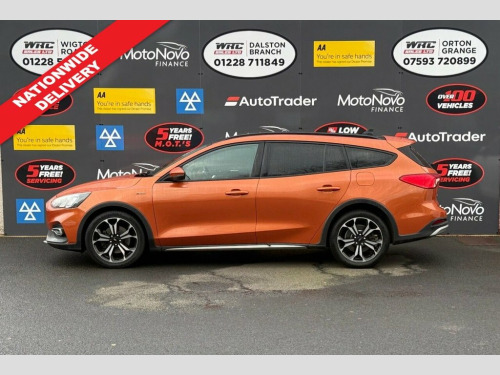 This 2019 Ford Focus T Active X presents a compelling proposition with its remarkably low mileage of just 38,871 miles for its age. As a Euro 6 compliant model, this Focus is equipped with a 1.0 litre petrol engine, offering an impressive fuel economy of 48 miles per gallon. The Active X trim level ensures a well appointed interior, featuring the Ford SYNC3 DAB Navigation System which seamlessly integrates Android Auto, Apple CarPlay, and Bluetooth connectivity. For added convenience and safety, it includes front and rear parking sensors with parking assistance, automatic headlights, and keyless entry. Comfort is further enhanced by the DEATC dual zone electronic automatic temperature control, ensuring a pleasant cabin environment for all occupants. This Focus stands out with its excellent fuel efficiency and low CO2 emissions, indicating a more economical and environmentally conscious driving experience compared to many similar vehicles. The inclusion of advanced features like the SYNC3 system with smartphone integration and the comprehensive parking assistance package significantly enhances both the driving pleasure and practicality of this Focus. Furthermore, the vehicle comes with a 3 month warranty, providing peace of mind for its next owner. 18in Alloy Wheels - 5x2 Spoke - Painted , 2nd Load Floor, 6-Way Power Adjustment Driver Seat, Active Branded Scuff Plates, Active Front and Rear Bumper with Unique, Airbags - Driver and Front Passenger, Airbags - Front Side Impact, Airbags - Front and Rear Side Curtain, Automatic Dimming Rear View Mirror, Centre Console with Armrest, Cruise Control with Speed Limiter, DEATC - Dual-Zone Electronic Automatic T, Door Handles - Body Colour, Door Mirrors - Electrically-operated - H, Electric Parking Brake, Ford SYNC3 DAB Navigation System, FordPass Connect, Front Passenger Airbag Deactivation Swit, Front Seat - Drivers Manual Lumbar Suppo, Front Seats - Driver and Passenger Heate, Front and Rear