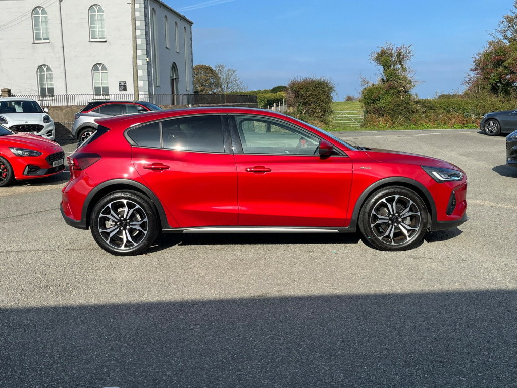 Focus Active X 1.0T 125ps MHEv . Finished in Fantastic Red.Beautiful car with raised, Ground clearance and higher seating position.Very well Specified with Panoramic Roof, Climate Control, Cruise Control, Sat Nav, Bluetooth and HFS.This car is In Superb condition throughout and Excellent value.
