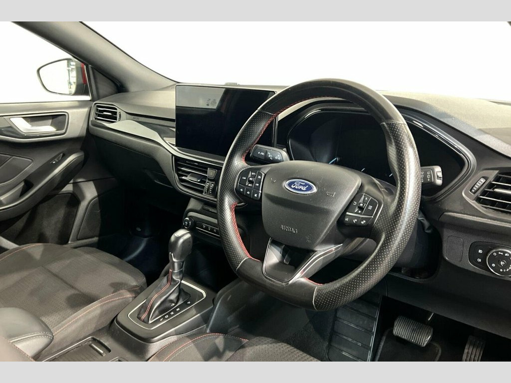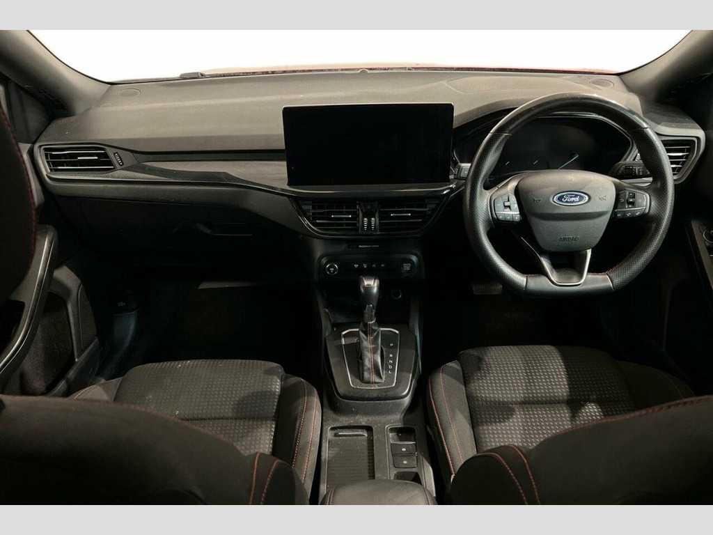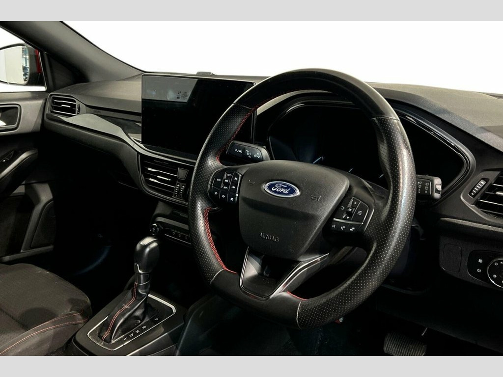 This 2024 Ford Focus ST-Line T is a superb example, having had only one owner since new. This stylish hatchback is powered by an efficient 1.0 litre petrol hybrid engine, meeting Euro 6 emissions standards. It boasts a range of desirable features, including Dual Zone Electronic Air Temperature Control for personalised comfort, and full fixed LED headlights with LED daytime running lights for enhanced visibility. The Ford Key Free System allows for effortless keyless entry and start, while front and rear parking sensors provide confidence when manoeuvring. Inside, you'll find a modern 13.2 inch touchscreen equipped with SYNC 4 Navigation, offering seamless integration with Android Auto and Apple CarPlay. The performance of this Focus ST-Line T is also noteworthy, achieving 0-60mph in a brisk 8.6 seconds. This acceleration figure demonstrates its responsive nature, making it a more engaging drive compared to many other vehicles in its class. The combination of its economical hybrid technology, advanced infotainment system, and dynamic performance makes this Ford Focus a well rounded and appealing choice for any driver. 13.2in Touchscreen with SYNC4 Navigation, 17in Alloy Wheels - 5-Spoke with Rock Me, 4.2in Colour TFT Ice Blue Illumination A, Cloth - Black with Red Stitching, Cruise Control with Adjustable Speed Lim, Door Mirrors - Electrically-Operated - H, Drivers Manual 4-Way Seat Adjustment wit, Dual-Zone Electronic Air Temperature Con, Fantastic Red, Ford Key Free System - Keyless Entry wit, Front Seat - Passenger 2-Way Manual Adju, Full Fixed LED Headlight with LED Daytim, Lane-Keeping Aid with Lane-Keeping Assis, Parking Sensor - Front and Rear, Polished Twin Exhaust Tailpipe, Pre-Collision Assist with Autonomous Eme, Quickclear Heated Windscreen, Rear Lights - LED, Rear Privacy Glass, Selectable Dr