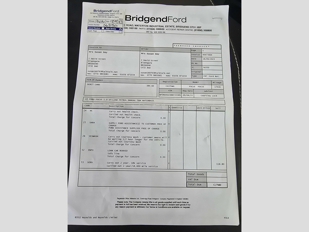 With only one previous owner, this 2022 Ford Focus ST-Line is a great choice. The ST-Line trim complements the stylish Ford Focus, and it is powered by a responsive 1.0L Petrol Hybrid engine, adhering to Euro 6 emission standards.LOOKING FOR FINANCE? Please visit our website to see if you are eligable and use our free finance checker that wont harm your credit scoreEquipped with the Ford Key Free System, keyless entry and start add a touch of convenience to your journeys. The DEATC dual-zone electronic automatic temperature control, including climate control, ensures a comfortable environment for both driver and passengers. Automatic on-off headlights and full fixed LED headlights with LED daytime running lights enhance visibility and safety. The Ford SYNC4 Navigation system, featuring a 13.2in touchscreen with Android Auto and Apple CarPlay, keeps you connected and entertained on the road.The large boot space makes this vehicle more practical than similar vehicles, offering ample room for luggage, shopping, or equipment. Furthermore, acceleration from 0-62mph in 9.0 seconds means that this vehicle is more responsive than other similar vehicles.. 17in Alloy Wheels - 5-Spoke - Rock Metallic, 4.2in Colour TFT Ice Blue Illumination Analogue Cluster with Trip Computer, ABS - Anti-lock Braking System, Acoustic Laminated Windscreen, Airbags - Driver and Front Passenger, Airbags - Front Side Impact, Airbags - Front and Rear Side Curtain, Automatic Dimming Rear View Mirror, Black Finish on Upper Door Line, Centre Console - Premium with Sliding Armrest - Cupholder with Sliding Cover - 12V Front Power Point, Child Proof Rear Door Locks, Courtesy Light - Ambient LED Courtesy Lighting, Cruise Control with Adjustable Speed Limiter, DEATC - Dual-Zone Electronic Automatic Temperature Control, Door Handles - Body Colour, Door Mirrors - Electrically-Operated - Heated - Power-Foldable - Puddle Lights - Side Indicators, EBA - Emergency Brake Assist, ESC - Electronic Stability Control, Electric Parking Brake, Floor Mats - Front Velour, Fog Light Bezel - Unique ST-Line, Ford Easy Fuel System, Ford Key Free System - Keyless Entry with Keyless Start, Ford SYNC4 Navigation with 13.2in Touchscreen, FordPass Connect, Front Bumper - Unique ST-Line - Body Colour Upper - Body Colour Extension, Front Passenger Airbag Deactivation Switch, Front Seat - Passenger 2-Way Manual Adjustment, Front Seatback Map Pockets - Driver and Passenger, Front Seats - Sports Style V-shape with High Bolster, Front and Rear Seatbelt Minder, Full Fixed LED Headlight with LED Daytime Running Lights, Gearshift Knob - ST-Line Aluminium, Headlight Bezel - Black, Headlights - Automatic On-Off, Hill Start Assist, Intelligent Speed Assistance, LED Front Fog Lights with Cornering Function, Lane-Keeping Aid with Lane-Keeping Assist, Large Rear Spoiler - Body Colour with Centre High Mounted Stop Light, Load Compartment Area Cover, Load Floor Carpet, Locking Wheel Nuts, MyKey, Overhead Console - Medium Length with Front and Rear LED Courtesy Lights, Parking Sensor - Front and Rear, Polished Twin Tailpipe, Power Steering, Pre-Collision Assist with Autonomous Emergency Braking and Pedestrian-Cyclist Detection, Quickclear Heated Windscreen, Rain Sensitive Windshield Wipers, Rear Bumper - Unique ST-Line Body Colour with Body Colour Extension, Rear Fog Lamps, Rear Lights - LED, Rear Privacy Glass, Rear Seat - 60-40 Split Folding Seats, Rear Seat Fixed Cushion, Remote Central Locking and Engine Immobiliser, Remote Central-Double Locking, ST-Line Badge, Seats - Drivers 4-Way Manual Adjustment, Seats - ISOFIX Mounting Provision for Child Seats, Selectable Drive Mode, Side Skirts - Unique Sport - Body Colour, Spare Wheel - Mini Steel, Sports Tuned Suspension, Steering Column - Rake and Reach Adjustment, Steering Wheel - 3-Spoke Sensico Trimmed with Integrated Audio Controls, Tailgate Wash-Wipe, Thatcham Category Alarm with Power Door Deadlocks, Traction Control - TC, Trailer Sway Control, Trip Computer, Tyre Pressure Monitoring System, Unique ST-Line Grille and Full Bodystyling Kit - Large Body Coloured Rear Spoiler, Windows - Electrically Operated Front and Rear with One Touch Opening and Closing, Cloth - Black with Red Stitching.