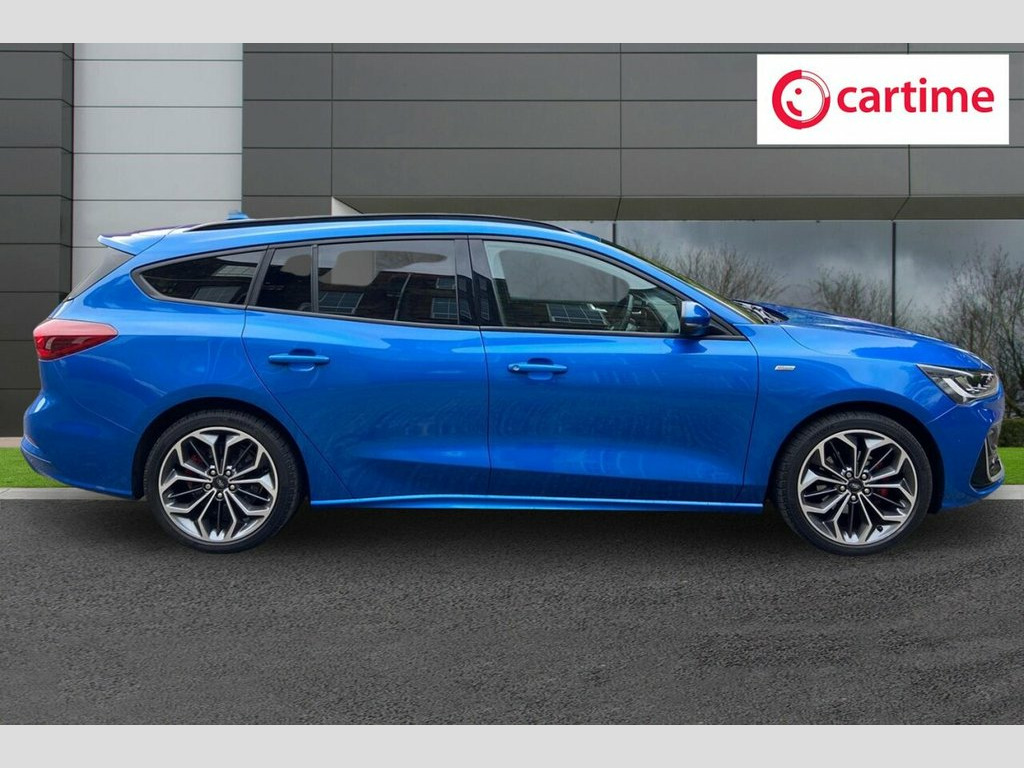 This 2022 Ford Focus ST-Line Vignale is a superb example, having had only one owner from new and boasting an MOT valid until July 2026. Powered by an efficient 1.0L Petrol Hybrid engine and meeting Euro 6 emissions standards, this Focus offers a refined driving experience. Inside, you'll find the advanced Ford SYNC4 Navigation system featuring a generous 13.2-inch touchscreen, complete with Android Auto and Apple CarPlay integration, all delivered through a premium branded sound system. The car also benefits from automatic on-off headlights and full fixed LED headlights with distinctive LED daytime running lights. Further enhancing comfort and convenience, this ST-Line Vignale includes the desirable Winter Pack, providing heated seats and a heated steering wheel, perfect for colder months. The DEATC dual-zone electronic automatic temperature control ensures a pleasant cabin environment for all occupants. These features, combined with the sophisticated ST-Line Vignale trim, position this Ford Focus as a superior choice compared to other vehicles in its class, offering a blend of technology, comfort, and efficiency. 18in Alloy Wheels - 5x3 Spoke - High Glo, ABS - Anti-lock Braking System, Acoustic Laminated Windscreen, Airbags - Driver and Front Passenger, Airbags - Front and Rear Side Curtain, Airbags - Front Side Impact, Automatic Dimming Rear View Mirror, Black Finish on Upper Door Line, Centre Console - Premium with Sliding Ar, Courtesy Light - Ambient LED Courtesy Li, Cruise Control with Adjustable Speed Lim, DEATC - Dual-Zone Electronic Automatic T, Desert Island Blue, Door Handles - Body Colour, Door Mirrors - Electrically-Operated - H, Easy Stow Tonneau Cover, EBA - Emergency Brake Assist, Electric Parking Brake, ESC - Electronic Stability Control, Fog Light Bezel - Unique ST-Line, Ford Easy Fue