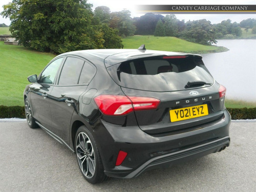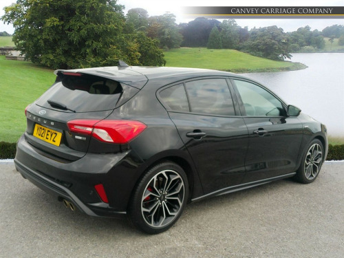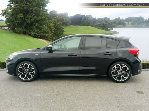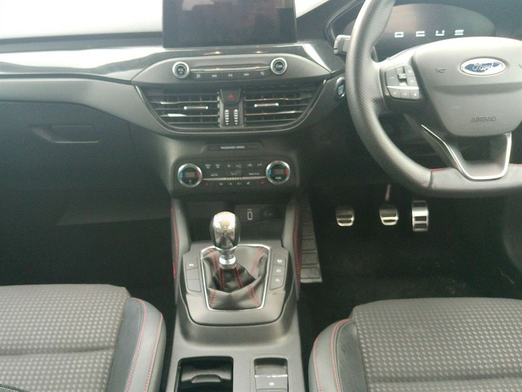 This 2021 Ford Focus ST-Line X Edition offers a compelling blend of sporty design and advanced technology. Powered by an efficient 1.0 litre petrol engine, this Euro 6 compliant model delivers an impressive 0-62mph in just 9.2 seconds. Inside, you'll find a host of desirable features designed for comfort and convenience, including a heated steering wheel, dual-zone electronic automatic temperature control, and heated front seats for both driver and passenger. The Ford SYNC3 DAB Navigation System seamlessly integrates with Android Auto and Apple CarPlay, while Bluetooth connectivity keeps you connected on the go. Plus, with wireless charging, keeping your devices powered up is effortless. Experience exceptional efficiency with a highlight fuel economy of 54 mpg, making this Focus an economical choice for your daily journeys. Its low CO2 emissions also contribute to a more environmentally conscious drive. Beyond its performance and efficiency, this ST-Line X Edition boasts a large boot space, offering ample room for shopping, luggage, or sports equipment. These highlights demonstrate how this Ford Focus stands out, providing a superior driving experience with its combination of performance, comfort, and practicality. 12.3in Digital Cluster,18in Alloy Wheels - 5x2 Spoke - Matt Black - Machined Finish,ABS - Anti-lock Braking System,Acoustic Laminated Windscreen,Airbags - Driver and Front Passenger,Airbags - Front Side Impact,Airbags - Front and Rear Side Curtain,Alarm - Thatcham Category 1 with Volume Sensing and Perimeter,Alloy Finish Pedals,Automatic Dimming Rear View Mirror,Black Finish on Upper Door Line,Centre Console - Premium with Sliding Armrest - Cupholder with Sliding Cover - 12V Front Power Point,Cruise Control with Speed Limiter,DEATC - Dual-Zone Electronic Automatic Temperature Control,Dark Headliner,Door Handles - Body Colour,Door Mirrors - Electrically-operated - Heated - Power-Foldable - Body Colour Housings - Side Indicators - Puddle Lights,ESC - Electronic Stability Control,Electric Parking Brake,Fixed LED Headlamps,Flat Bottomed Steering Wheel with Red Stitching,Fog Light Bezel - Unique ST-Line,Ford Easy Fuel System,Ford Key Free System - Keyless Entry with Keyless Start,Ford SYNC3 DAB Navigation System,FordPass Connect,Front Bumper - Unique ST-Line - Body Colour Upper - Body Colour Extension,Front Lower Grille - Black Mesh,Front Passenger Airbag Deactivation Switch,Front Passenger Seat - Rotary Recliner,Front Seat - Drivers Electrically-Operated Lumbar Support Adjustment,Front Seat - Drivers Power Height - Fore-Aft - Power Recliner and Lumbar Seat Support,Front Seat - Passenger Manual Height - Lumbar and Fore-Aft Adjustment,Front Seat - Passengers Manual Lumbar Support Adjustment,Front Seatback Map Pockets - Driver and Passenger,Front Seats - Driver and Passenger Heated Seats,Front Seats - Sports Style V-shape with High Bolster,Front Upper Grille - Black Mesh with Black Surround,Front and Rear Floor Mats with Red Stitching,Front and Rear Seatbelt Minder,Gearshift Knob - ST-Line Aluminium,Headlight Bezel - Black,Headlights - Automatic On-Off,Heated Steering Wheel,Hill Start Assist,Intelligent Speed Assistance,LED Daytime Running Lights,LED Front Fog Lights with Cornering Function,Lane Keeping Aid with Lane Departure Warning,Large Rear Spoiler - Body Colour with Centre High Mounted Stop Light,Load Compartment Area Cover,Load Floor Carpet,Locking Wheel Nuts,MyKey,Overhead Console - Medium Length with Front and Rear LED Courtesy Lights,Parking Sensor - Front and Rear,Polished Twin Tailpipe,Post Collision Braking,Power Rear Door Child Locks,Power Steering,Pre-Collision Assist with Autonomous Emergency Braking and Pedestrian-Cyclist Detection,Quickclear Heated Windscreen,Rain Sensitive Windshield Wipers,Rear Bumper - Unique ST-Line Body Colour with Body Colour Extension,Rear Centre Headrest,Rear Fog Lamps,Rear Privacy Glass,Rear Seat - 60-40 Split Folding Seats,Rear Seat Fixed Cushion,Red Brake Calipers,Remote Central Locking and Engine Immobiliser,ST-Line Badge,Scuff Plates - Front Polished Stainless Steel with Etched ST-Line Logo,Seats - ISOFIX Mounting Provision for Child Seats,Selectable Drive Mode,Side Skirts - Unique ST-Line Body Colour,Soft Console Knee Pads with Red Stitching,Spare Wheel - Mini Steel,Sports Tuned Suspension,Steering Column - Rake and Reach Adjustment,Steering Wheel - 3-Spoke - Leather Trimmed,Tailgate Wash-Wipe,Traction Control - TC,Trip Computer,Tyre Pressure Monitoring System,Unique Door and Instrument Panel Inserts,Unique ST-Line Upper and Lower Grille and Full Bodystyling Kit and ST-Line Wing Badges,Windows - Electrically Operated Front and Rear with One Touch Opening and Closing,Wireless Charging