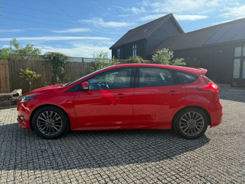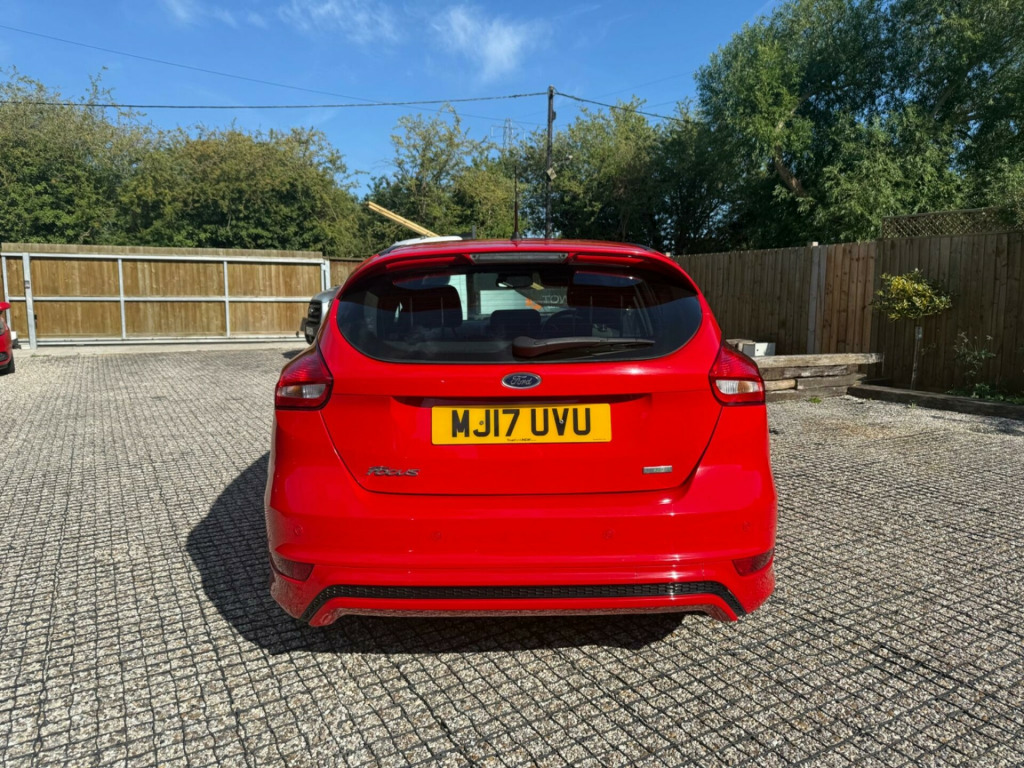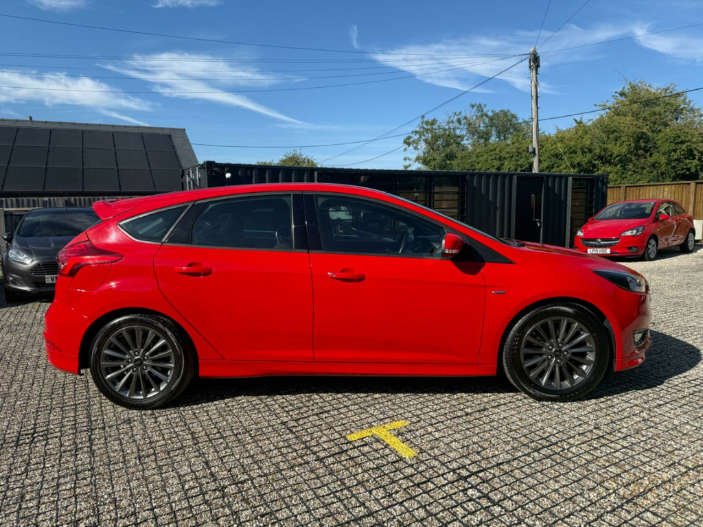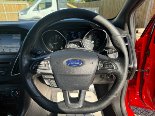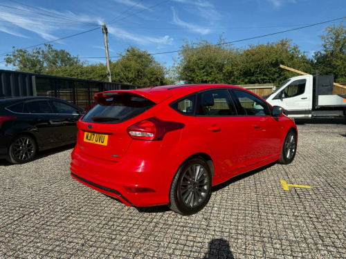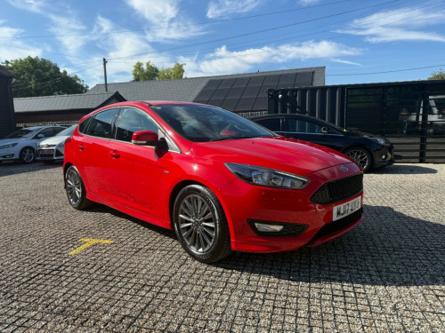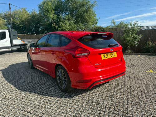TCH Automotive Presents This Lovely Example Of A Ford Focus 1.0T EcoBoost ST-Line Auto, Full Service History, Recent Wetbelt Change, Very Very Clean Example, M.O.T Until Feb 2026, 1 Key, Apple/Android CarPlay, USB Connectivity, 4 Good Tyres. With only 59140 miles on the clock, this 2017 Ford Focus is a great option. As a ST-Line variant with the ST-Line trim, it features a 1.0L petrol engine and meets Euro 6 emission standards. The car is equipped with rear parking sensors, including parking assistance with a rear sensor, and HPAS hydraulic power-assisted steering. The stylish 18in alloy wheels in ST-Line Rock Metallic, paddle shifters, and cruise control with active speed limiter add to the driving experience.One of the car's key advantages is its large boot space, making it more practical than similar vehicles. The Ford Focus combines sporty design elements with everyday usability, making it a well-rounded choice for various needs ar parking sensors, 18in alloy wheels - st-line - rock metallic, 17in alloy wheels - 5-spoke with rock metallic finish, 8in tft touchscreen with ford sync2, airbags - driver and front passenger, airbags - front side impact, airbags - front and rear side curtain, alarm - thatcham category 1 with volume sensing and perimeter, anti-lock braking system - abs - with electronic brake-force distribution, black exterior trim detailing, body colour large rear spoiler and side skirts, body coloured front styling kit with centre aero foil, chrome finish on upper door line, colour tft instrument cluster display, courtesy light - front and rear passengers - overhead halogen and load compartment, cruise control with active speed limiter, drivers seat lumbar adjust, electric windows - front with one touch on drivers side, emergency brake warning, enhanced electronic stability control - esc with traction control - emergency brake assist - eba - hill start assist - hsa and trailer sway control, ford easy-fuel capless refuelling system, ford eco mode - driver information system, ford power starter button, ford radio-cd with 4.2 tft display, front floor mats, front fog lights, front grille - chrome, front seat - passengers manual fore-aft adjustment, gearshift knob - leather, hpas - hydraulic power assisted steering, halogen headlights with black surround, headlights - adaptive, headliner - black, hill start assist, ips - intelligent protection system, interior door lever - chrome finish, keyless start, led daytime running lights, leather-trimmed handbrake, locking wheel nuts, mykey, paddle shifters with cruise control, premium centre console - sliding armrest, quickclear heated windscreen, rear bumper with integral body coloured diffuser and honeycomb mesh in high-gloss black, rear seat - 60-40 split back and cushion, remote central locking, st line stainless steel scuff plates, seats - drivers manual height and fore-aft adjustment, seats - isofix mounting brackets for child seats, spare wheel - mini steel, sports style front seats - inidividual red stitching, sports style pedals - gear knob and steering wheel, steering column - rake and reach adjustment, steering wheel - leather-trimmed, suspension - sports, tvc - torque vectoring control, trip computer, tyre pressure monitoring system, upper and lower grille - high gloss black honeycomb design, wipers - standard with 6 speed interval settings