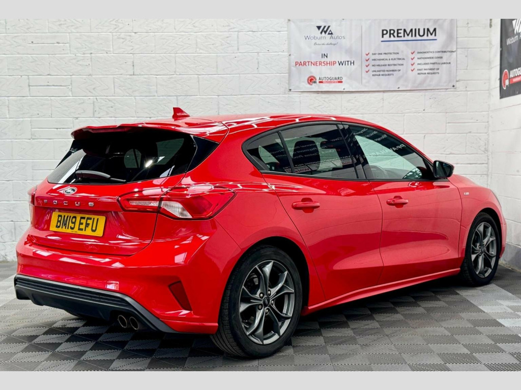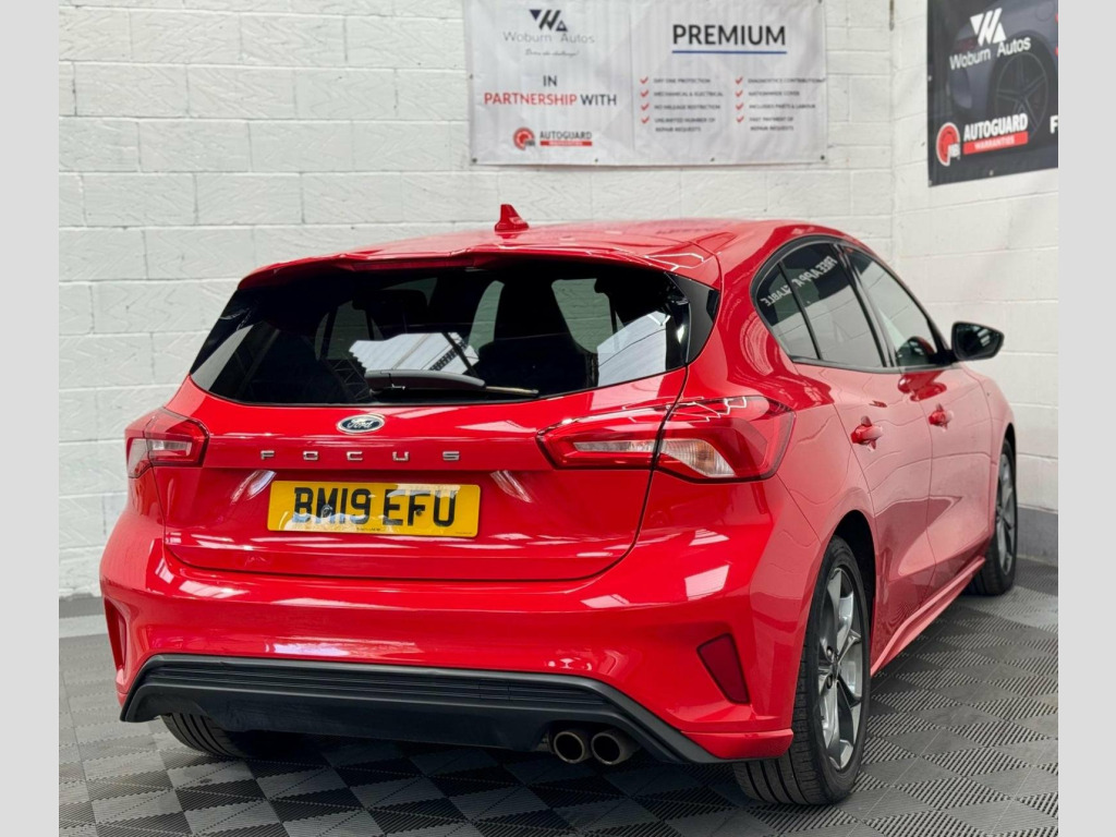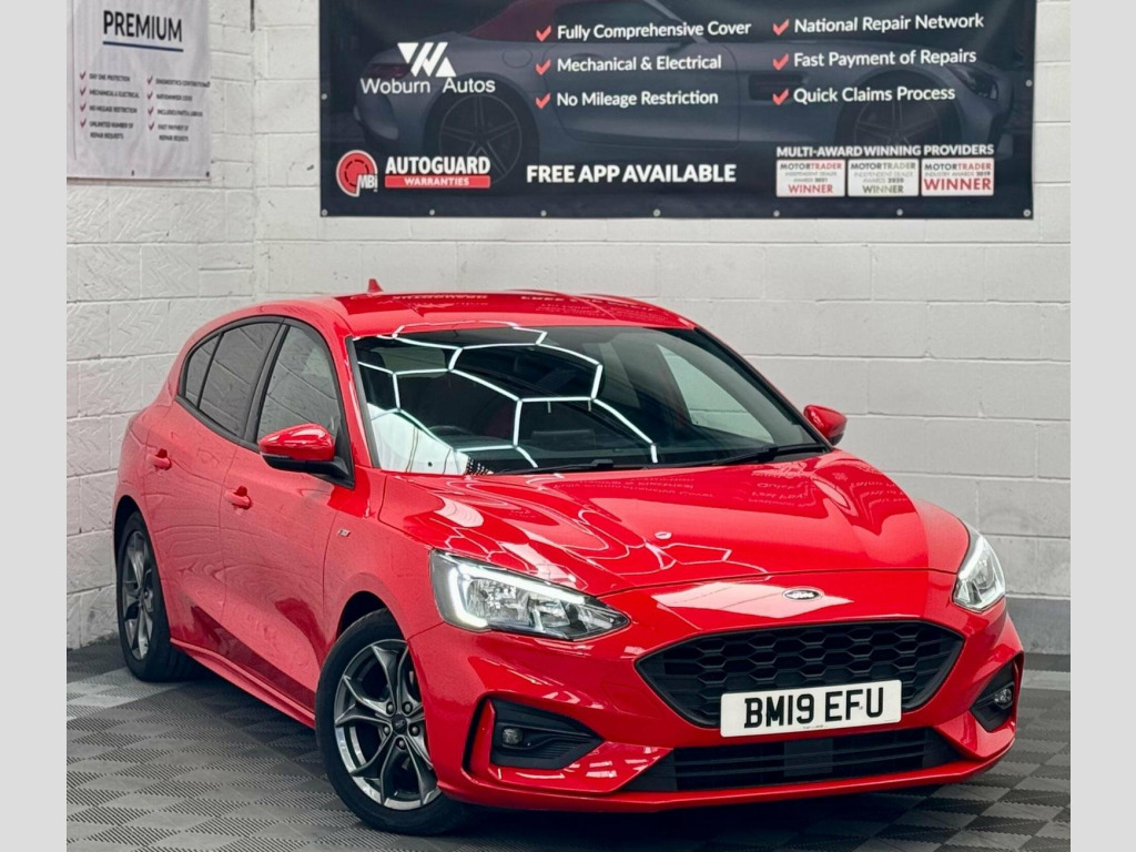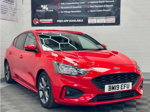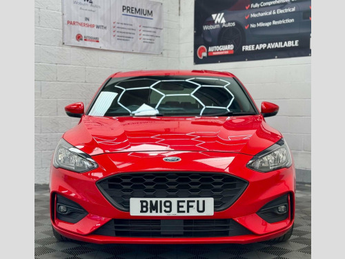 The Ford Focus ST-Line, registered in 2019, combines practicality with sporty aesthetics. This model features a responsive 1.0L petrol engine and benefits from the Euro 6 emission class. , This Focus stands out with its large boot space, offering ample room for luggage, shopping, or equipment. The low CO2 emissions mean its kinder to the environment and potentially cheaper to run than similar vehicles. Acceleration from 0-62mph in 10.0 seconds makes it a capable and enjoyable car for both city driving and longer journeys. , HPI CLEAR,2 KEYS, FINANCE AVAILABLE WITH £0 DEPOSIT AT COMPETITIVE RATES, PLEASE VISIT WWW.woburnautos.co.uk or CALL 01525868505, EXTENDED WARRANTY AVAILABLE ON ALL OUR CARS (3, 6, 12, 18, 24) , COMES WITH PREMIUM 3 MONTHS WARRANTY, MOT VALID TILL 25/03/2026 , GOOD SERVICE HISTORY WITH 2 MAIN DEALER STAMPS, RECENT SERVICE AT 53k,APPLE CAR PLAY,ANDROID AUTO,INBUILT SATELLITE NAVIGATION,FORD SYNC,LANE ASSIST,CRUISE CONTROL,DAB DIGITAL RADIO,PRIVACY GLASS. SMOOTH ENGINE AND GEARBOX, CLEAN BODYWORK AS OF ITS AGE, CLEAN INTERIOR, CLEAN ALLOYS WITH GOOD TYRES, VIEWING RECOMMENDED, PART EX WELCOME, —————————————— WOBURN AUTOS IS TRUSTED AND LEADING USED CAR DEALERSHIP IN LEIGHTON BUZZARD. OUR VEHICLES ARE SUITABLE FOR ALL OUR CUSTOMERS NEEDS. FOR MORE INFO AND TO VIEW OUR STOCK PLEASE VISIT OUR WEBSITE WWW.WOBURNAUTOS.CO.UK —————————————— OUR WORKING HOURS ARE MONDAY TO SATURDAY 10AM TO 6PM AND ON SUNDAY 10AM TO 4:00PM. —————————————SOCIAL DISTANCING IN PRACTICE, BY APPOINTMENT ONLY, ACCEPT ALL DEBIT/CREDIT CARDS, p/x welcome