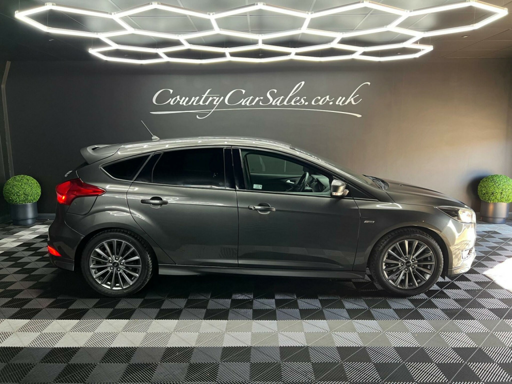 2 OWNERS... 2 KEYS...SERVICE HISTORY...SAT NAV...DAB RADIO...CRUISE CONTROL.. ..WE INCLUDE 15 MONTHS PLATINUM WARRANTY ON THIS CAR FREE OF CHARGE.....FREE 12 MONTHS A.A ROADSIDE RECOVERY......90 POINT CHECK ON EVERY CAR.....BUY WITH CONFIDENCE..... OPEN 7 DAYS A WEEK...*** SCROLL DOWN TO MAKE A QUICK AND EASY ONLINE FINANCE APPLICATION***EMAIL [email protected] or call 01707 377 200. 17in Alloy Wheels - Rock Metallic Finish, Air Conditioning - Manual, Airbags - Driver and Front Passenger, Airbags - Front Side Impact, Airbags - Front and Rear Side Curtain, Alarm - Thatcham Category 1 with Volume Sensing and Perimeter, Anti-Lock Braking System - ABS with Electronic Brake Force Distribution - EBD, Black Exterior Trim Detailing including Upper Door Line and Headlamp Surround, Body Colour Large Rear Spoiler and Side Skirts, Body Coloured Front Styling Kit with Centre Aero Foil, Centre Console - Premium with Sliding Armrest - Covered Stowage Bins, Colour TFT Instrument Cluster Display, Courtesy Light - Front and Rear Passengers - Overhead Halogen and Load Compartment, Door Mirrors - Heated - Electric - Integrated Side Indicators - Body Coloured, Drivers Seat Lumbar Adjust, EPAS - Electric Power Assisted Steering, Electronic Stability Programme - ESP - with Traction Control and Emergency Brake Assist - EBA, Emergency Brake Warning - Automatic Hazard Warning Lights, Ford Easy-Fuel Capless Refuelling System, Ford Eco Mode - Driver Information System, Ford Power Starter Button, Ford SYNC3 DAB Navigation System, Front Floor Mats, Front Fog Lights, Front Seat - Drivers Manual Height and Fore-Aft Adjustment, Front Seat - Passenger Manual Fore-Aft Adjustment, Front Seats - Sports Style, Front Suspension - Independent with MacPherson Struts and Anti-Roll Bar, Gearshift Knob - Leather, Halogen Headlights with Black Surround, Headlights - Courtesy Delay, Headliner - Black Woven, Hill Start Assist, IPS - Intelligent Protection System, Keyless Start, LED Daytime Running Lights, Leather-Trimmed Handbrake, Locking Wheel Nuts, MyKey, Quickclear Heated Front Windscreen with Heated Washer Jets, Rear Bumper with Integral Body Coloured Diffuser and Honeycomb Mesh in High-Gloss Black, Rear Lights - LED, Rear Suspension - Independent Control Blade Multi-Link System and Anti-Roll Bar, Remote Central-Double Locking, ST Line Stainless Steel Scuff Plates, SYNC3 with 8in Touchscreen DAB Audio System, Seats - ISOFIX Mounting Provision for Child Seats, Spare Wheel - Mini Steel, Sports Style Pedals - Gear Knob and Steering Wheel, Steering Column - Rake and Reach Adjustment, Steering Wheel - 3-spoke Flat Bottom - Leather Trimmed, Suspension - Sports, TVC - Torque Vectoring Control, Trip Computer, Tyre Pressure Monitoring System, Upper and Lower Grille - High Gloss Black Honeycomb Design, Windows - Electrically Operated Front with One Touch Lowering on Drivers Side, Wipers - Standard with 6 Speed Interval Settings, Active City Stop, 18in Alloy Wheels - ST-Line - Rock Metallic, Convenience Pack.