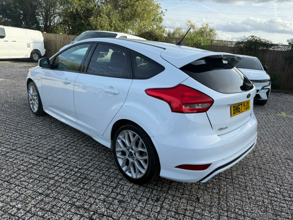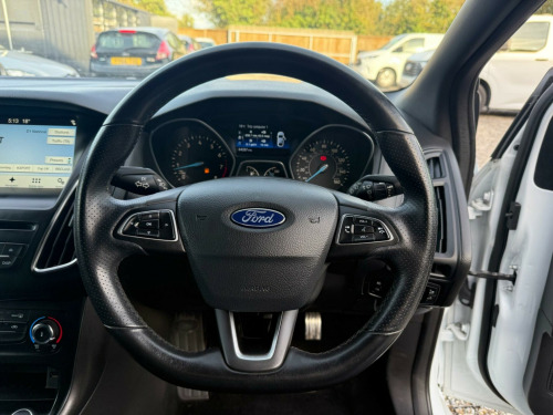 TCH Automotive Presents This Lovely Example Of A Ford Focus 1.0T EcoBoost ST-Line, Full Service History, Recent Service And Wetbelt Change, Will Come With A Fresh 1 Years M.O.T, 2 Keys, Apple/Android Car Play, Bluetooth Handsfree, USB Connectivity, Very Clean Inside And Out, 4 Good Tyres, This Car Doesn't Want For Anything.Discover this 2017 Ford Focus ST Line, a well maintained example ready for its next owner. This popular hatchback is powered by an efficient 1.0 litre petrol engine, meeting Euro 6 emissions standards. Inside, you'll find manual air conditioning for your comfort, complemented by rear privacy glass for added style and seclusion.This Ford Focus ST Line offers impressive fuel economy, achieving up to 60 miles per gallon, which is excellent for its class. It also boasts a generous boot space, making it a practical choice for families or those who need extra room for luggage. Furthermore, its low CO2 emissions indicate a more environmentally friendly performance compared to many other vehicles. ar privacy glass, view cloth - charcoal black with red stitching, 17in alloy wheels - 5-spoke with rock metallic finish, air conditioning - manual, alarm - thatcham category 1 with volume sensing and perimeter, black exterior trim detailing including upper door line and headlamp surround, body colour large rear spoiler and side skirts, body coloured front styling kit with centre aero foil, brake warning lights - automatic flashing of brake lights under heavy braking, centre console, colour tft instrument cluster display, courtesy light - front and rear passengers - overhead halogen and load compartment, door mirrors - heated - electric - integrated side indicators - body coloured, epas - electric power assisted steering, electronic stability programme - esp - with traction control and emergency brake assist - eba, ford easy-fuel capless refuelling system, ford eco mode - driver information system, ford power start button, front floor mats, front fog lights, front seat - drivers manual height and fore-aft adjustment, front seat - drivers manual lumbar support adjustment, front seat - passenger manual fore-aft adjustment, front seats - sports style, front suspension - independent with macpherson struts and anti-roll bar, gearshift knob - leather, halogen headlights with black surround, headlights - led daytime running lights, headliner - black woven, ips - intelligent protection system, interior door lever - chrome finish, leather-trimmed handbrake, locking wheel nuts, mykey, quickclear heated front windscreen with heated washer jets, rear bumper with integral body coloured diffuser and honeycomb mesh in high-gloss black, rear lights - led, rear seat - 60-40 split back and cushion, rear suspension - independent control blade multi-link system and anti-roll bar, remote central-double locking, sync3 with 8in touchscreen dab audio system, scuff plates - front stainless steel finish with st-line logo, spare wheel - mini steel, sports style pedals - gear knob and steering wheel, steering column - rake and reach adjustment, steering wheel - 3 spoke - leather trimmed, suspension - sports, tvc - torque vectoring control, trip computer, tyre pressure monitoring system, upper and lower grille - high gloss black honeycomb design, windows - electrically operated front with one touch lowering on drivers side, wipers - standard with 6 speed interval settings