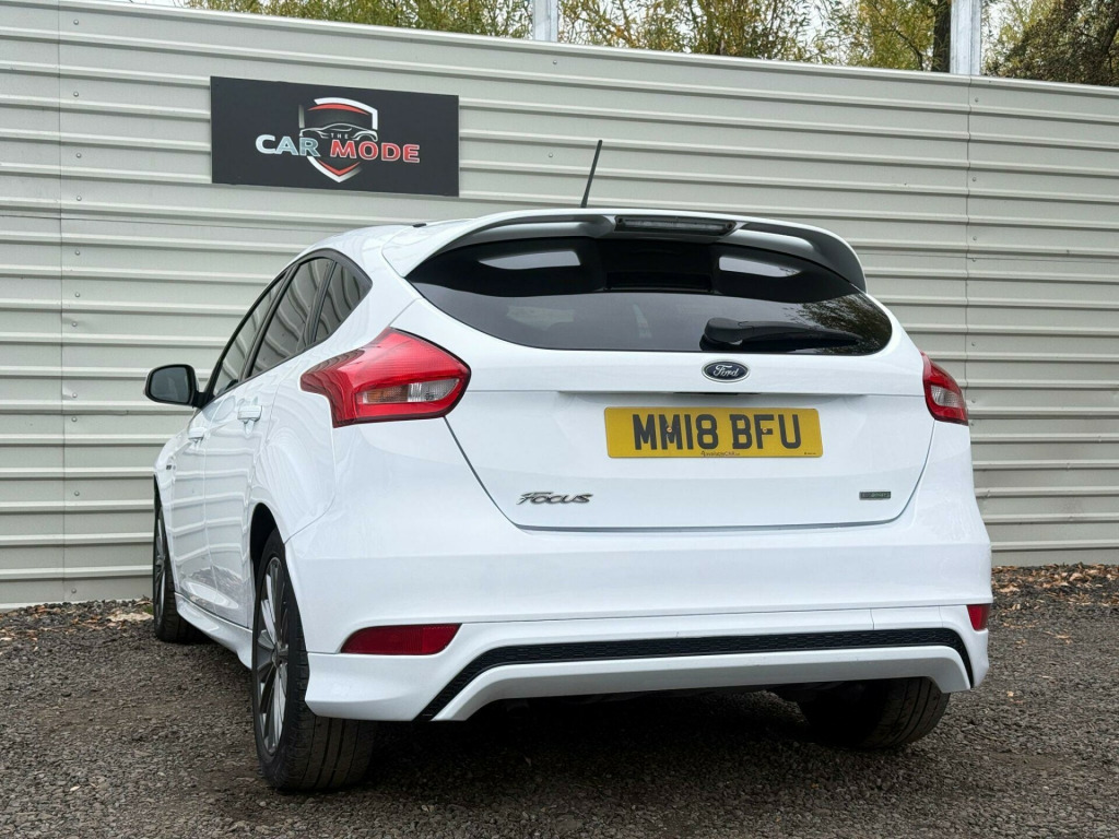 This 2018 Ford Focus ST-Line T offers an impressive fuel economy of 58 miles per gallon, making it a sensible choice for your motoring needs. This particular model is a 1.0 litre petrol variant, adhering to the Euro 6 emission standards. Inside, you'll find manual air conditioning to keep you comfortable in all conditions. The Focus ST-Line T also boasts a generous boot space, perfect for accommodating luggage or shopping.When considering performance and efficiency, this Ford Focus ST-Line T stands out. Its acceleration from 0 to 62 miles per hour in just 10.4 seconds provides a responsive driving experience. Furthermore, its low CO2 emissions indicate a more environmentally conscious performance compared to many other vehicles in its class.3 Months Warranty* 12 Months AA Breakdown Cover* Minimum 6 Months MOT* Minimum 6 Months Service**************************, Good example, Looks and Drives Beautiful, Full History Check Available, Comes with Long MOT, ULEZ Free, ****************************Finance Available * Contact 07387474745. 12 Months AA Breakdown Included, Minimum 6 Months MOT (Not All vehicles Applicable*) Admin Charge may Apply, Viewings Welcome Till Late.Warranty And Delivery Available. Part Exchange Considered. Please note,Customer Are Requested To Check The Car Specification, Advert description & Mileage With A Sales Person Prior To The Purchase. in alloy wheels - rock metallic finish, air conditioning - manual, airbags - driver and front passenger, airbags - front side impact, airbags - front and rear side curtain, alarm - thatcham category 1 with volume sensing and perimeter, anti-lock braking system - abs with electronic brake force distribution - ebd, black exterior trim detailing including upper door line and headlamp surround, body colour large rear spoiler and side skirts, body coloured front styling kit with centre aero foil, centre console - premium with sliding armrest - covered stowage bins, colour tft instrument cluster display, courtesy light - front and rear passengers - overhead halogen and load compartment, door mirrors - heated - electric - integrated side indicators - body coloured, drivers seat lumbar adjust, epas - electric power assisted steering, electronic stability programme - esp - with traction control and emergency brake assist - eba, emergency brake warning - automatic hazard warning lights, ford easy-fuel capless refuelling system, ford eco mode - driver information system, ford power starter button, ford sync3 dab navigation system, front floor mats, front fog lights, front seat - drivers manual height and fore-aft adjustment, front seat - passenger manual fore-aft adjustment, front seats - sports style, front suspension - independent with macpherson struts and anti-roll bar, gearshift knob - leather, halogen headlights with black surround, headlights - courtesy delay, headliner - black woven, hill start assist, ips - intelligent protection system, keyless start, led daytime running lights, leather-trimmed handbrake, locking wheel nuts, mykey, quickclear heated front windscreen with heated washer jets, rear bumper with integral body coloured diffuser and honeycomb mesh in high-gloss black, rear lights - led, rear suspension - independent control blade multi-link system and anti-roll bar, remote central-double locking, st line stainless steel scuff plates, sync3 with 8in touchscreen dab audio system, seats - isofix mounting provision for child seats, spare wheel - mini steel, sports style pedals - gear knob and steering wheel, steering column - rake and reach adjustment, steering wheel - 3-spoke flat bottom - leather trimmed, suspension - sports, tvc - torque vectoring control, trip computer, tyre pressure monitoring system, upper and lower grille - high gloss black honeycomb design, windows - electrically operated front with one touch lowering on drivers side, wipers - standard with 6 speed interval settings