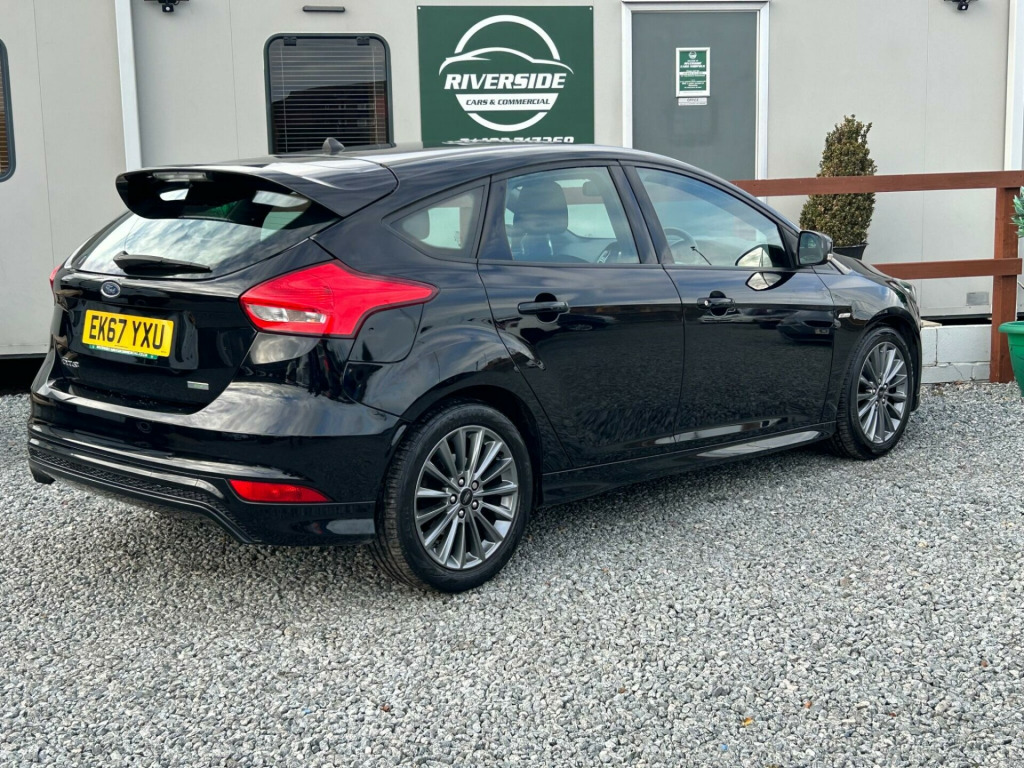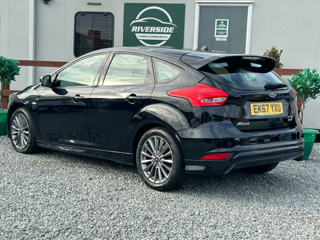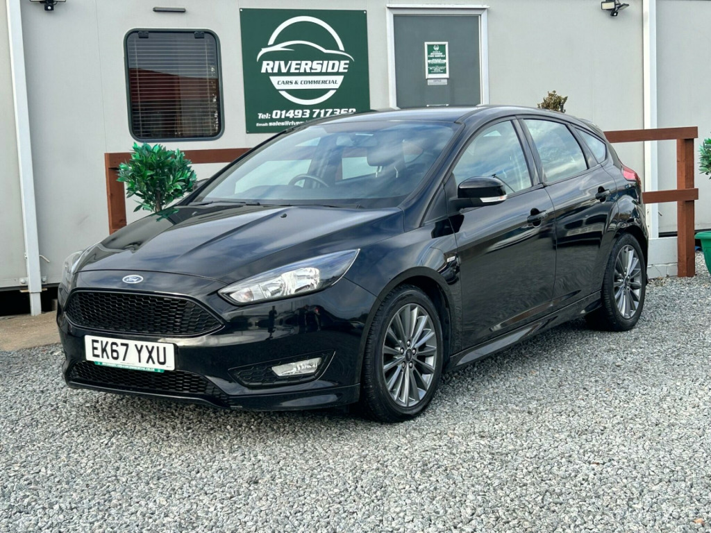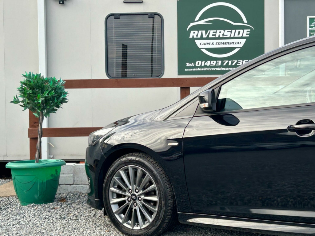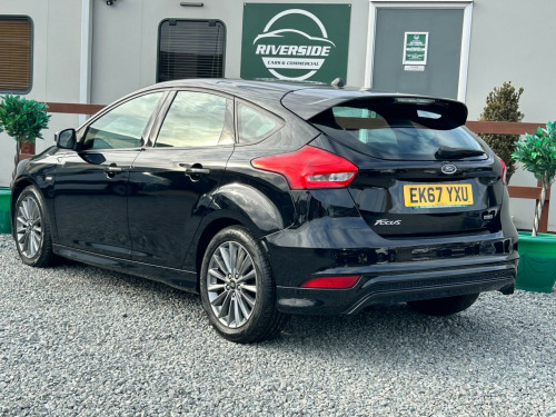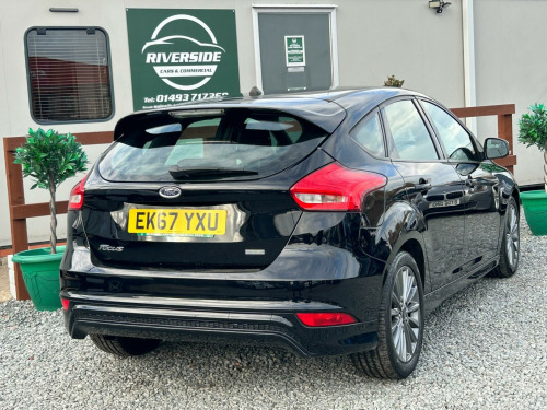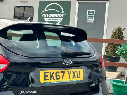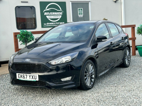 Finished In Black 2017 Ford Focus T ST Line, a well presented example ready for its next owner. This model boasts a 1.0 litre petrol engine and meets Euro 6 emissions standards, making it a sensible choice. Inside, you'll find manual air conditioning to keep you comfortable whatever the weather. This Ford Focus offers impressive fuel economy, achieving up to 60 miles per gallon, which is excellent for its class and indicates a more economical driving experience compared to many similar vehicles. You'll also appreciate the generous boot space, perfect for shopping trips or luggage. Furthermore, its low CO2 emissions highlight its efficiency and environmental consideration.At Riverside Cars & Commercial all our customers have the added peace of mind that all our vehicles are supplied with the following, pre delivery inspection, mot, sales service & 1 months parts & labour warranty for total peace of mind. We also have our own workshop facilities on site with use of free courtesy cars available. Part exchange welcome & finance available. We offer both PCP and Hire Purchase agreements, please call us for a free quotation or more information. All of our vehicles have vast specifications, in most cases, far to much too list, so please always check the vehicles exact specification prior to purchase. We always have at least 50 vehicles in stock to choose from. For a personalised walk round video or more information please call Tel : 01493 717369 or visit www.riversidecarsandcommercial.co.uk, in alloy wheels - 5-spoke with rock metallic finish, air conditioning - manual, alarm - thatcham category 1 with volume sensing and perimeter, black exterior trim detailing including upper door line and headlamp surround, body colour large rear spoiler and side skirts, body coloured front styling kit with centre aero foil, brake warning lights - automatic flashing of brake lights under heavy braking, centre console, colour tft instrument cluster display, courtesy light - front and rear passengers - overhead halogen and load compartment, door mirrors - heated - electric - integrated side indicators - body coloured, epas - electric power assisted steering, electronic stability programme - esp - with traction control and emergency brake assist - eba, ford easy-fuel capless refuelling system, ford eco mode - driver information system, ford power start button, front floor mats, front fog lights, front seat - drivers manual height and fore-aft adjustment, front seat - drivers manual lumbar support adjustment, front seat - passenger manual fore-aft adjustment, front seats - sports style, front suspension - independent with macpherson struts and anti-roll bar, gearshift knob - leather, halogen headlights with black surround, headlights - led daytime running lights, headliner - black woven, ips - intelligent protection system, interior door lever - chrome finish, leather-trimmed handbrake, locking wheel nuts, mykey, quickclear heated front windscreen with heated washer jets, rear bumper with integral body coloured diffuser and honeycomb mesh in high-gloss black, rear lights - led, rear seat - 60-40 split back and cushion, rear suspension - independent control blade multi-link system and anti-roll bar, remote central-double locking, sync3 with 8in touchscreen dab audio system, scuff plates - front stainless steel finish with st-line logo, spare wheel - mini steel, sports style pedals - gear knob and steering wheel, steering column - rake and reach adjustment, steering wheel - 3 spoke - leather trimmed, suspension - sports, tvc - torque vectoring control, trip computer, tyre pressure monitoring system, upper and lower grille - high gloss black honeycomb design, windows - electrically operated front with one touch lowering on drivers side, wipers - standard with 6 speed interval settings