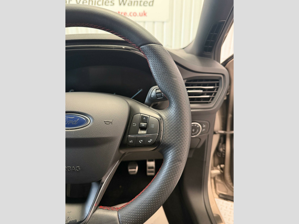 THIS VEHICLE IS AT OUR NR1 NORWICH BRANCHTO VIEW ALL OF OUR 400+ STOCK. PLEASE CLICK ON THE ''SEE ALL CARS'' LINK OR VISIT: www.bmccarsales.com07863 863000 / 01603 854419. 17in Alloy Wheels - 5x2-Spoke - Rock Metallic, Air Conditioning - Manual, Airbags - Driver and Front Passenger, Airbags - Front Side Impact, Airbags - Front and Rear Side Curtain, Alloy Finish Pedals, Anti-Lock Braking System - ABS with Electronic Brake Force Distribution - EBD, Automatic Headlights, Body Colour Bumpers, Centre Console with Armrest, Courtesy Light - Front and Rear Passengers - Overhead Halogen and Load Compartment, Cruise Control with Speed Limiter, Door Handles - Body Colour, Door Mirrors - Heated - Electric - Integrated Side Indicators - Body Coloured, Drivers Seat Lumbar Adjust, EPAS - Electric Power Assisted Steering, Electric Parking Brake, Emergency Brake Warning, Enhanced Electronic Stability Control - ESC with Traction Control - Emergency Brake Assist - EBA - Hill Start Assist - HSA, Ford Easy Fuel - Capless Refuelling System, Ford Eco Mode - Driver Information System, Ford SYNC3 DAB Radio with Floating 6.5in Touchscreen, Front Floor Mats, Front Passenger Airbag Deactivation Switch, Front Seat - Drivers Manual Height and Fore-Aft Adjustment, Front Seat - Passengers Manual Fore-Aft Adjustment, Front Seats - Sports Style, Front Suspension - Independent with MacPherson Struts and Anti-Roll Bar, Front and Rear Seatbelt Minder, Gear Knob - Aluminium, Headlights - Halogen, Headliner - Black Woven, IPS - Intelligent Protection System, Intelligent Speed Assistance, Keyless Start with Ford Power Start Button, LED Daytime Running Lights, LED Front Fog Lights with Cornering Function, Lane Keeping Aid with Lane Departure Warning, Leather-Trimmed Handbrake, Locking Wheel Nuts, MyKey, Polished Twin Tailpipe, Post Collision Braking, Pre-Collision Assist with Autonomous Emergency Braking and Pedestrian-Cyclist Detection, Pre-Collision Assist with Pedestrian Detection, Quickclear Heated Windscreen, Rear Centre Headrest, Rear Spoiler - Body Colour - Large, Remote Central Locking and Engine Immobiliser, ST Line Stainless Steel Scuff Plates, Seats - ISOFIX Mounting Provision for Child Seats, Selectable Drive Mode, Spare Wheel - Mini Steel, Sports Tuned Suspension, Steering Column - Rake and Reach Adjustment, Steering Wheel - 3-Spoke Flat Bottom - Leather Trimmed with Red Stitching, Thatcham Category 1 Alarm, Trip Computer, Tyre Pressure Monitoring System, Unique ST-Line Upper and Lower Grille and Full Bodystyling Kit and ST-Line Wing Badges, Windows - Electrically Operated Front and Rear with One Touch Opening and Closing, Wipers - Standard with 6 Speed Interval Settings.