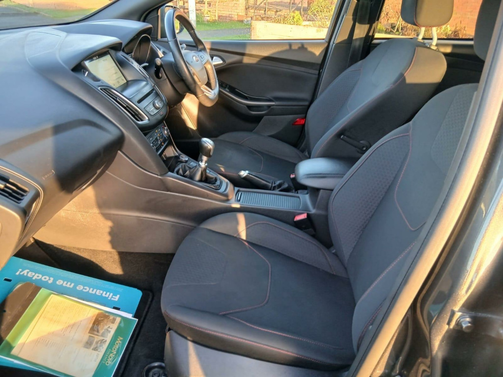 This 2017 Ford Focus T ST Line offers an exceptional blend of style and efficiency, boasting a remarkable 60 mpg fuel economy. As a Euro 6 compliant model, it represents a smart choice for the environmentally conscious driver. This Focus comes equipped with the ST Line trim, featuring a responsive 1.0L petrol engine. Inside, you'll find the convenient 8 inch TFT touchscreen with Ford SYNC2, which includes Bluetooth connectivity for seamless handsfree calls and music streaming.Beyond its impressive fuel efficiency, this Ford Focus also offers generous boot space, making it a practical option for families or those who need extra room for luggage or shopping. Its low CO2 emissions further highlight its efficiency, indicating it is a more economical and environmentally friendly option compared to many other vehicles in its class. This combination of features makes the 2017 Ford Focus T ST Line a compelling and well rounded vehicle.. 17in Alloy Wheels - 5-Spoke with Rock Metallic Finish, 8in TFT Touchscreen with Ford SYNC2, Airbags - Driver and Front Passenger, Airbags - Front Side Impact, Airbags - Front and Rear Side Curtain, Alarm - Thatcham Category 1 with Volume Sensing and Perimeter, Anti-Lock Braking System - ABS - with Electronic Brake-Force Distribution, Black Exterior Trim Detailing, Body Colour Large Rear Spoiler and Side Skirts, Body Coloured Front Styling Kit with Centre Aero Foil, Chrome Finish on Upper Door Line, Colour TFT Instrument Cluster Display, Courtesy Light - Front and Rear Passengers - Overhead Halogen and Load Compartment, Drivers Seat Lumbar Adjust, EPAS - Electric Power Assisted Steering, Electric Windows - Front with One Touch on Drivers Side, Emergency Brake Warning, Enhanced Electronic Stability Control - ESC with Traction Control - Emergency Brake Assist - EBA - Hill Start Assist - HSA and Trailer Sway Control, Ford Easy-Fuel Capless Refuelling System, Ford Eco Mode - Driver Information System, Ford Power Starter Button, Ford Radio-CD with 4.2 TFT Display, Front Floor Mats, Front Fog Lights, Front Grille - Chrome, Front Seat - Passengers Manual Fore-Aft Adjustment, Gearshift Knob - Leather, Halogen Headlights with Black Surround, Headlights - Adaptive, Headliner - Black, Hill Start Assist, IPS - Intelligent Protection System, Interior Door Lever - Chrome Finish, Keyless Start, LED Daytime Running Lights, Leather-Trimmed Handbrake, Locking Wheel Nuts, MyKey, Premium Centre Console - Sliding Armrest, Quickclear Heated Windscreen, Rear Bumper with Integral Body Coloured Diffuser and Honeycomb Mesh in High-Gloss Black, Rear Seat - 60-40 Split Back and Cushion, Remote Central Locking, ST Line Stainless Steel Scuff Plates, Seats - Drivers Manual Height and Fore-Aft Adjustment, Seats - ISOFIX Mounting Brackets for Child Seats, Spare Wheel - Mini Steel, Sports Style Front Seats - Inidividual Red Stitching, Sports Style Pedals - Gear Knob and Steering Wheel, Steering Column - Rake and Reach Adjustment, Steering Wheel - Leather-Trimmed, Suspension - Sports, TVC - Torque Vectoring Control, Trip Computer, Tyre Pressure Monitoring System, Upper and Lower Grille - High Gloss Black Honeycomb Design, Wipers - Standard with 6 Speed Interval Settings.
