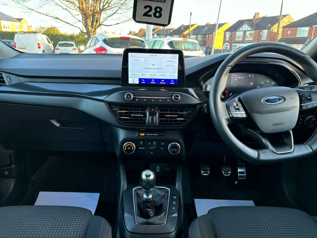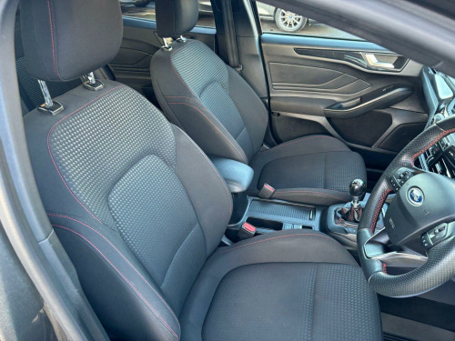 3 Service Stamps - Mot November 2026 With No Advisories, This 2020 Ford Focus ST-Line is presented with a clear vehicle history check, offering you peace of mind. This stylish hatchback is equipped with a responsive 1.0L petrol engine, meeting Euro 6 emissions standards. Inside, youll find manual air conditioning to keep you comfortable, and automatic headlights that switch on and off as needed. The Ford SYNC system, featuring an 8-inch TFT touchscreen, seamlessly integrates with your smartphone through Android Auto and Apple CarPlay, keeping you connected on every journey. Experience impressive practicality with the Focus ST-Lines large boot space, perfect for shopping trips or weekend getaways. Its low CO2 emissions demonstrate an efficient approach to driving, while its acceleration of 0-62mph in 10.0 seconds shows it offers a capable performance. These factors combined indicate that this Ford Focus ST-Line provides a well rounded and enjoyable driving experience compared to similar vehicles.