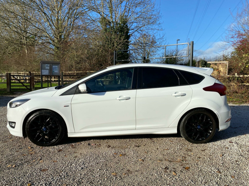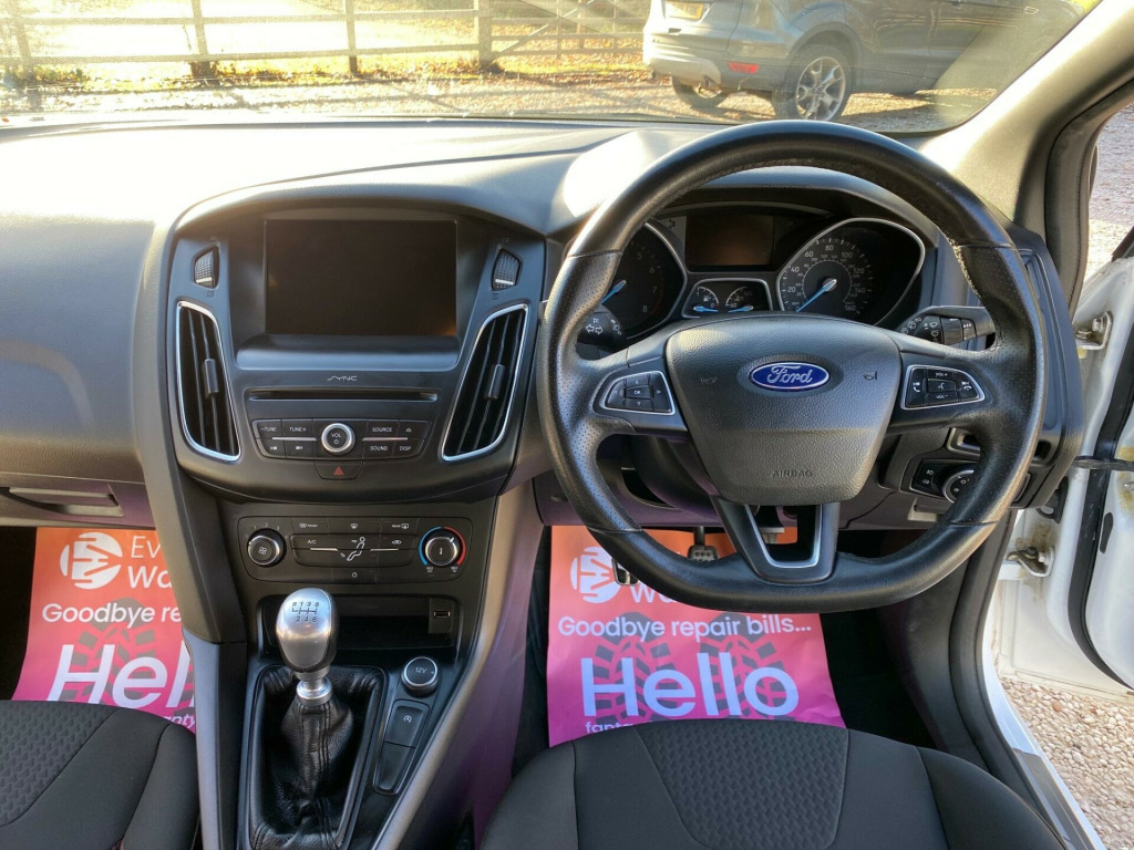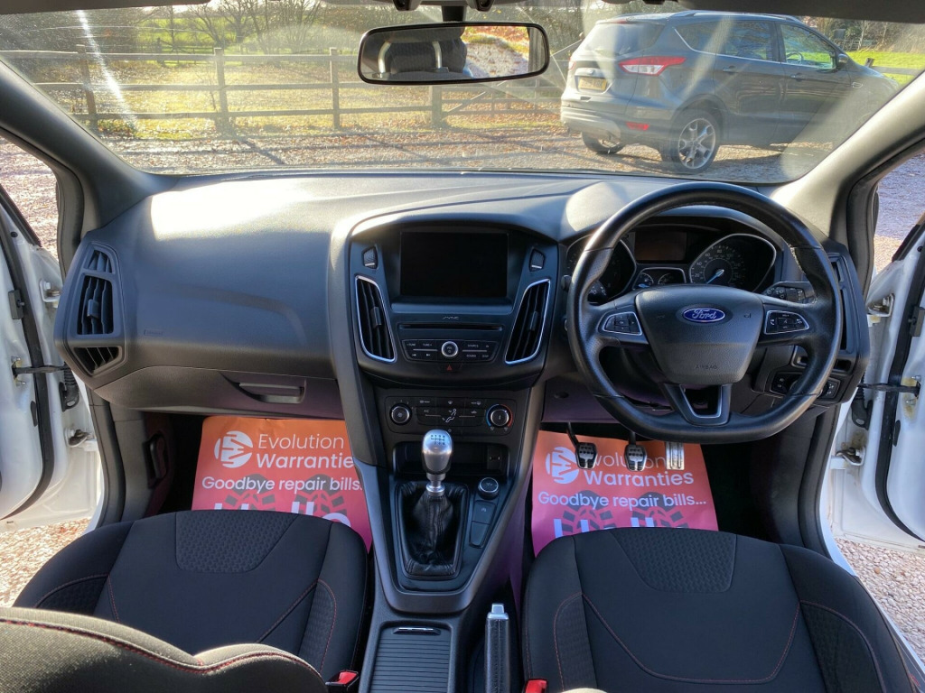 Discover this 2017 Ford Focus T ST Line, a stylish and practical hatchback that offers an impressive 60 miles per gallon. This Euro 6 compliant model boasts a responsive 1.0 litre petrol engine and comes equipped with the 8 inch TFT touchscreen featuring Ford SYNC2, which includes Bluetooth connectivity for seamless phone integration. Its ST Line trim ensures a sporty aesthetic and feel, while the generous boot space makes it ideal for everyday life, whether you're commuting or heading out for a weekend adventure.This Ford Focus stands out with its remarkably low CO2 emissions, making it an environmentally conscious choice. The exceptional fuel economy of 60 mpg means you can enjoy longer journeys with fewer stops at the petrol station, offering significant savings compared to many other vehicles in its class. Combined with its practical design and modern technology, this Focus T ST Line presents a compelling package for those seeking efficiency, style, and everyday usability.. 17in Alloy Wheels - 5-Spoke with Rock Metallic Finish, 8in TFT Touchscreen with Ford SYNC2, Airbags - Driver and Front Passenger, Airbags - Front Side Impact, Airbags - Front and Rear Side Curtain, Alarm - Thatcham Category 1 with Volume Sensing and Perimeter, Anti-Lock Braking System - ABS - with Electronic Brake-Force Distribution, Black Exterior Trim Detailing, Body Colour Large Rear Spoiler and Side Skirts, Body Coloured Front Styling Kit with Centre Aero Foil, Chrome Finish on Upper Door Line, Colour TFT Instrument Cluster Display, Courtesy Light - Front and Rear Passengers - Overhead Halogen and Load Compartment, Drivers Seat Lumbar Adjust, EPAS - Electric Power Assisted Steering, Electric Windows - Front with One Touch on Drivers Side, Emergency Brake Warning, Enhanced Electronic Stability Control - ESC with Traction Control - Emergency Brake Assist - EBA - Hill Start Assist - HSA and Trailer Sway Control, Ford Easy-Fuel Capless Refuelling System, Ford Eco Mode - Driver Information System, Ford Power Starter Button, Ford Radio-CD with 4.2 TFT Display, Front Floor Mats, Front Fog Lights, Front Grille - Chrome, Front Seat - Passengers Manual Fore-Aft Adjustment, Gearshift Knob - Leather, Halogen Headlights with Black Surround, Headlights - Adaptive, Headliner - Black, Hill Start Assist, IPS - Intelligent Protection System, Interior Door Lever - Chrome Finish, Keyless Start, LED Daytime Running Lights, Leather-Trimmed Handbrake, Locking Wheel Nuts, MyKey, Premium Centre Console - Sliding Armrest, Quickclear Heated Windscreen, Rear Bumper with Integral Body Coloured Diffuser and Honeycomb Mesh in High-Gloss Black, Rear Seat - 60-40 Split Back and Cushion, Remote Central Locking, ST Line Stainless Steel Scuff Plates, Seats - Drivers Manual Height and Fore-Aft Adjustment, Seats - ISOFIX Mounting Brackets for Child Seats, Spare Wheel - Mini Steel, Sports Style Front Seats - Inidividual Red Stitching, Sports Style Pedals - Gear Knob and Steering Wheel, Steering Column - Rake and Reach Adjustment, Steering Wheel - Leather-Trimmed, Suspension - Sports, TVC - Torque Vectoring Control, Trip Computer, Tyre Pressure Monitoring System, Upper and Lower Grille - High Gloss Black Honeycomb Design, Wipers - Standard with 6 Speed Interval Settings. Part service history