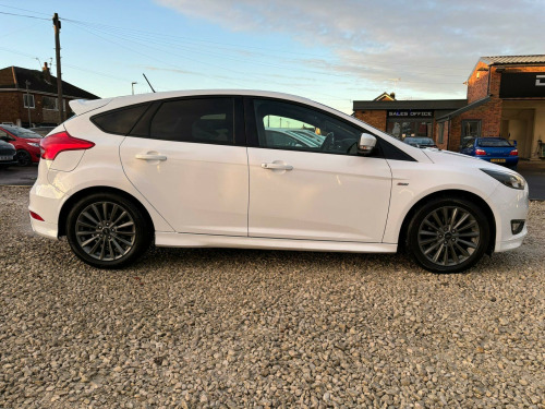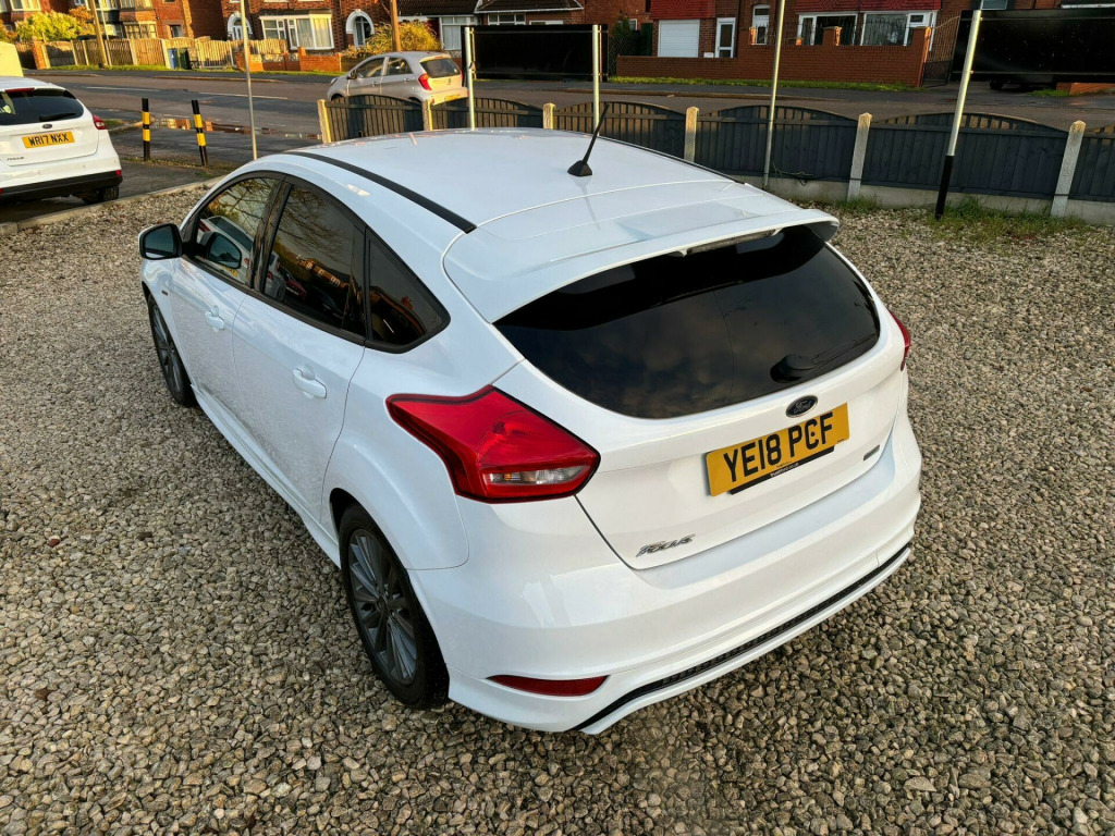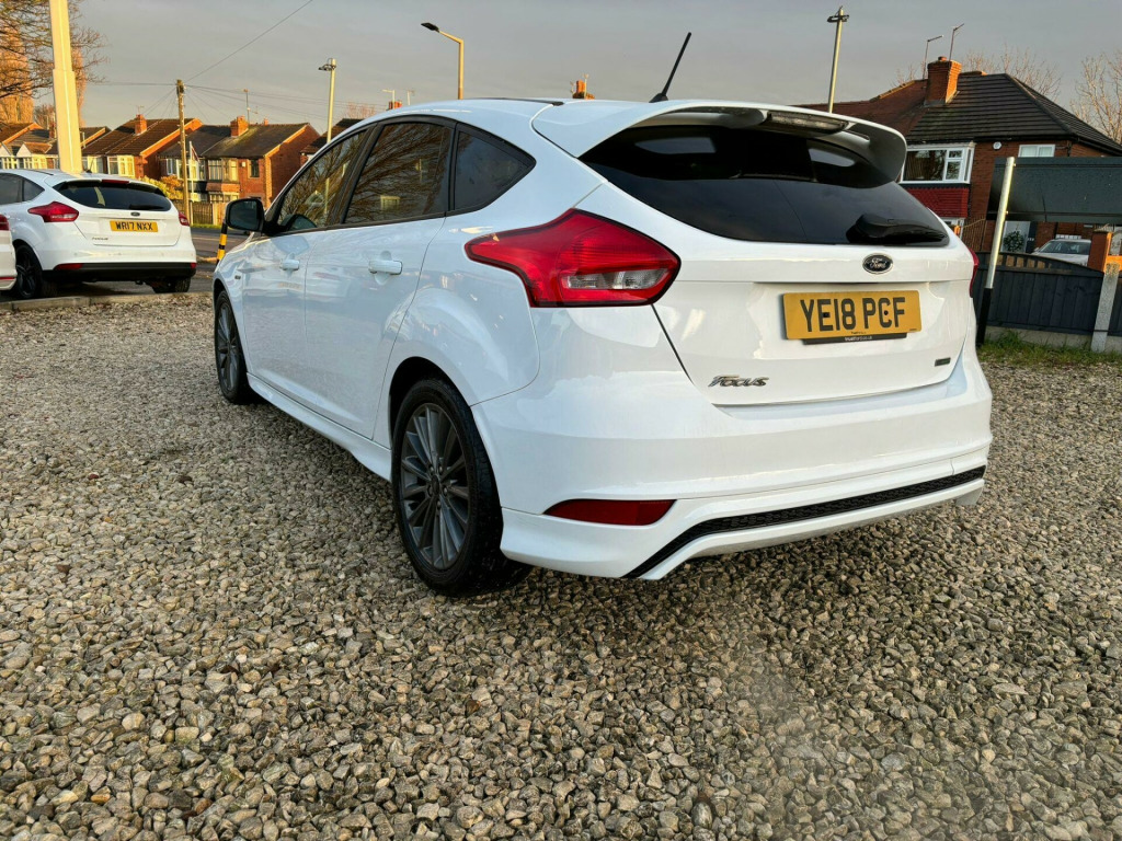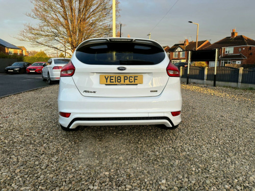 Full Service History - Last Serviced September 2025 - MOT September 2026 - MOT Advisories Have Been Completed This 2018 Ford Focus ST-Line is presented with a clear vehicle history check, offering you peace of mind. This 1.0 litre petrol model, finished in the sporty ST-Line trim, benefits from the desirable Driver Assistance Pack, which includes automatic headlights, and the Convenience Pack, featuring front and rear parking sensors to aid manoeuvring. Further enhancing its appeal are the Appearance Pack 2, stylish 18 inch Rock Metallic alloy wheels, and rear privacy glass, all contributing to its dynamic look.Experience impressive efficiency with a highlighted fuel economy of 58 miles per gallon, alongside low CO2 emissions, making this Focus an economical choice. Its acceleration from 0 to 62 miles per hour in 10.4 seconds demonstrates a capable performance. Furthermore, you will appreciate the generous boot space, providing ample room for luggage or shopping, indicating its practicality for everyday use and longer journeys.. 17in Alloy Wheels - Rock Metallic Finish, Air Conditioning - Manual, Airbags - Driver and Front Passenger, Airbags - Front Side Impact, Airbags - Front and Rear Side Curtain, Alarm - Thatcham Category 1 with Volume Sensing and Perimeter, Anti-Lock Braking System - ABS with Electronic Brake Force Distribution - EBD, Black Exterior Trim Detailing including Upper Door Line and Headlamp Surround, Body Colour Large Rear Spoiler and Side Skirts, Body Coloured Front Styling Kit with Centre Aero Foil, Centre Console - Premium with Sliding Armrest - Covered Stowage Bins, Colour TFT Instrument Cluster Display, Courtesy Light - Front and Rear Passengers - Overhead Halogen and Load Compartment, Door Mirrors - Heated - Electric - Integrated Side Indicators - Body Coloured, Drivers Seat Lumbar Adjust, EPAS - Electric Power Assisted Steering, Electronic Stability Programme - ESP - with Traction Control and Emergency Brake Assist - EBA, Emergency Brake Warning - Automatic Hazard Warning Lights, Ford Easy-Fuel Capless Refuelling System, Ford Eco Mode - Driver Information System, Ford Power Starter Button, Ford SYNC3 DAB Navigation System, Front Floor Mats, Front Fog Lights, Front Seat - Drivers Manual Height and Fore-Aft Adjustment, Front Seat - Passenger Manual Fore-Aft Adjustment, Front Seats - Sports Style, Front Suspension - Independent with MacPherson Struts and Anti-Roll Bar, Gearshift Knob - Leather, Halogen Headlights with Black Surround, Headlights - Courtesy Delay, Headliner - Black Woven, Hill Start Assist, IPS - Intelligent Protection System, Keyless Start, LED Daytime Running Lights, Leather-Trimmed Handbrake, Locking Wheel Nuts, MyKey, Quickclear Heated Front Windscreen with Heated Washer Jets, Rear Bumper with Integral Body Coloured Diffuser and Honeycomb Mesh in High-Gloss Black, Rear Lights - LED, Rear Suspension - Independent Control Blade Multi-Link System and Anti-Roll Bar, Remote Central-Double Locking, ST Line Stainless Steel Scuff Plates, SYNC3 with 8in Touchscreen DAB Audio System, Seats - ISOFIX Mounting Provision for Child Seats, Spare Wheel - Mini Steel, Sports Style Pedals - Gear Knob and Steering Wheel, Steering Column - Rake and Reach Adjustment, Steering Wheel - 3-spoke Flat Bottom - Leather Trimmed, Suspension - Sports, TVC - Torque Vectoring Control, Trip Computer, Tyre Pressure Monitoring System, Upper and Lower Grille - High Gloss Black Honeycomb Design, Windows - Electrically Operated Front with One Touch Lowering on Drivers Side, Wipers - Standard with 6 Speed Interval Settings, Driver Assistance Pack, 18in Alloy Wheels - ST-Line - Rock Metallic, Appearance Pack 2, Rear Privacy Glass, Convenience Pack.