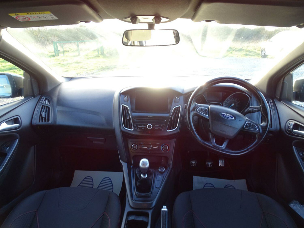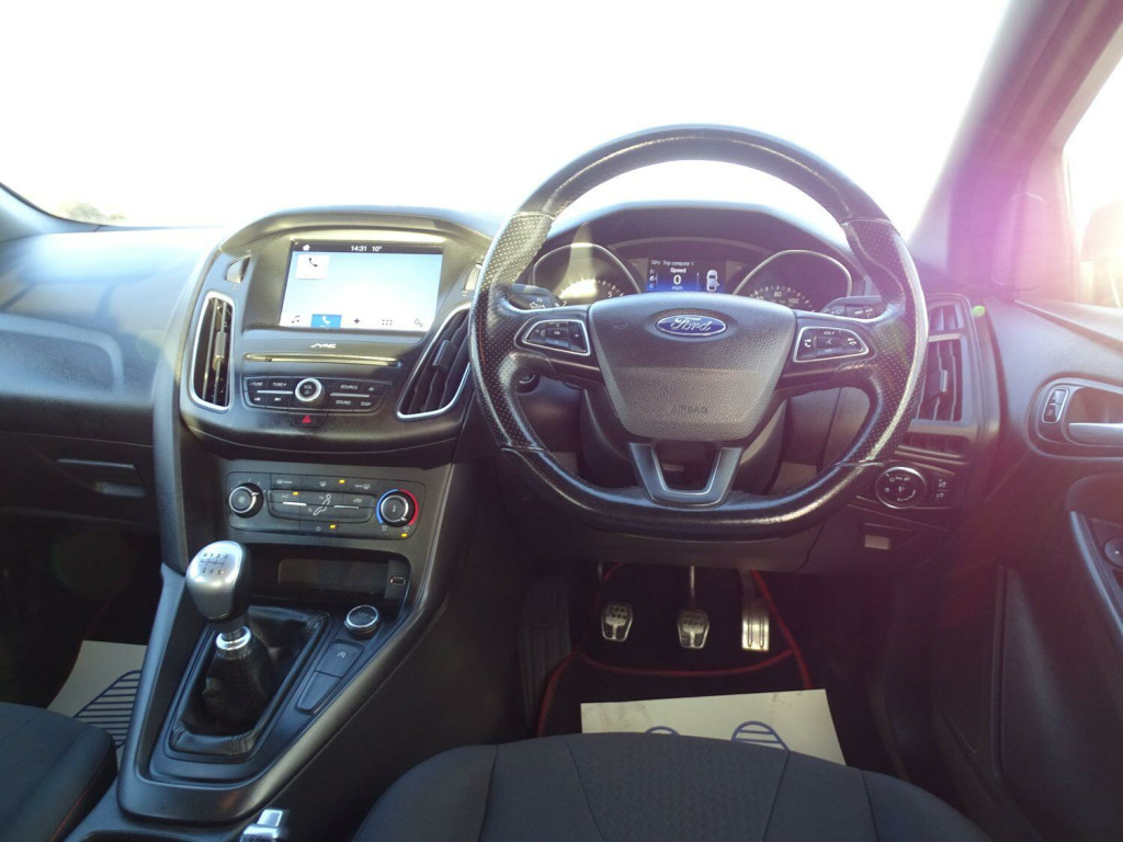 This 2018 Ford Focus ST-Line T offers an impressive fuel economy of 58 miles per gallon, making it a sensible choice for your motoring needs. This particular model is a 1.0 litre petrol variant, adhering to the Euro 6 emission standards. Inside, you'll find manual air conditioning to keep you comfortable in all conditions. The Focus ST-Line T also boasts a generous boot space, perfect for carrying luggage or shopping.When considering performance and efficiency, this Ford Focus ST-Line T stands out. Its acceleration from 0 to 62 miles per hour in 10.4 seconds is a respectable figure for its class. Furthermore, its low CO2 emissions indicate a more environmentally conscious performance compared to many other vehicles. These highlights demonstrate the Focus ST-Line T's ability to balance everyday practicality with a responsive driving experience.. 17in Alloy Wheels - Rock Metallic Finish, Air Conditioning - Manual, Airbags - Driver and Front Passenger, Airbags - Front Side Impact, Airbags - Front and Rear Side Curtain, Alarm - Thatcham Category 1 with Volume Sensing and Perimeter, Anti-Lock Braking System - ABS with Electronic Brake Force Distribution - EBD, Black Exterior Trim Detailing including Upper Door Line and Headlamp Surround, Body Colour Large Rear Spoiler and Side Skirts, Body Coloured Front Styling Kit with Centre Aero Foil, Centre Console - Premium with Sliding Armrest - Covered Stowage Bins, Colour TFT Instrument Cluster Display, Courtesy Light - Front and Rear Passengers - Overhead Halogen and Load Compartment, Door Mirrors - Heated - Electric - Integrated Side Indicators - Body Coloured, Drivers Seat Lumbar Adjust, EPAS - Electric Power Assisted Steering, Electronic Stability Programme - ESP - with Traction Control and Emergency Brake Assist - EBA, Emergency Brake Warning - Automatic Hazard Warning Lights, Ford Easy-Fuel Capless Refuelling System, Ford Eco Mode - Driver Information System, Ford Power Starter Button, Ford SYNC3 DAB Navigation System, Front Floor Mats, Front Fog Lights, Front Seat - Drivers Manual Height and Fore-Aft Adjustment, Front Seat - Passenger Manual Fore-Aft Adjustment, Front Seats - Sports Style, Front Suspension - Independent with MacPherson Struts and Anti-Roll Bar, Gearshift Knob - Leather, Halogen Headlights with Black Surround, Headlights - Courtesy Delay, Headliner - Black Woven, Hill Start Assist, IPS - Intelligent Protection System, Keyless Start, LED Daytime Running Lights, Leather-Trimmed Handbrake, Locking Wheel Nuts, MyKey, Quickclear Heated Front Windscreen with Heated Washer Jets, Rear Bumper with Integral Body Coloured Diffuser and Honeycomb Mesh in High-Gloss Black, Rear Lights - LED, Rear Suspension - Independent Control Blade Multi-Link System and Anti-Roll Bar, Remote Central-Double Locking, ST Line Stainless Steel Scuff Plates, SYNC3 with 8in Touchscreen DAB Audio System, Seats - ISOFIX Mounting Provision for Child Seats, Spare Wheel - Mini Steel, Sports Style Pedals - Gear Knob and Steering Wheel, Steering Column - Rake and Reach Adjustment, Steering Wheel - 3-spoke Flat Bottom - Leather Trimmed, Suspension - Sports, TVC - Torque Vectoring Control, Trip Computer, Tyre Pressure Monitoring System, Upper and Lower Grille - High Gloss Black Honeycomb Design, Windows - Electrically Operated Front with One Touch Lowering on Drivers Side, Wipers - Standard with 6 Speed Interval Settings.