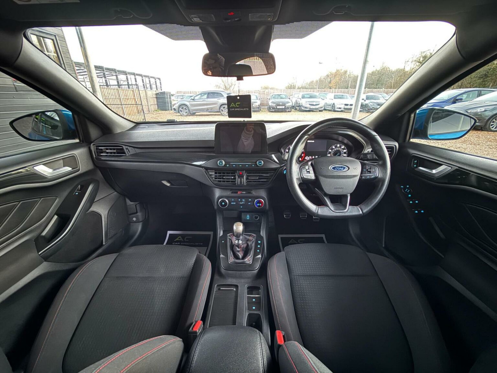 Here at AQS Car Specialist we take pride in being one of the few highly rated dealers for our customer service from Autotrader working closely together so we can go the extra mile to make sure you are getting the best service out there. All vehicles undergo a full visual and Mechanical health inspection, driven and tested. All essential work carried out with no expense spared. We offer an extended nation wide warranty with the option to extend up to 36 months, giving our customers full peace of mind and security when purchasing a car from AQS car specialists. Any inspection welcome, Test drive welcome, Part exchanges welcome. All dealer facilities available on site. Here at AQS Car Specialist we are delighted to offer this fantastic looking example of a Ford Focus 1.0T EcoBoost ST-Line. Finished in a stunning and unique Blue with a contrasting Black cloth interior with Red stitching alongside 17 inch alloys. Recently serviced and complimented by a partial history (3 Stamps) as well as a fresh 12 months MOT. In excellent condition both inside and out, this is a great example of a Focus. These Focuss are renown for their sleek design, comfortable cabin, being low maintenance and reliable. This particular example benefits from being fitted with some handy features which include, Air Conditioning, Cruise Control, Sat Nav, Bluetooth Connectivity, DAB Radio, USB Input, Auto Headlights, Rain Sensors, Keyless Go, Front and Rear Parking Sensors with Visual Aid, Lane Keeping Assist and Lane Departure Warning, Pre Collision Assist, Keyless Start, Switchable Driver Modes, Hill Start Assist, Heated Side Mirrors, MultiFunctional Steering Wheel, Tyre Pressure Monitoring System and the must have ST interior and exterior Styling pack from factory.