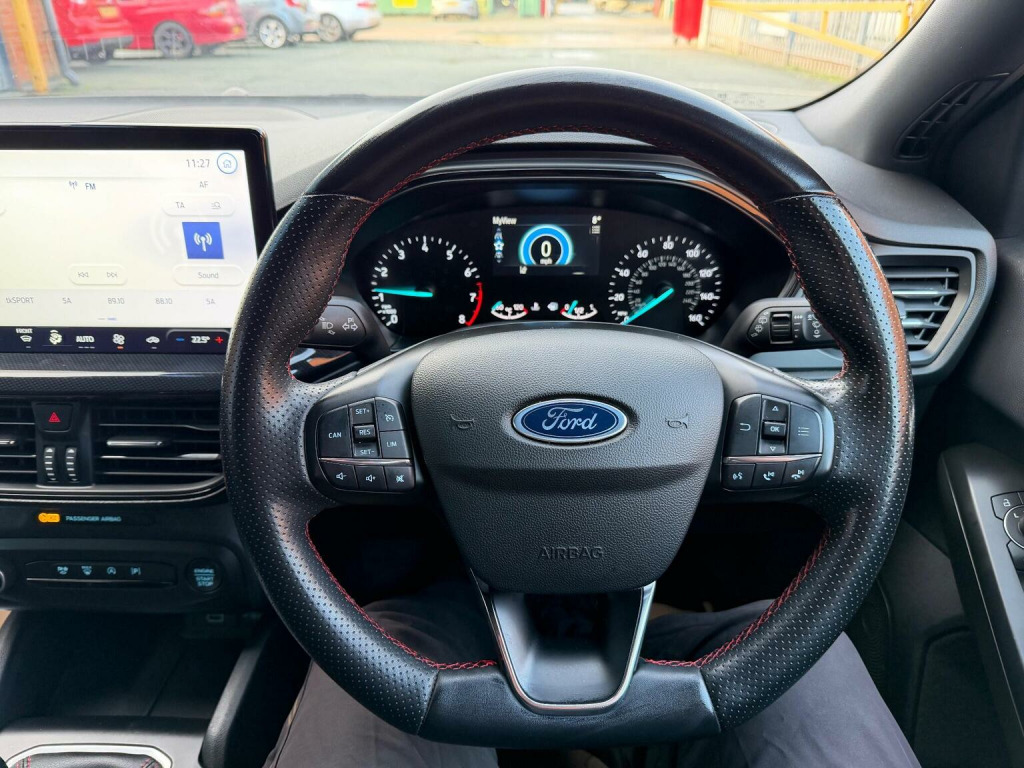 XXX NICE SPEC XXX 9.9% FINANCE AVAILABLE XXX STUNNING CONDITION INSIDE & OUT, DRIVES PERFECT, ONLY 1 OWNER FROM NEW WITH A FULL FORD MAIN DEALER SERVICE HISTORY. MOT UNTIL THE 14/10/2026, 90 DAY WARRANTY INCLUDED, GENUINE MILEAGE, HPI CLEAR, 2 KEYS & BOOK PACK, REALLY IS A NICE CAR YOU WILL NOT BE DISAPPOINTED, ANY INSPECTION/TEST DRIVE WELCOME,ALL MAJOR DEBIT AND CREDIT CARDS ACCEPTED,GREAT PRICES ON YOUR PART EXCHANGE, TO VIEW MORE CARS AND SEE OUR OPENING TIMES VISIT OUR WEBSITE WWW.FORMBYCARCENTRE.CO.UK , WE CAN ALSO DO A WALK AROUND VIDEO OF THE CAR VIA WHATSAPP MESSENGER, HOME DELIVERY CAN ALSO BE ARRANGED, CAR FINANCE CALCULATOR ON OUR WEBSITE ADJUST YOUR DEPOSIT/TERM, YOU CAN ALSO APPLY FOR FINANCE ON OUR WEBSITE 24/7 FOR AN INSTANT DECISION, Terms and Conditions apply, This 2022 Ford Focus ST ST Line is presented in excellent condition with a full dealership service history and a clear vehicle history check, having had only one owner from new. This stylish hatchback is equipped with a responsive 1.0L petrol engine, meeting Euro 6 emissions standards. Notable features include front and rear parking sensors with parking assistance, automatic on-off headlights, and dual zone electronic automatic temperature control for your comfort. Inside, youll find the Ford SYNC4 navigation system complete with a 13.2 inch touchscreen, offering seamless integration with Android Auto and Apple CarPlay. The Ford Key Free System allows for effortless keyless entry and keyless start. This Focus ST ST Line offers impressive efficiency, boasting a highlight fuel economy of 52 miles per gallon, alongside low CO2 emissions, making it a more economical choice compared to similar vehicles. Its large boot space provides ample room for all your luggage or shopping needs. This combination of practicality, advanced technology, and efficient performance makes this Ford Focus a compelling option.