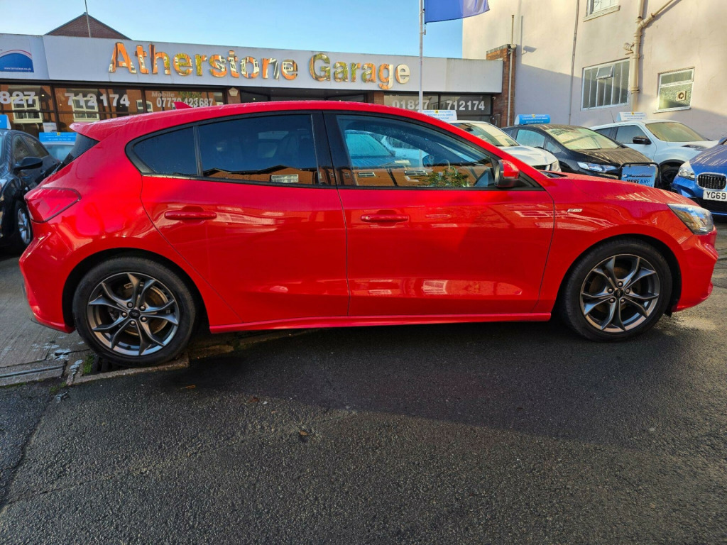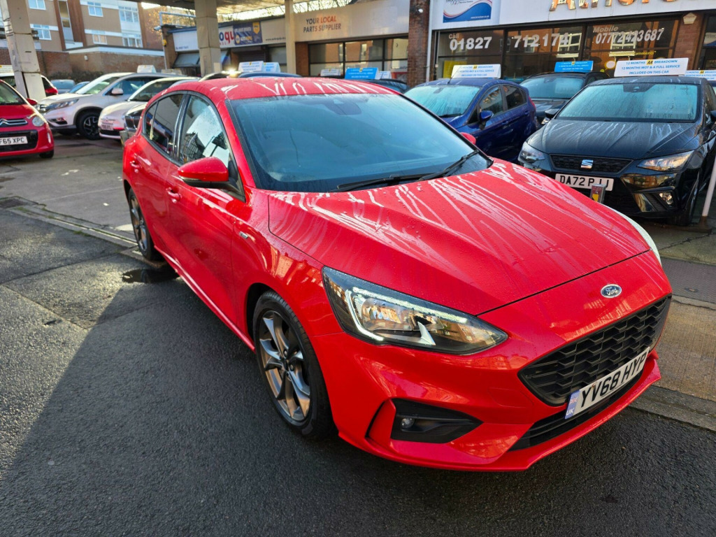 3 MONTHS WARRANTY & FIRST 3 MONTHS OF OWNERSHIP INCLUDES NATIONAL BREAKDOWN BASED ON INTERNET PRICE. SUPERB EXAMPLE. This car is prepared to a very high standard by our own workshop on Abeles Way to include a Full Service & New MOT. Take a look at our customer reviews!This 2019 Ford Focus ST Line offers a compelling blend of sporty styling and modern technology. Powered by an efficient 1.0 litre petrol engine, this Euro 6 compliant model is registered in 2019 and presents itself in the desirable ST Line trim. Inside, you'll find the intuitive Ford SYNC 3 DAB Radio, complete with a floating 6.5 inch touchscreen that seamlessly integrates Android Auto and Apple CarPlay for your entertainment and navigation needs. The convenience of automatic headlights further enhances the driving experience, ensuring optimal visibility in varying conditions.The Ford Focus ST Line is designed to impress, boasting a generous boot space perfect for all your luggage or shopping needs. Its impressive acceleration, reaching 0-62mph in just 10.0 seconds, provides a responsive and engaging drive. Furthermore, this model benefits from low CO2 emissions, indicating a more environmentally conscious choice compared to many other vehicles in its class.. 17in Alloy Wheels - 5x2-Spoke - Rock Metallic, Air Conditioning - Manual, Airbags - Driver and Front Passenger, Airbags - Front Side Impact, Airbags - Front and Rear Side Curtain, Alloy Finish Pedals, Anti-Lock Braking System - ABS with Electronic Brake Force Distribution - EBD, Automatic Headlights, Body Colour Bumpers, Centre Console with Armrest, Courtesy Light - Front and Rear Passengers - Overhead Halogen and Load Compartment, Cruise Control with Speed Limiter, Door Handles - Body Colour, Door Mirrors - Heated - Electric - Integrated Side Indicators - Body Coloured, Drivers Seat Lumbar Adjust, EPAS - Electric Power Assisted Steering, Electric Parking Brake, Emergency Brake Warning, Enhanced Electronic Stability Control - ESC with Traction Control - Emergency Brake Assist - EBA - Hill Start Assist - HSA, Ford Easy Fuel - Capless Refuelling System, Ford Eco Mode - Driver Information System, Ford SYNC3 DAB Radio with Floating 6.5in Touchscreen, Front Floor Mats, Front Passenger Airbag Deactivation Switch, Front Seat - Drivers Manual Height and Fore-Aft Adjustment, Front Seat - Passengers Manual Fore-Aft Adjustment, Front Seats - Sports Style, Front Suspension - Independent with MacPherson Struts and Anti-Roll Bar, Front and Rear Seatbelt Minder, Gear Knob - Aluminium, Headlights - Halogen, Headliner - Black Woven, IPS - Intelligent Protection System, Intelligent Speed Assistance, Keyless Start with Ford Power Start Button, LED Daytime Running Lights, LED Front Fog Lights with Cornering Function, Lane Keeping Aid with Lane Departure Warning, Leather-Trimmed Handbrake, Locking Wheel Nuts, MyKey, Polished Twin Tailpipe, Post Collision Braking, Pre-Collision Assist with Autonomous Emergency Braking and Pedestrian-Cyclist Detection, Pre-Collision Assist with Pedestrian Detection, Quickclear Heated Windscreen, Rear Centre Headrest, Rear Spoiler - Body Colour - Large, Remote Central Locking and Engine Immobiliser, ST Line Stainless Steel Scuff Plates, Seats - ISOFIX Mounting Provision for Child Seats, Selectable Drive Mode, Spare Wheel - Mini Steel, Sports Tuned Suspension, Steering Column - Rake and Reach Adjustment, Steering Wheel - 3-Spoke Flat Bottom - Leather Trimmed with Red Stitching, Thatcham Category 1 Alarm, Trip Computer, Tyre Pressure Monitoring System, Unique ST-Line Upper and Lower Grille and Full Bodystyling Kit and ST-Line Wing Badges, Windows - Electrically Operated Front and Rear with One Touch Opening and Closing, Wipers - Standard with 6 Speed Interval Settings.