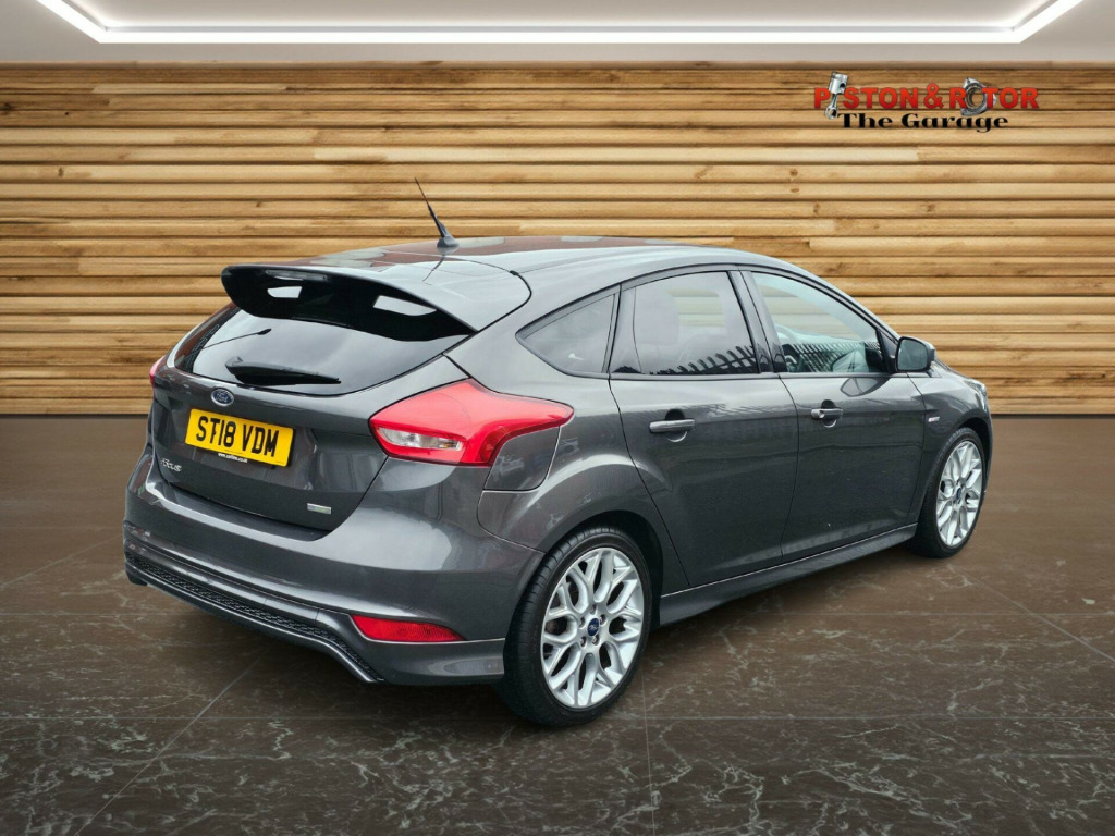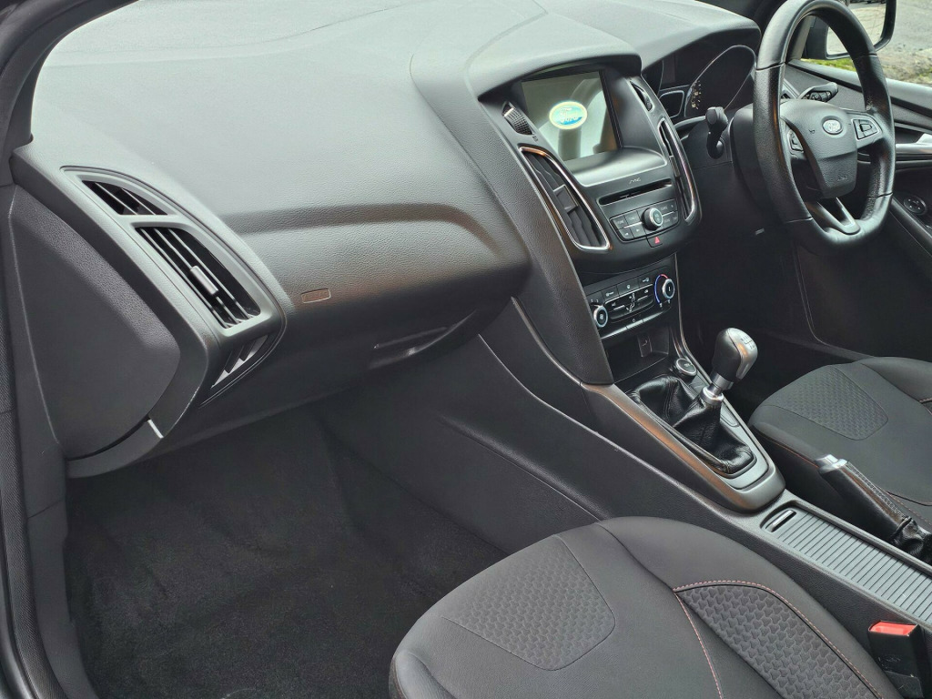 This 2018 Ford Focus ST-Line presents an exceptional opportunity with remarkably low mileage for its age, having covered just 49,000 miles. This particular model is the ST-Line variant, powered by an efficient 1.0 litre petrol engine that meets Euro 6 emissions standards. Inside, you'll find air conditioning to keep you comfortable while the Focus is renowned for its generous boot space, offering ample room for all your needs.The Ford Focus ST-Line is designed to impress, and this example is no exception. Its fuel economy is a standout feature, achieving an impressive 58 miles per gallon, which is considerably better than many other vehicles in its class. Furthermore, its low CO2 emissions contribute to a more environmentally friendly drive. For those who appreciate performance, it offers a brisk acceleration of 0 to 62 miles per hour in just 10.4 seconds, demonstrating a pleasing balance of efficiency and responsiveness.. 17in Alloy Wheels - Rock Metallic Finish, Air Conditioning - Manual, Airbags - Driver and Front Passenger, Airbags - Front Side Impact, Airbags - Front and Rear Side Curtain, Alarm - Thatcham Category 1 with Volume Sensing and Perimeter, Anti-Lock Braking System - ABS with Electronic Brake Force Distribution - EBD, Black Exterior Trim Detailing including Upper Door Line and Headlamp Surround, Body Colour Large Rear Spoiler and Side Skirts, Body Coloured Front Styling Kit with Centre Aero Foil, Centre Console - Premium with Sliding Armrest - Covered Stowage Bins, Colour TFT Instrument Cluster Display, Courtesy Light - Front and Rear Passengers - Overhead Halogen and Load Compartment, Door Mirrors - Heated - Electric - Integrated Side Indicators - Body Coloured, Drivers Seat Lumbar Adjust, EPAS - Electric Power Assisted Steering, Electronic Stability Programme - ESP - with Traction Control and Emergency Brake Assist - EBA, Emergency Brake Warning - Automatic Hazard Warning Lights, Ford Easy-Fuel Capless Refuelling System, Ford Eco Mode - Driver Information System, Ford Power Starter Button, Ford SYNC3 DAB Navigation System, Front Floor Mats, Front Fog Lights, Front Seat - Drivers Manual Height and Fore-Aft Adjustment, Front Seat - Passenger Manual Fore-Aft Adjustment, Front Seats - Sports Style, Front Suspension - Independent with MacPherson Struts and Anti-Roll Bar, Gearshift Knob - Leather, Halogen Headlights with Black Surround, Headlights - Courtesy Delay, Headliner - Black Woven, Hill Start Assist, IPS - Intelligent Protection System, Keyless Start, LED Daytime Running Lights, Leather-Trimmed Handbrake, Locking Wheel Nuts, MyKey, Quickclear Heated Front Windscreen with Heated Washer Jets, Rear Bumper with Integral Body Coloured Diffuser and Honeycomb Mesh in High-Gloss Black, Rear Lights - LED, Rear Suspension - Independent Control Blade Multi-Link System and Anti-Roll Bar, Remote Central-Double Locking, ST Line Stainless Steel Scuff Plates, SYNC3 with 8in Touchscreen DAB Audio System, Seats - ISOFIX Mounting Provision for Child Seats, Spare Wheel - Mini Steel, Sports Style Pedals - Gear Knob and Steering Wheel, Steering Column - Rake and Reach Adjustment, Steering Wheel - 3-spoke Flat Bottom - Leather Trimmed, Suspension - Sports, TVC - Torque Vectoring Control, Trip Computer, Tyre Pressure Monitoring System, Upper and Lower Grille - High Gloss Black Honeycomb Design, Windows - Electrically Operated Front with One Touch Lowering on Drivers Side, Wipers - Standard with 6 Speed Interval Settings. Full service history