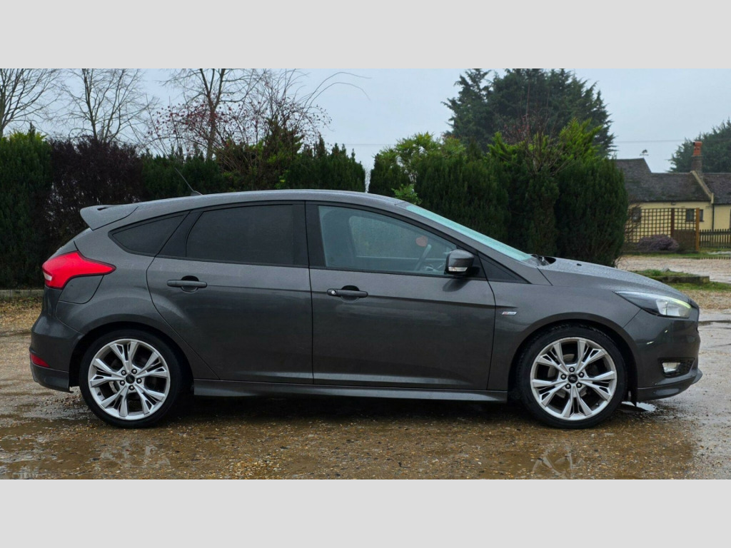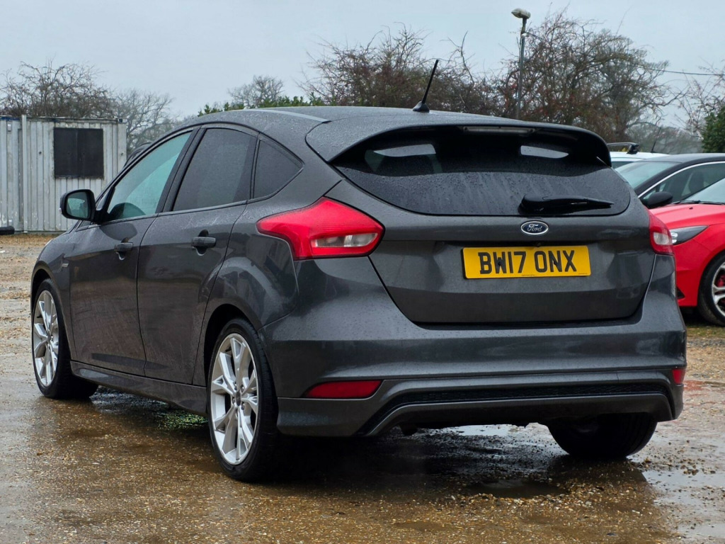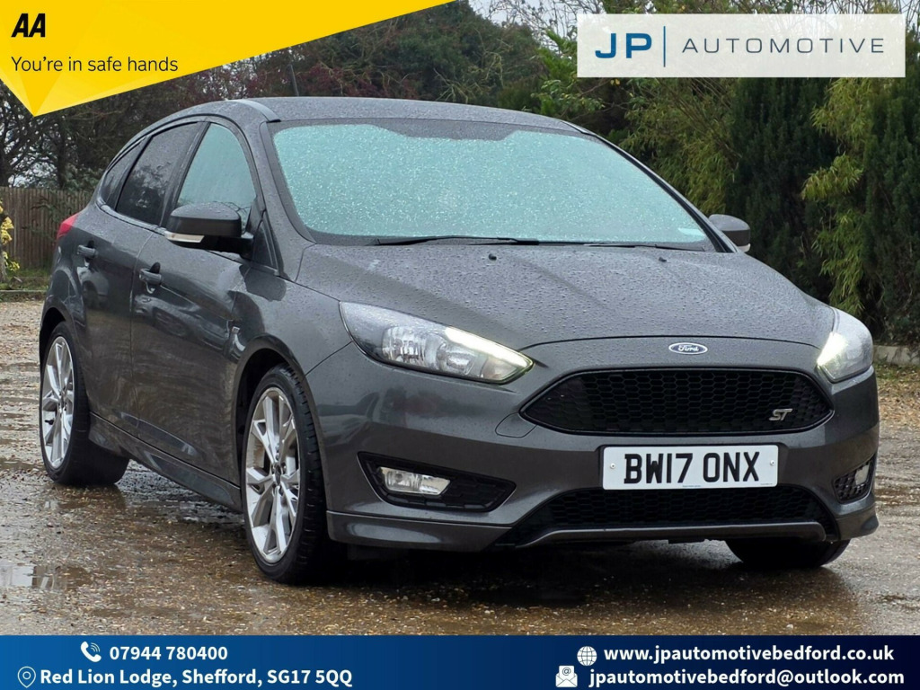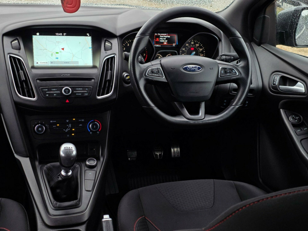 With an MOT valid until December 2026, this 2017 Ford Focus T ST-Line offers excellent peace of mind. This particular Focus has had only two owners and comes with a clear vehicle history check, alongside partial service history. Under the bonnet, you'll find a 1.0 litre petrol engine, compliant with Euro 6 emissions standards. Notable features include a rear view camera with parking assistance, a Ford SYNC2 DAB navigation system with Bluetooth connectivity, rear parking distance sensors, privacy glass, and convenient door edge protectors.This Ford Focus ST-Line stands out with its impressive fuel economy, achieving up to 60 miles per gallon, which is better than many similar vehicles. Its low CO2 emissions also contribute to its appeal, making it a more environmentally conscious choice. Furthermore, you'll appreciate the generous boot space, offering ample room for shopping, luggage, or sports equipment, making it a practical and versatile option for everyday use. rking distance sensors - rear, rear view camera, ford sync2 dab navigation system, 18in alloy wheels - st-line - rock metallic, privacy glass, door edge protectors, view cloth - charcoal black with red stitching, 17in alloy wheels - 5-spoke with rock metallic finish, 8in tft touchscreen with ford sync2, airbags - driver and front passenger, airbags - front side impact, airbags - front and rear side curtain, alarm - thatcham category 1 with volume sensing and perimeter, anti-lock braking system - abs - with electronic brake-force distribution, black exterior trim detailing, body colour large rear spoiler and side skirts, body coloured front styling kit with centre aero foil, chrome finish on upper door line, colour tft instrument cluster display, courtesy light - front and rear passengers - overhead halogen and load compartment, drivers seat lumbar adjust, epas - electric power assisted steering, electric windows - front with one touch on drivers side, emergency brake warning, enhanced electronic stability control - esc with traction control - emergency brake assist - eba - hill start assist - hsa and trailer sway control, ford easy-fuel capless refuelling system, ford eco mode - driver information system, ford power starter button, ford radio-cd with 4.2 tft display, front floor mats, front fog lights, front grille - chrome, front seat - passengers manual fore-aft adjustment, gearshift knob - leather, halogen headlights with black surround, headlights - adaptive, headliner - black, hill start assist, ips - intelligent protection system, interior door lever - chrome finish, keyless start, led daytime running lights, leather-trimmed handbrake, locking wheel nuts, mykey, premium centre console - sliding armrest, quickclear heated windscreen, rear bumper with integral body coloured diffuser and honeycomb mesh in high-gloss black, rear seat - 60-40 split back and cushion, remote central locking, st line stainless steel scuff plates, seats - drivers manual height and fore-aft adjustment, seats - isofix mounting brackets for child seats, spare wheel - mini steel, sports style front seats - inidividual red stitching, sports style pedals - gear knob and steering wheel, steering column - rake and reach adjustment, steering wheel - leather-trimmed, suspension - sports, tvc - torque vectoring control, trip computer, tyre pressure monitoring system, upper and lower grille - high gloss black honeycomb design, wipers - standard with 6 speed interval settings