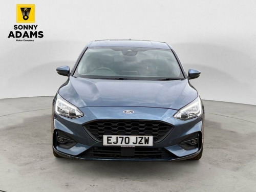 Introducing the Ford Focus 1.0T EcoBoost ST-Line Hatchback 5dr Petrol Auto Euro 6 (s/s) (125 ps) – a sleek, efficient, and sporty hatchback that combines dynamic performance with practical features. Powered by a punchy 1.0L EcoBoost engine producing 125 PS, and compliant with Euro 6 emissions standards, this automatic petrol model is built for both city driving and open road comfort. Finished with 17" 5x2-spoke Rock Metallic alloy wheels and a distinctive ST-Line body kit, including unique front and rear bumpers, side skirts, large rear spoiler, and polished twin tailpipe, it delivers standout road presence. Inside, the car features a dark headliner, sports-style front seats with red stitching and manual lumbar adjustment, a flat-bottomed leather-trimmed steering wheel, and a premium centre console with sliding armrest. Packed with convenience and tech features, it offers Ford SYNC with 8" TFT touchscreen, FordPass Connect, cruise control with speed limiter, selectable drive modes, intelligent speed assistance, Quickclear heated windscreen, manual air conditioning, and keyless start via the Ford Power Start Button. Safety is a priority with front and rear curtain airbags, front side impact airbags, Pre-Collision Assist with Autonomous Emergency Braking and pedestrian-cyclist detection, Lane Keeping Aid with Departure Warning, ISOFIX child seat mounting points, and Thatcham Category 1 alarm system. Additional highlights include automatic headlights, LED day 17in Alloy Wheels - 5x2-Spoke - Rock Met, ABS - Anti-lock Braking System, Acoustic Laminated Windscreen, Airbags - Driver and Front Passenger, Airbags - Front Side Impact, Airbags - Front and Rear Side Curtain, Alarm - Thatcham Category 1 with Volume , Alloy Finish Pedals, Black Finish on Upper Door Line, Centre Console - Premium with Short Slid, Child Proof Rear Door Locks, Cruise Control with Speed Limiter, Dark Headliner, Door Handles - Body Colour, Door Mirrors - Heated - Electric - Integ, ESC - Electronic Stability Control, Electric Parking Brake, Emergency Assistance, Flat Bottomed Steering Wheel with Red St, Floor Mats - Front Velour, Fog Light Bezel - Unique ST-Line, Ford Easy Fuel S