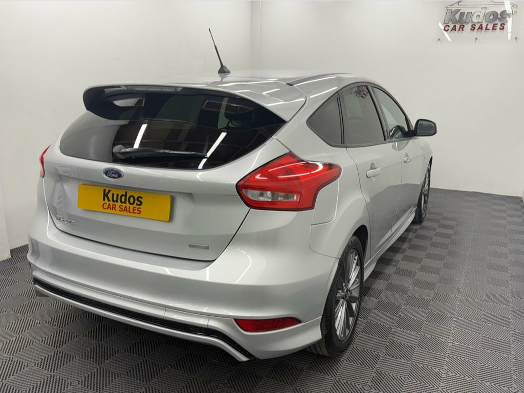 2018 FORD FOCUS 1.0 140bhp ST-Line Navigation 5dr - LOOKS ABSOLUTELY STUNNING IN METALLIC MOONDUST SILVER. NO DEPOSIT FINANCE AVAILABLE FROM ONLY £169 per mth. 6 MONTH WARRANTY INCLUDED. EACH VEHICLE COMES WITH A FREE HPI CLEAR REPORT AND 1 YEAR AA BREAKDOWN COVER. ** ULEZ COMPLIANT ** FULL SERVICE HISTORY AND JUST FULLY SERVICED. 68000 MILES. MOT UNTIL 09/11/2026. **GREAT SPEC** ST-LINE STYLING, TOUCH SCREEN SATELLITE NAVIGATION, AIRCON, KEYLESS PUSH BUTTON START, CD & DAB RADIO, BLUETOOTH MEDIA, ECO START STOP ENGINE, ELEC MIRRORS AND ELEC WINDOWS, 6 SPEED, 17'' ALLOY WHEELS, USB/AUX. FINANCE PACKAGES - With a number of lenders on board i am able to offer Finance to suit individual circumstances, including Sub Prime. All CARS ARE HPI CHECKED AND CLEAR. WARRANTY - At KUDOS CAR SALES every vehicle comes with a FREE 6 MONTH Warranty. Any repairs under warranty can be carried out at your local garage - Extended warranty available on request at extra cost. INCLUDES ALL DOCS AND BOOKS , LOCKING NUT AND 2 KEYS. ***ALL PART EXCHANGE'S CONSIDERED*** 17in Alloy Wheels - Rock Metallic Finish, Air Conditioning - Manual, Airbags - Driver and Front Passenger, Airbags - Front and Rear Side Curtain, Airbags - Front Side Impact, Alarm - Thatcham Category 1 with Volume , Anti-Lock Braking System - ABS with Elec, Black Exterior Trim Detailing including , Body Colour Large Rear Spoiler and Side , Body Coloured Front Styling Kit with Cen, Centre Console - Premium with Sliding Ar, Colour TFT Instrument Cluster Display, Courtesy Light - Front and Rear Passenge, Door Mirrors - Heated - Electric - Integ, Drivers Seat Lumbar Adjust, Electronic Stability Programme - ESP - w, Emergency Brake Warning - Automatic Haza, EPAS - Electric Power Assisted Steerin