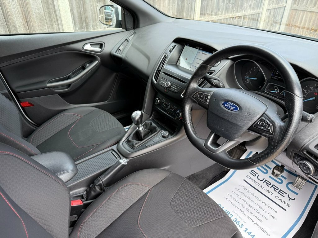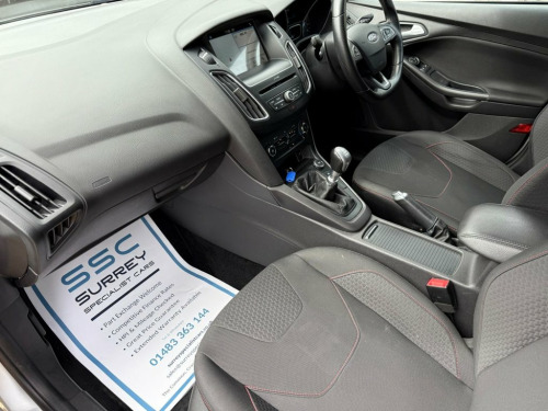 Surrey Specialist Cars are proud to present our lovely Ford Focus ST Line. This amazing car comes with Service History, finished in stunning metallic silver with grey contrast interior. The car will come with Long MOT so it will be ready to go. The 1L Petrol engine offers superb economy at over 58 MPG on combined cycle. Features Include Multifunction Steering Wheel, Trip Computer, Satellite Navigation, Stereo/Phone Control, Touch Screen, FM/DAB Radio, CD Player, Bluetooth Audio, USB Input, AUX Input, Air Conditioning, Heated Rear and Front Screen, Start/ Stop System, 12V Charging Socket, Fog Lights, 6 Speed Manual Gearbox, 18 Inch Alloy Wheels and one Remote Control Key to name a few. 17in Alloy Wheels - Rock Metallic Finish, Air Conditioning - Manual, Alarm - Thatcham Category 1 with Volume , Black Exterior Trim Detailing including , Body Colour Large Rear Spoiler and Side , Body Coloured Front Styling Kit with Cen, Colour TFT Instrument Cluster Display, Courtesy Light - Front and Rear Passenge, Door Mirrors - Heated - Electric - Integ, Drivers Seat Lumbar Adjust, EPAS - Electric Power Assisted Steering, Electronic Stability Programme - ESP - w, Ford Easy-Fuel Capless Refuelling System, Ford Eco Mode - Driver Information Syste, Ford SYNC3 DAB Navigation System, Front Floor Mats, Front Fog Lights, Front Seat - Drivers Manual Height and F, Front Seat - Passenger Manual For