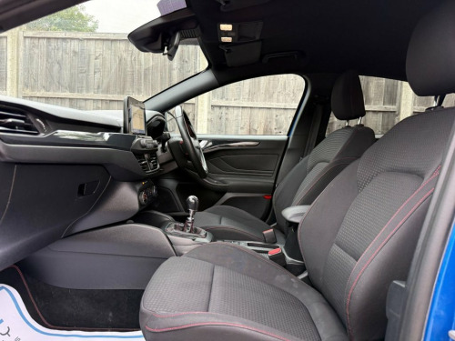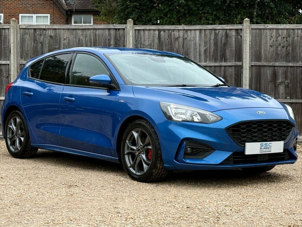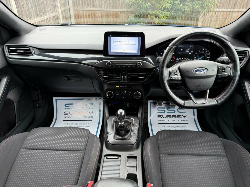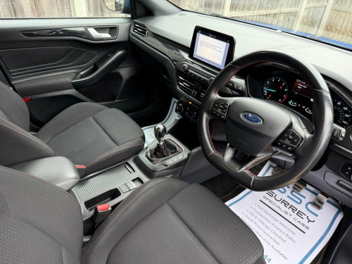 Surrey Specialist Cars are proud to present our lovely Ford Focus ST Line. This amazing car comes with Full Service History, finished in stunning metallic blue with grey contrast interior. The car has a Long MOT until July 2026 so it is ready to go. The 1L Petrol engine offers superb economy at over 58 MPG on combined cycle. Features Include Multifunction Steering Wheel, Trip Computer, Satellite Navigation, Stereo/Phone Control, FM/DAB Radio, CD Player, Bluetooth Audio, USB Input, AUX Input, Air Conditioning, Heated Rear and Front Screen, Start/ Stop System, 12V Charging Socket, Fog Lights, 6 Speed Manual Gearbox, 17 Inch Alloy Wheels and two Remote Control Keys to name a few. 17in Alloy Wheels - 5x2-Spoke - Rock Met, Airbags - Driver and Front Passenger, Airbags - Front Side Impact, Airbags - Front and Rear Side Curtain, Alloy Finish Pedals, Body Colour Bumpers, Centre Console with Armrest, Cruise Control with Speed Limiter, Dark Headliner, Door Handles - Body Colour, Door Mirrors - Heated - Electric - Integ, ESC - Electronic Stability Control, Electric Parking Brake, Flat Bottomed Steering Wheel with Red St, Ford Easy Fuel System, Ford SYNC with 8in TFT Touchscreen, Front Floor Mats, Front Passenger Airbag Deactivation Swit, Front Seat - Drivers Manual Lumbar Suppo, Front and Rear Seatbelt Minder, Halogen Reflector Headlights, Headlights - Automatic On-Off, Keyl