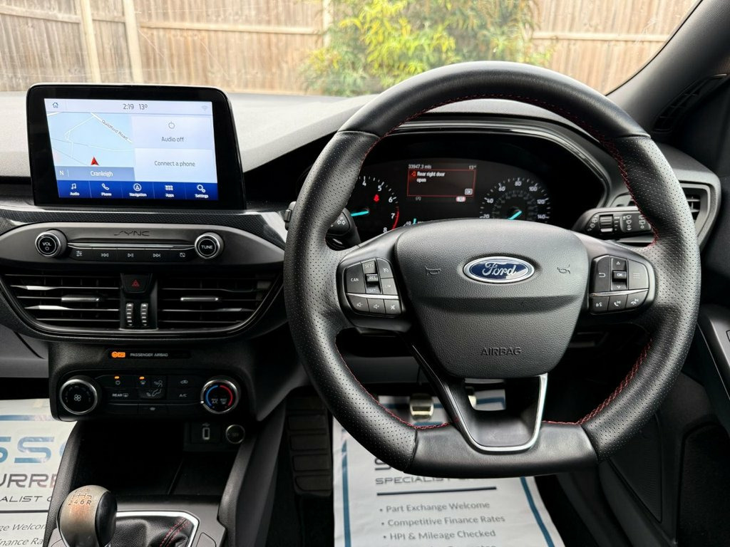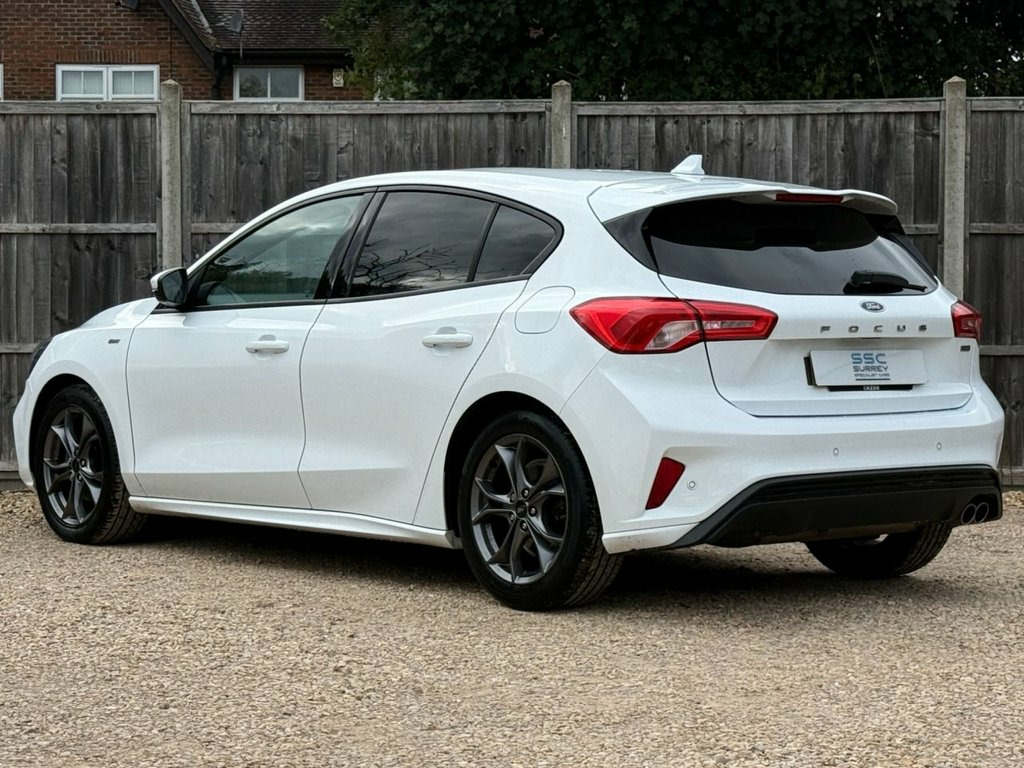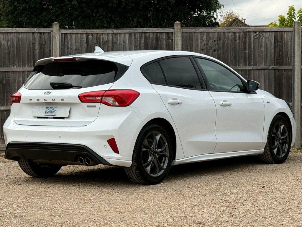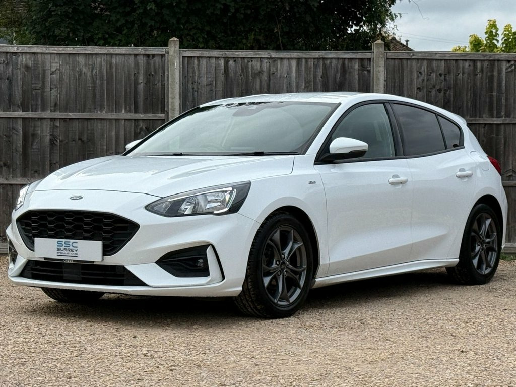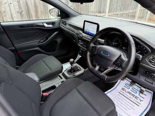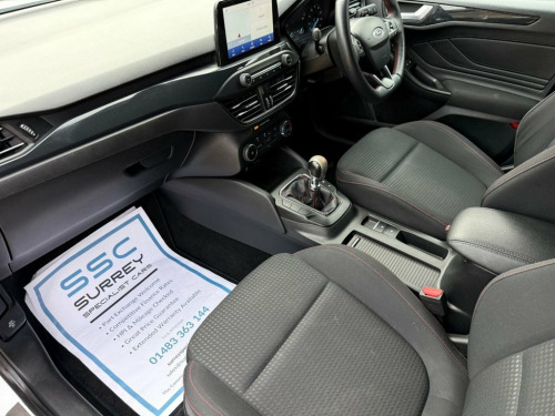 Surrey Specialist Cars are proud to present our lovely Ford Focus ST Line. This amazing car comes with Service History, finished in stunning metallic white with grey contrast interior. The car was last serviced in July 2025 at 31,968 miles. The car has a MOT until January 2026 so it is ready to go. The 1L Petrol engine offers superb economy at over 58 MPG on combined cycle. Features Include Multifunction Steering Wheel, Trip Computer, Satellite Navigation, Parking Sensors, Stereo/Phone Control, Touch Screen, FM/DAB Radio, CD Player, Bluetooth Audio, USB Input, AUX Input, Air Conditioning, Heated Rear and Front Screen, Start/ Stop System, 12V Charging Socket, Fog Lights, 6 Speed Manual Gearbox, 17 Inch Alloy Wheels and two Remote Control Keys to name a few. 17in Alloy Wheels - 5x2-Spoke - Rock Met, ABS - Anti-lock Braking System, Acoustic Laminated Windscreen, Airbags - Driver and Front Passenger, Airbags - Front Side Impact, Airbags - Front and Rear Side Curtain, Alarm - Thatcham Category 1 with Volume , Alloy Finish Pedals, Autonomous Emergency Braking, Black Finish on Upper Door Line, Centre Console - Premium with Sliding Ar, Child Proof Rear Door Locks, Cruise Control with Speed Limiter, Dark Headliner, Door Handles - Body Colour, Door Mirrors - Heated - Electric - Integ, ESC - Electronic Stability Control, Electric Parking Brake, Emergency Assistance, Flat Bottomed Steering Wheel with Red St, Floor Mats - Front Velour, Fog Light Bezel - Un